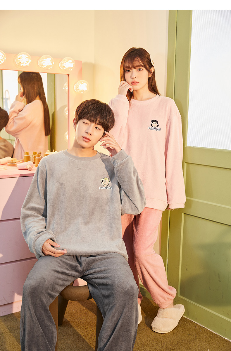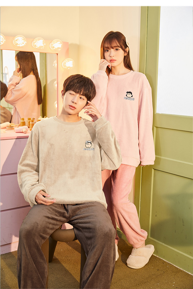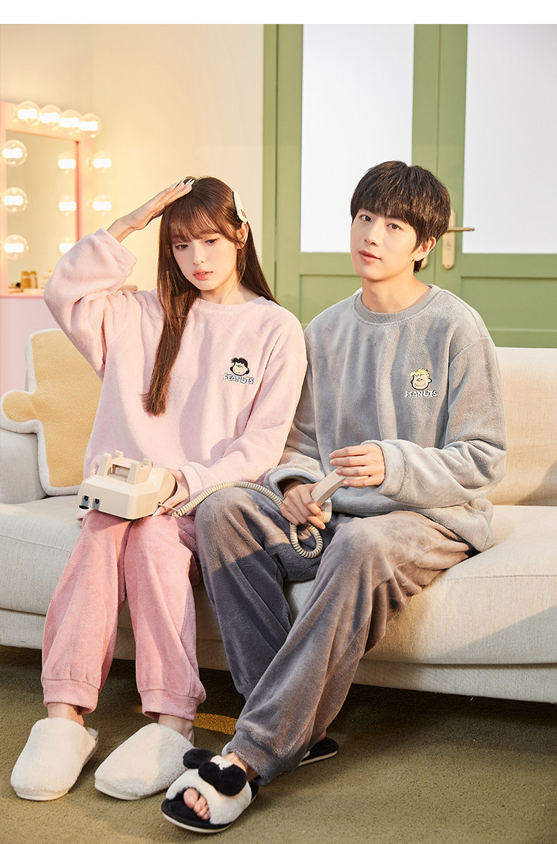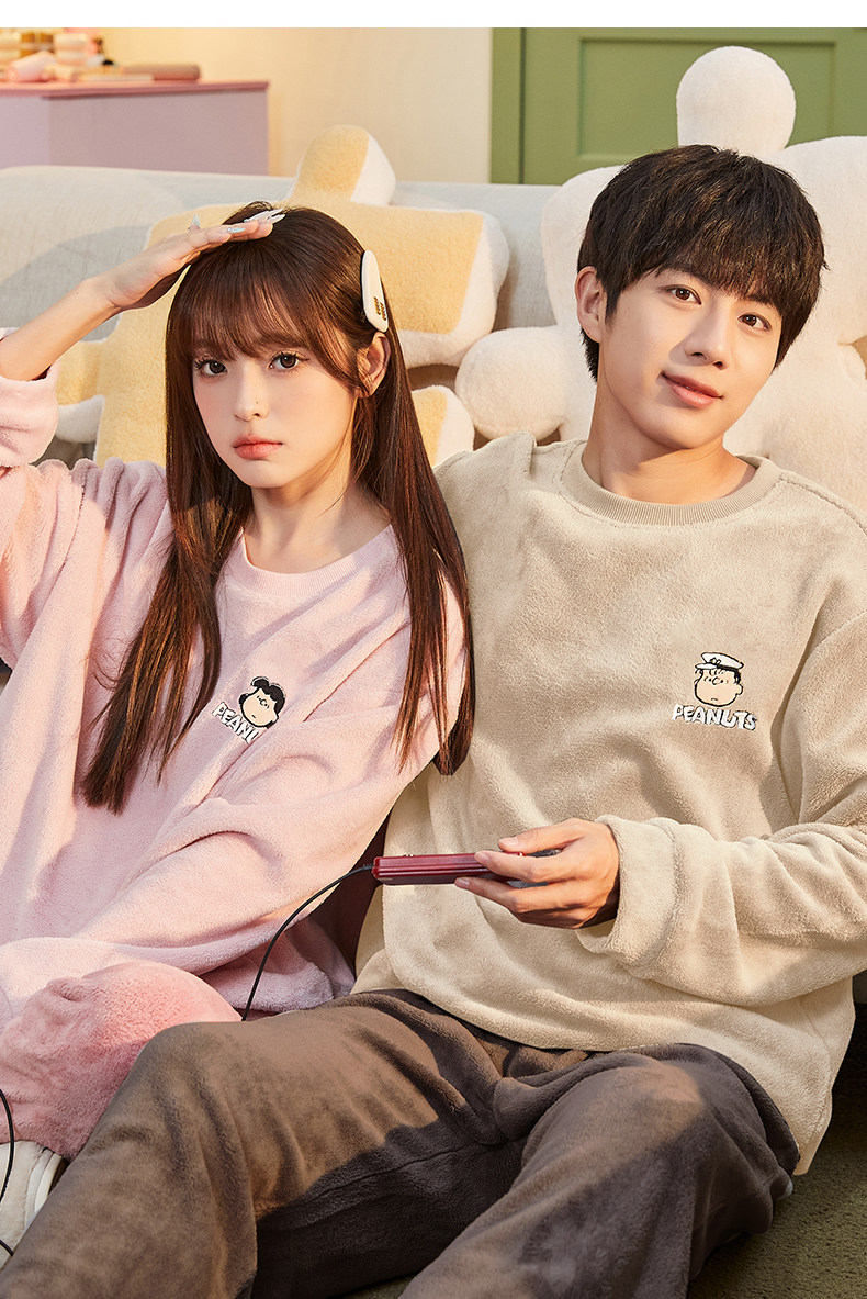 唐狮2024情侣睡衣女史努比联名加厚可外穿珊瑚绒套装家居服秋