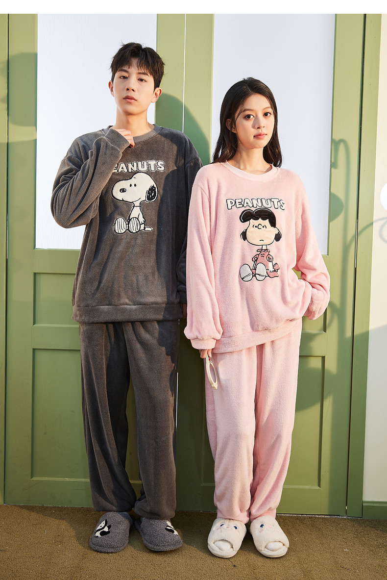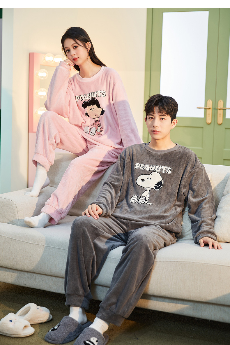 唐狮2024情侣睡衣女史努比联名加厚可外穿珊瑚绒套装家居服秋