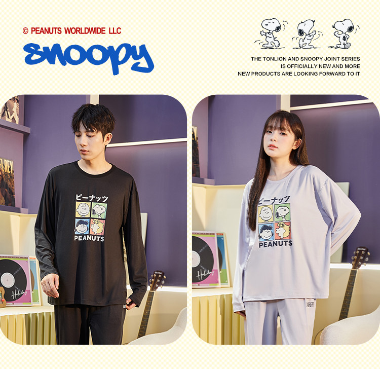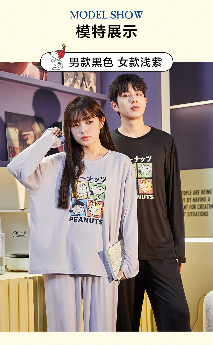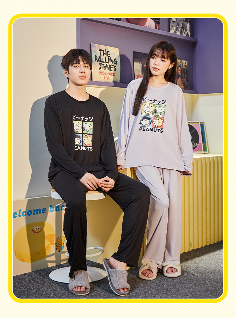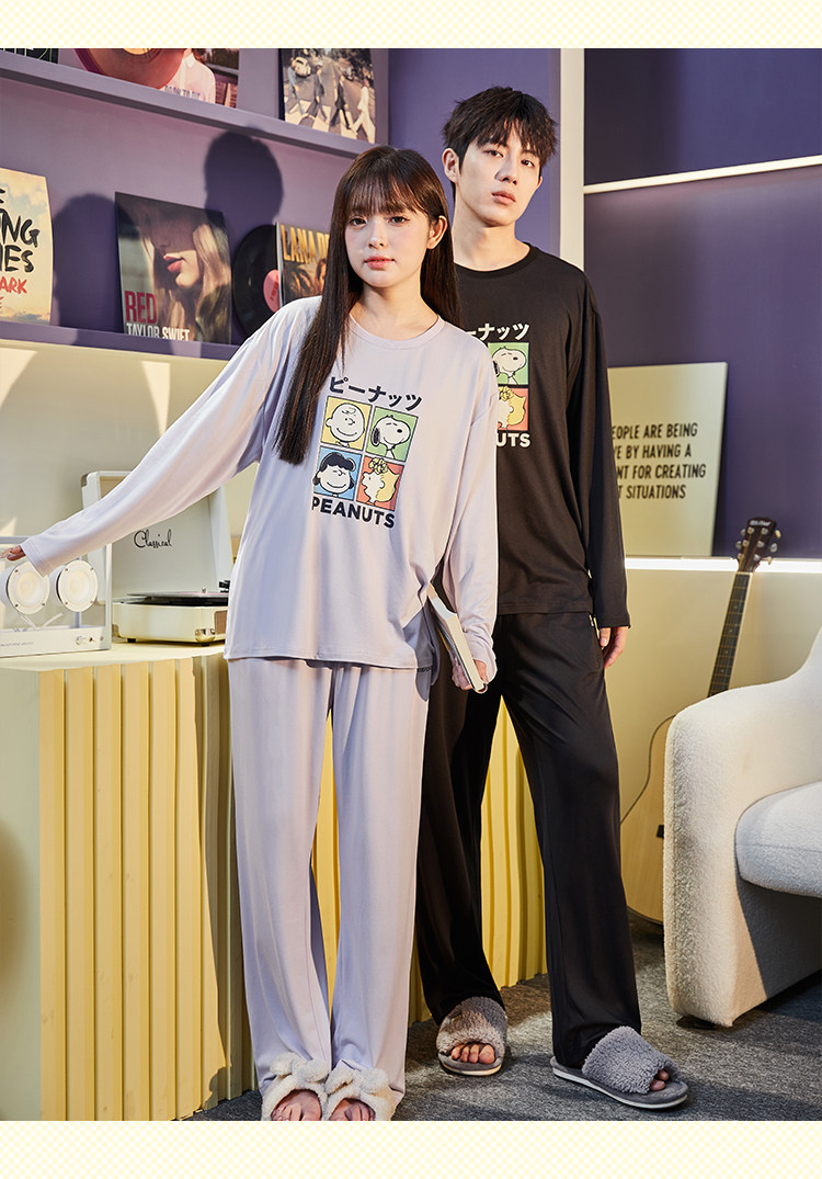 唐狮新款睡衣女情侣装一男一女春秋季家居服套装可外穿宽松高
