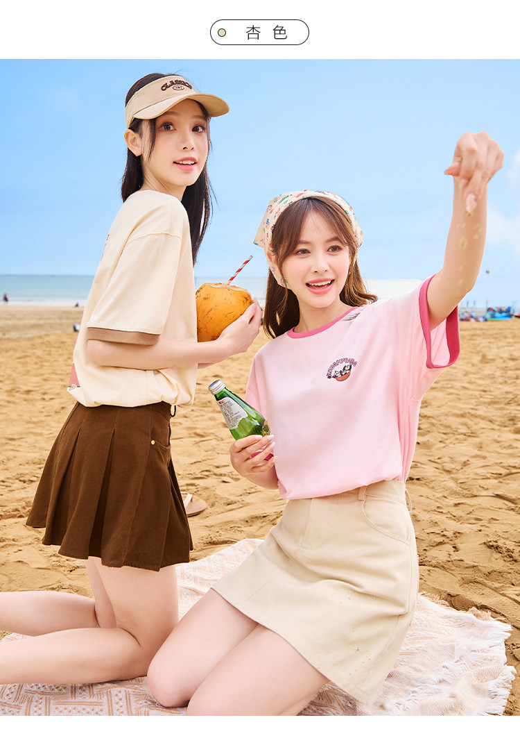 唐狮2024夏季新款情侣短袖T恤男生水果绣花小细节女打底上衣宽松
