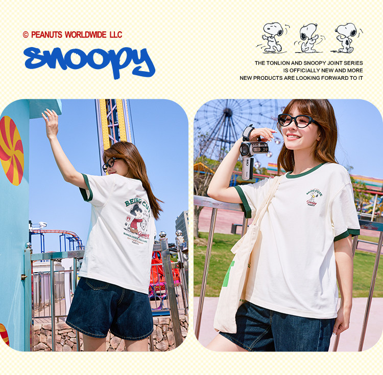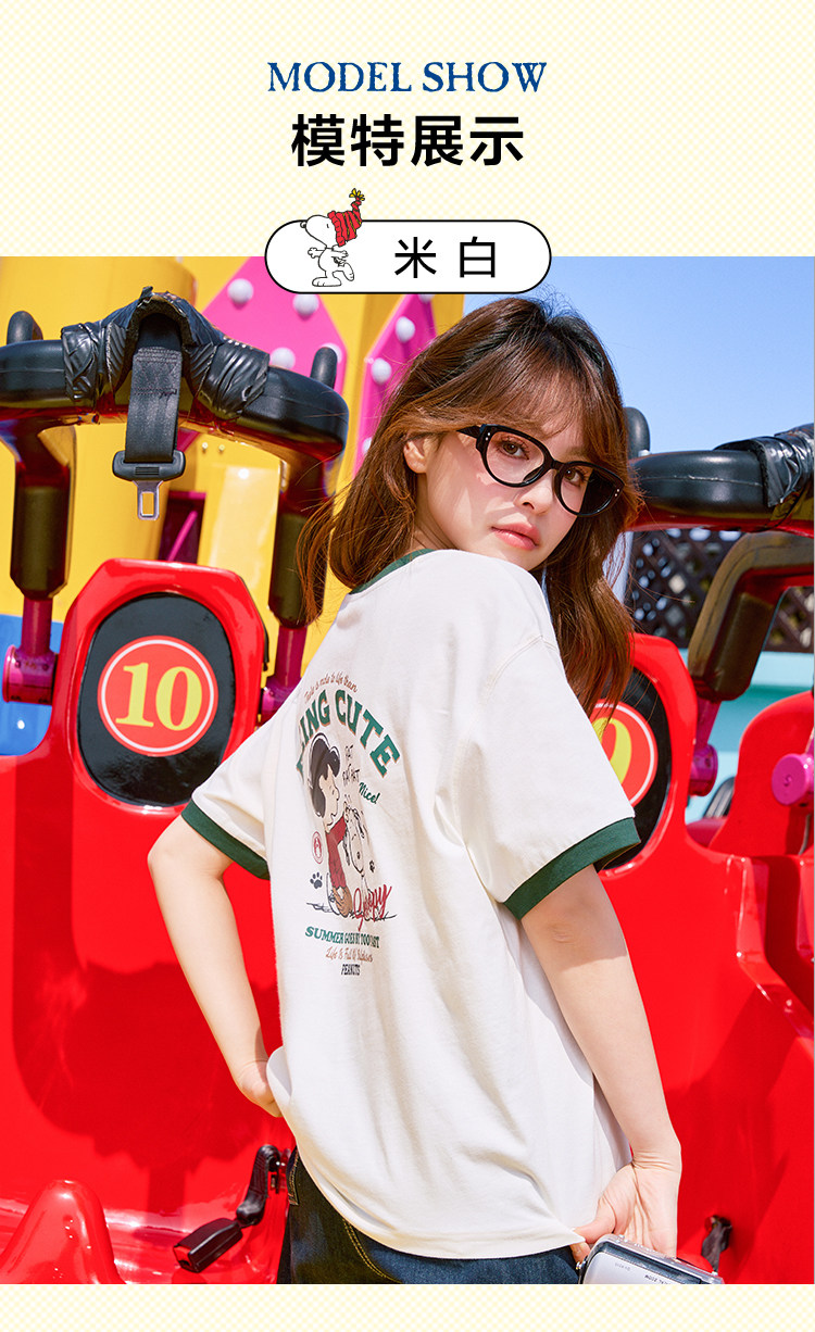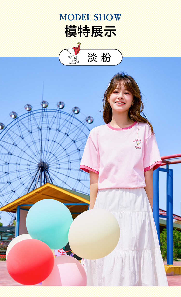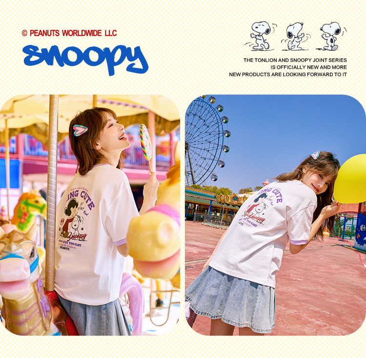 【史努比联名款】 唐狮短袖T恤女夏2024新款爆款撞色上衣学院风sz