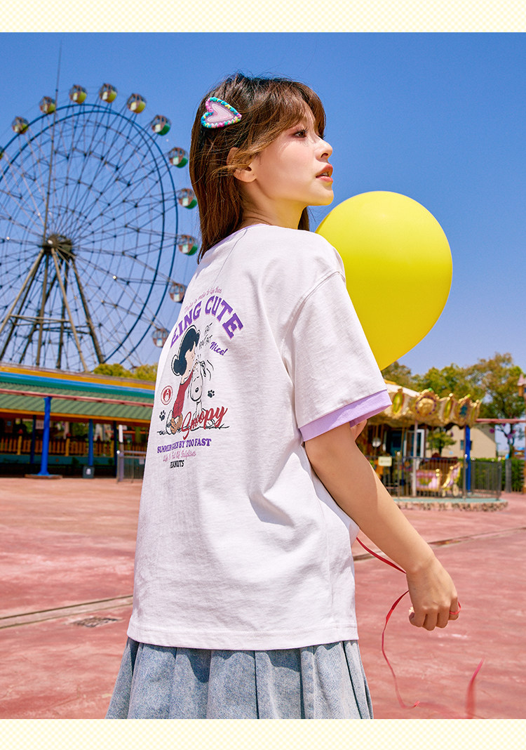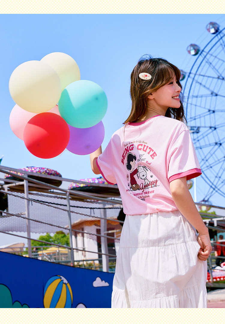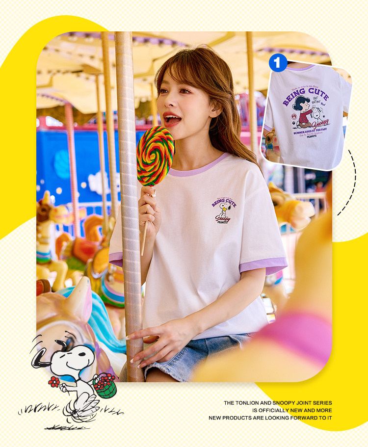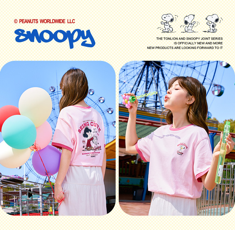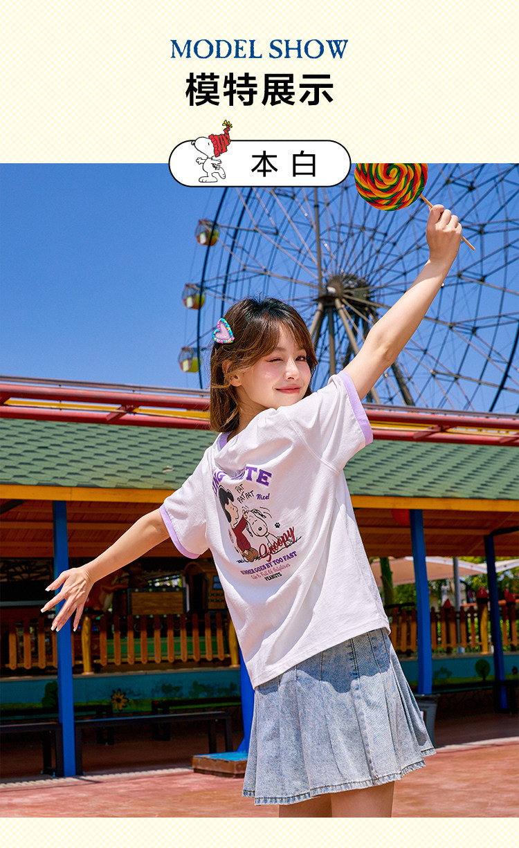 【史努比联名款】 唐狮短袖T恤女夏2024新款爆款撞色上衣学院风sz