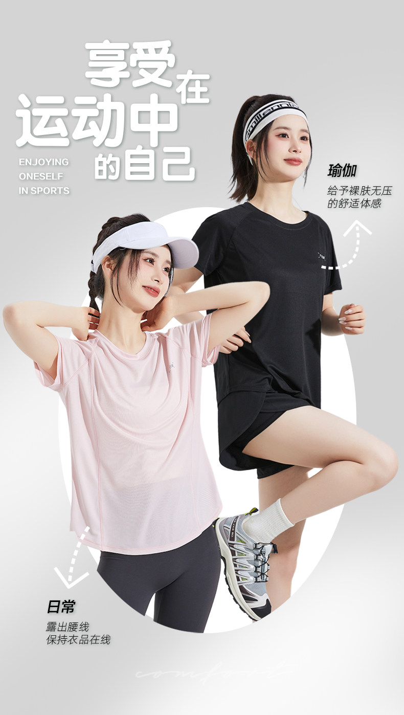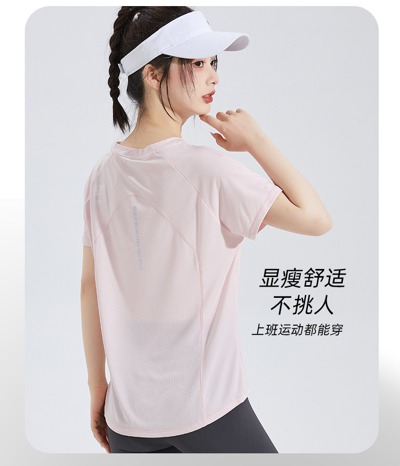 唐狮2024新款短袖女夏季修身瑜伽透气超薄运动简约时尚气质T恤sz