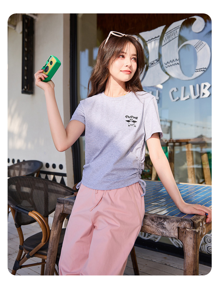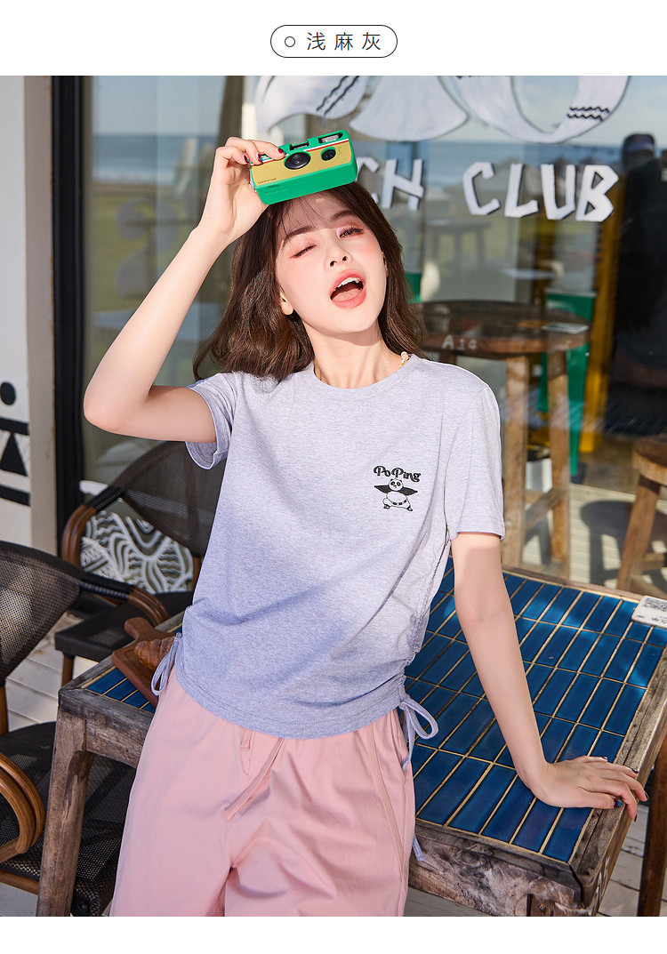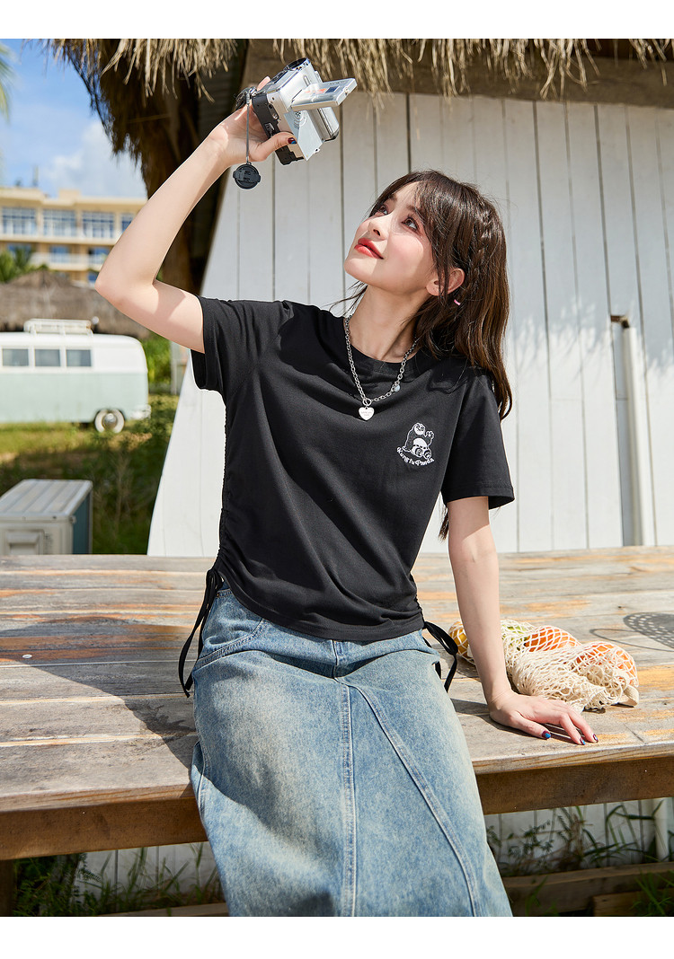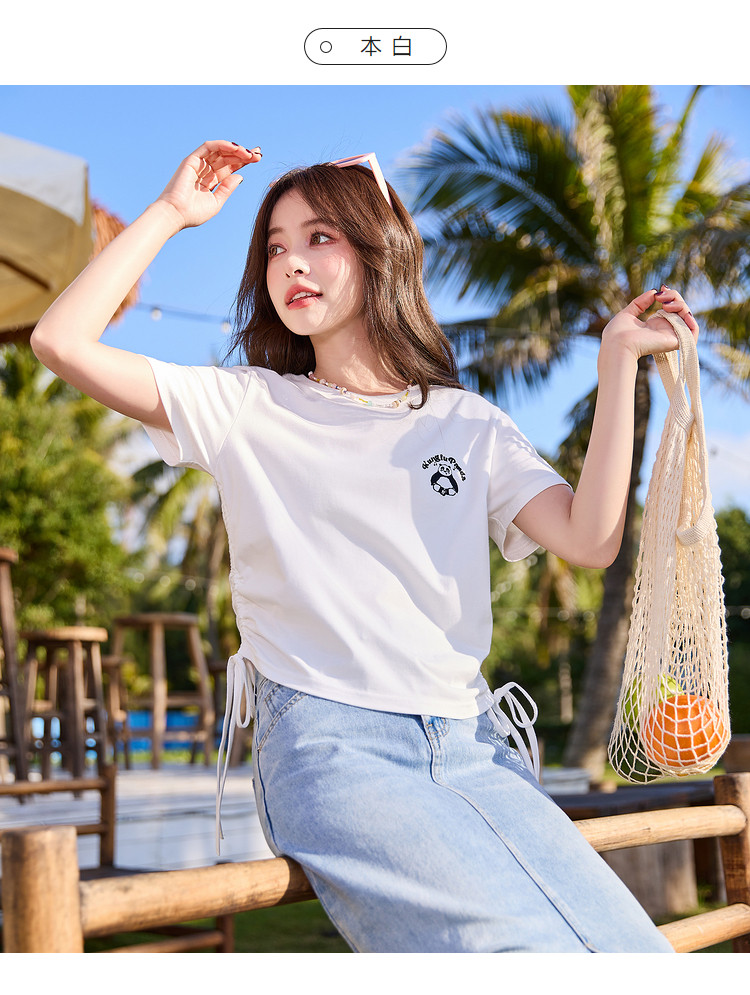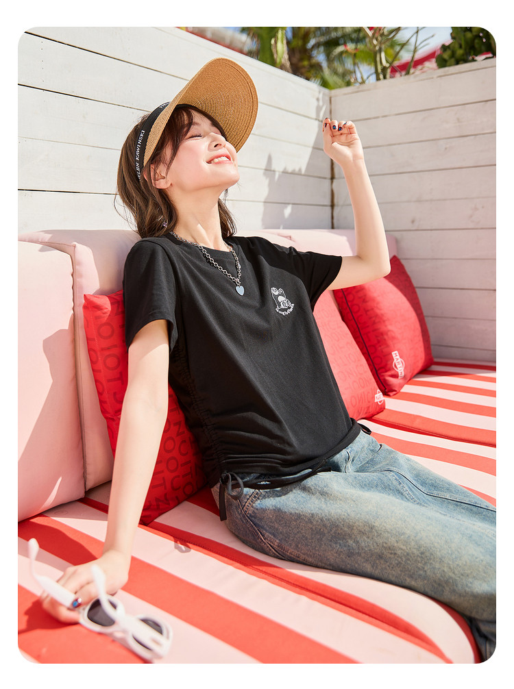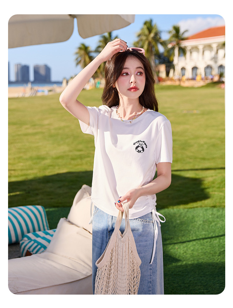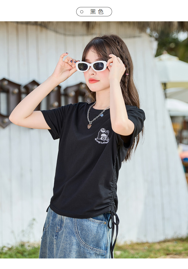 [功夫熊猫联名]唐狮下摆抽绳甜辣小上衣女短款2024新款修身T恤sz