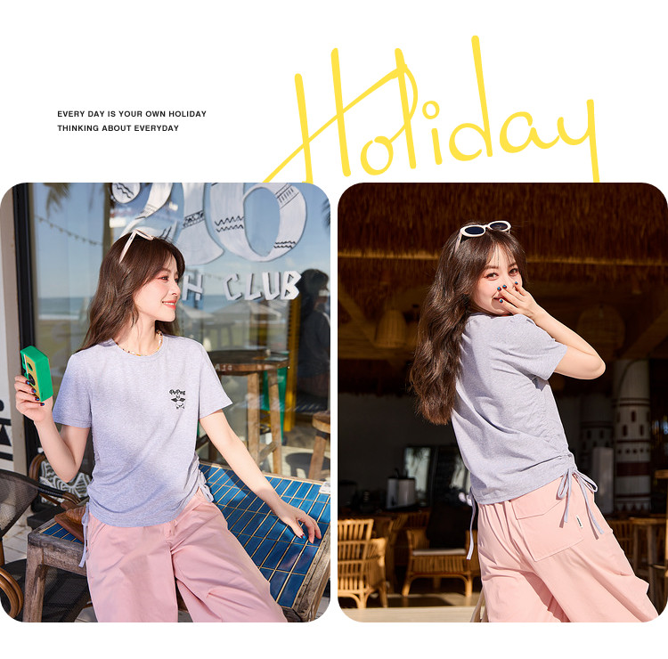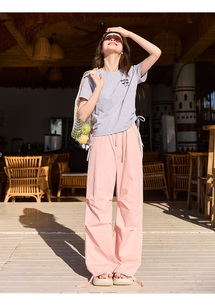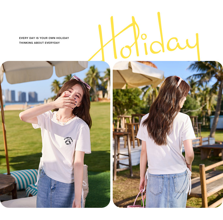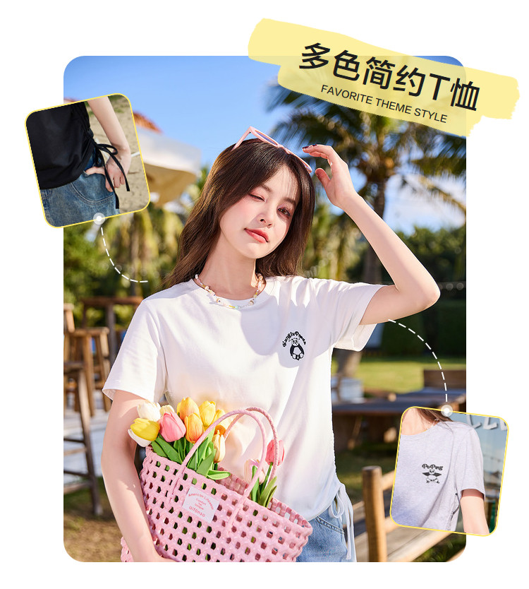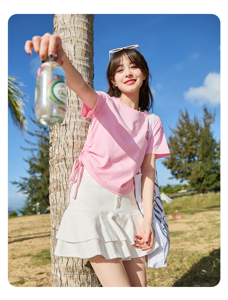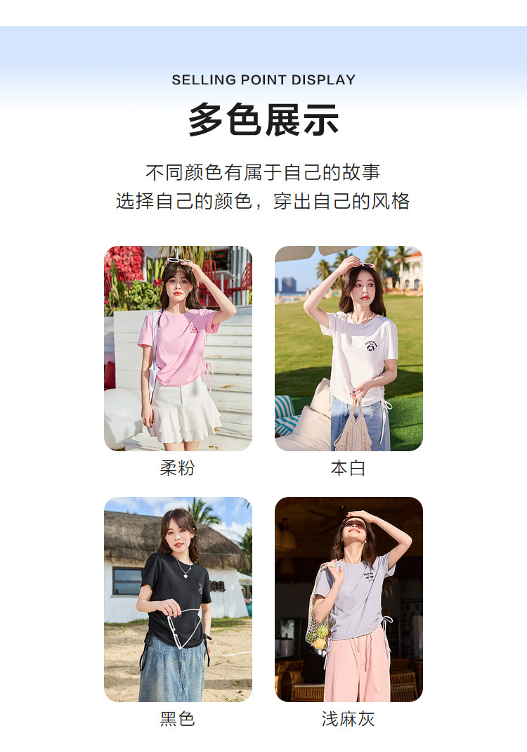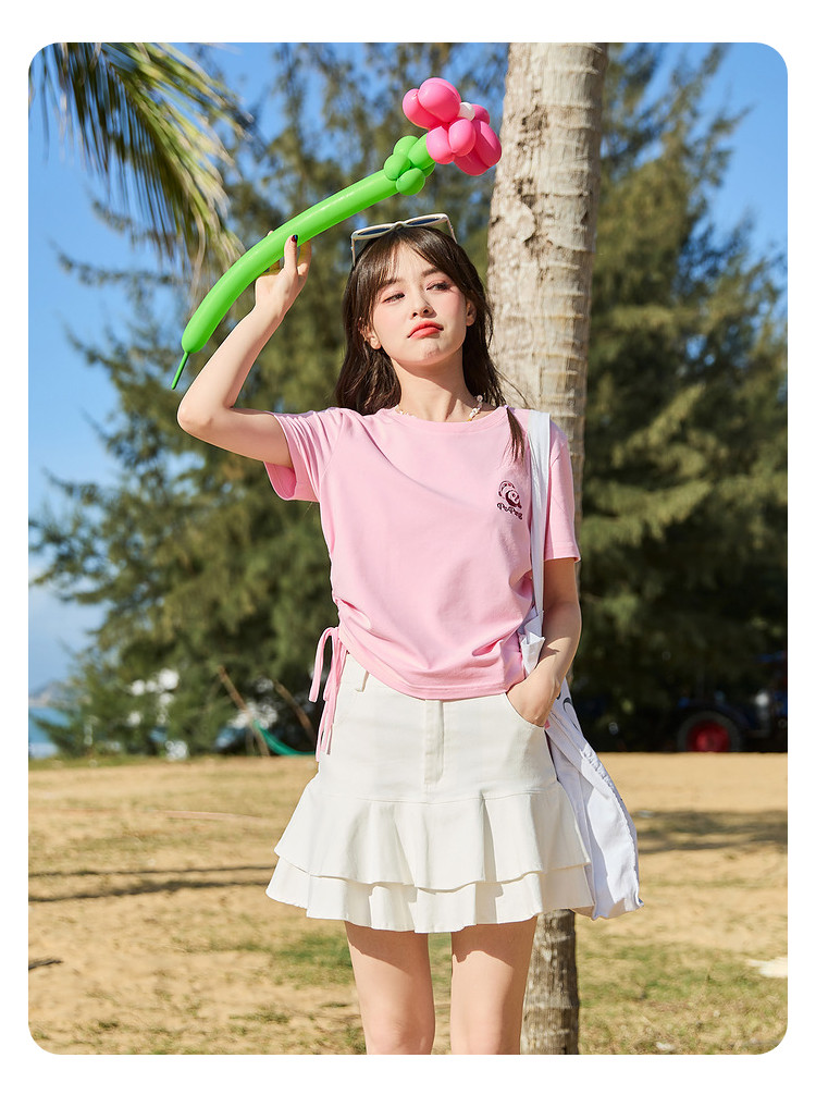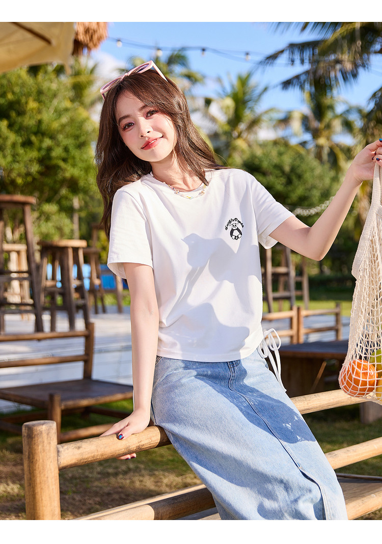 [功夫熊猫联名]唐狮下摆抽绳甜辣小上衣女短款2024新款修身T恤sz