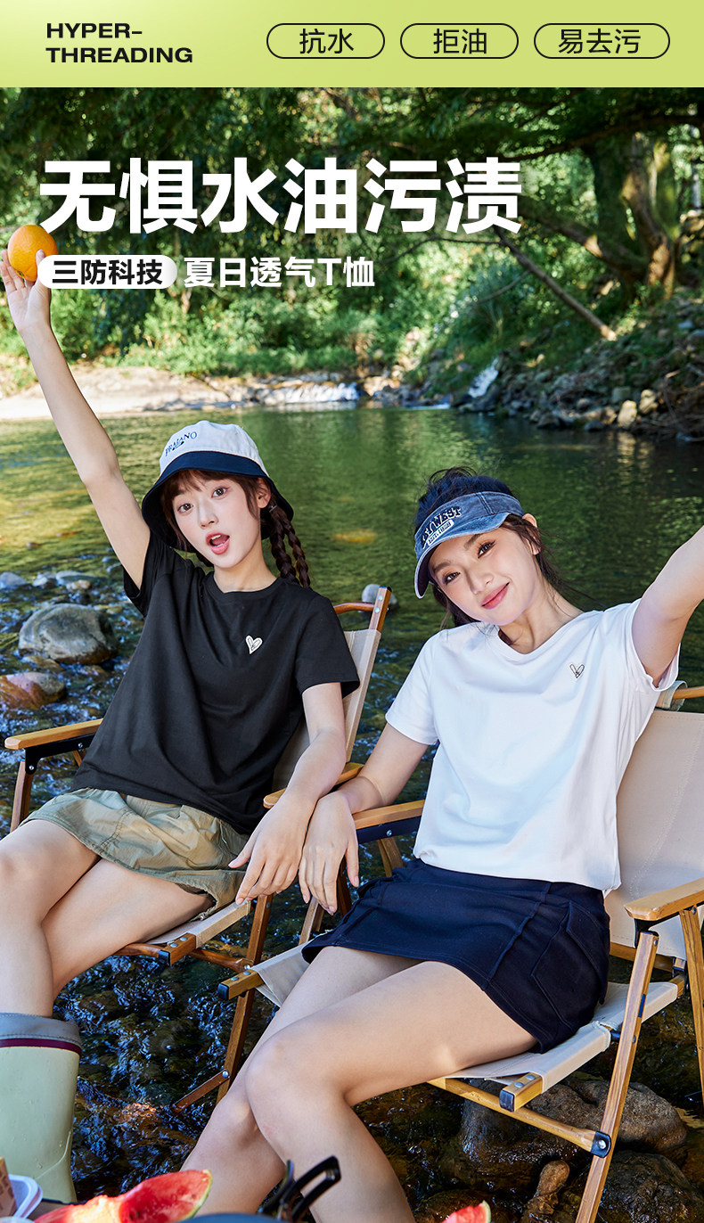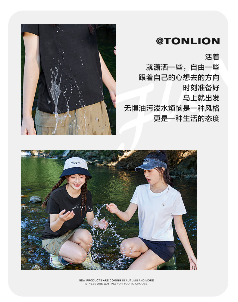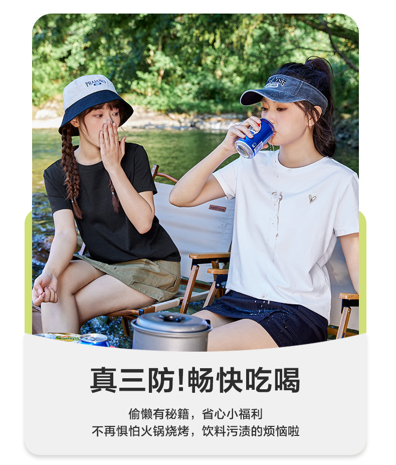 唐狮三防T恤丨2024夏新款防水防污白色短袖T恤女休闲百搭正肩上衣