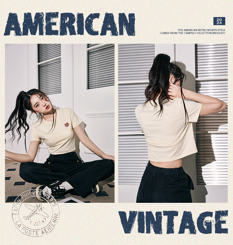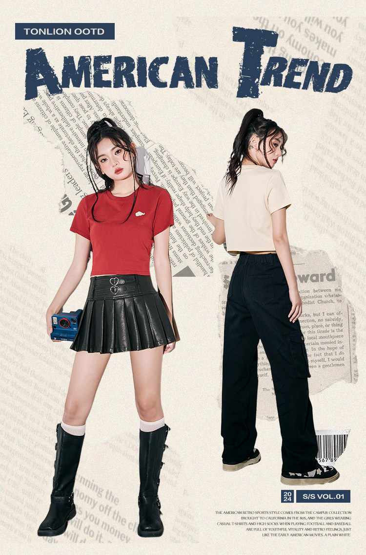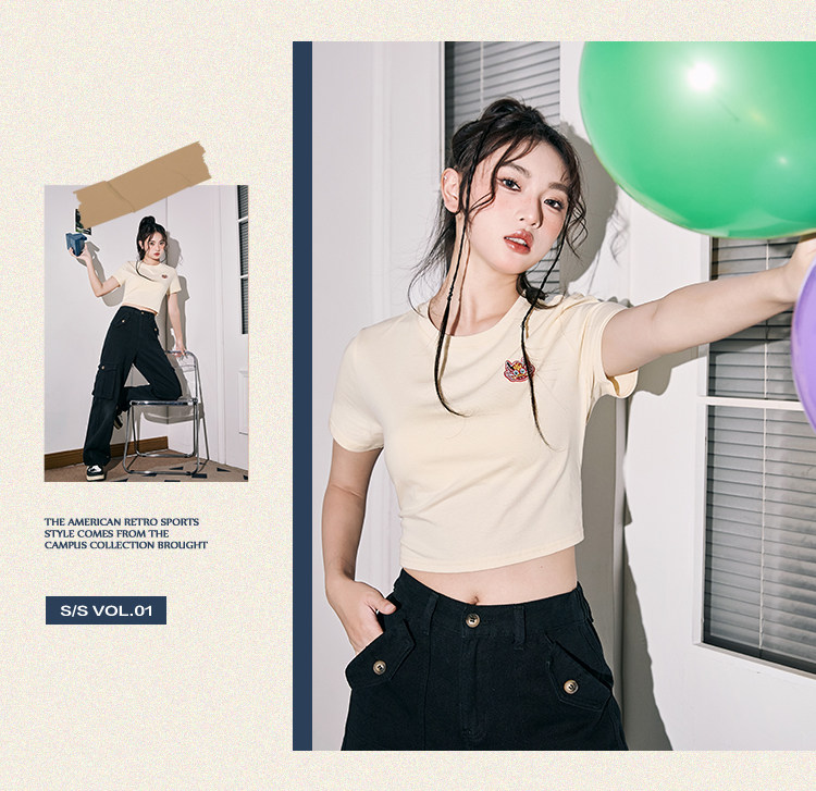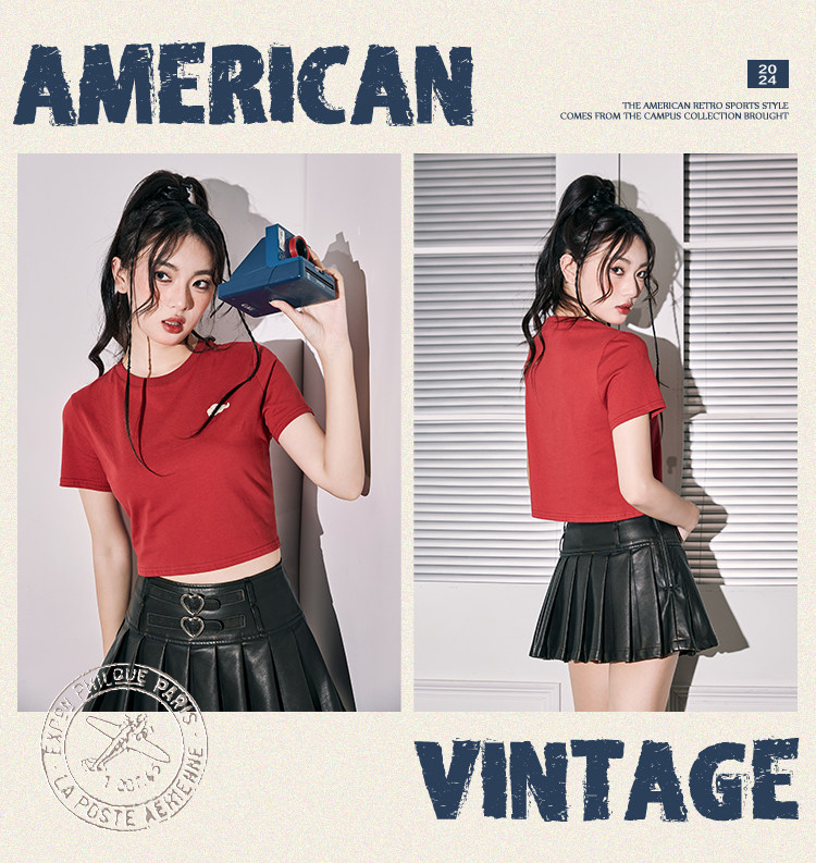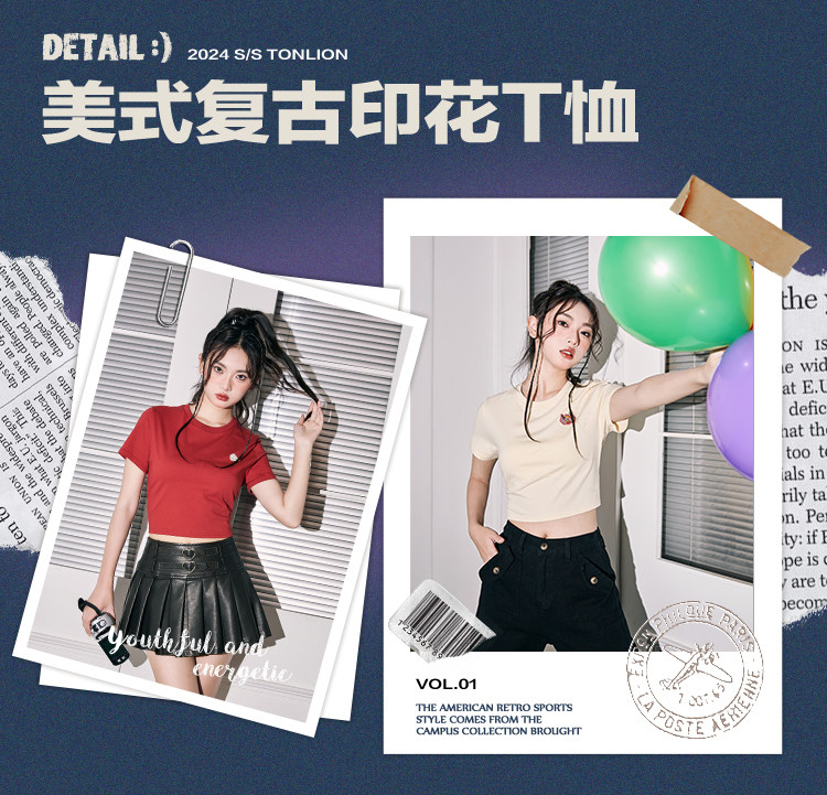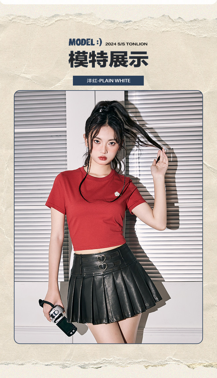 唐狮本命年龙年短袖T恤女2024新款爆款夏季复古美式短款宽松上衣