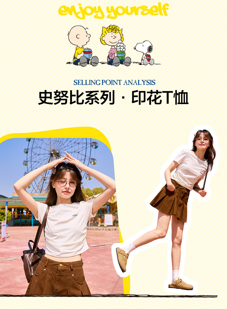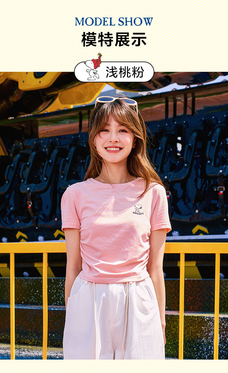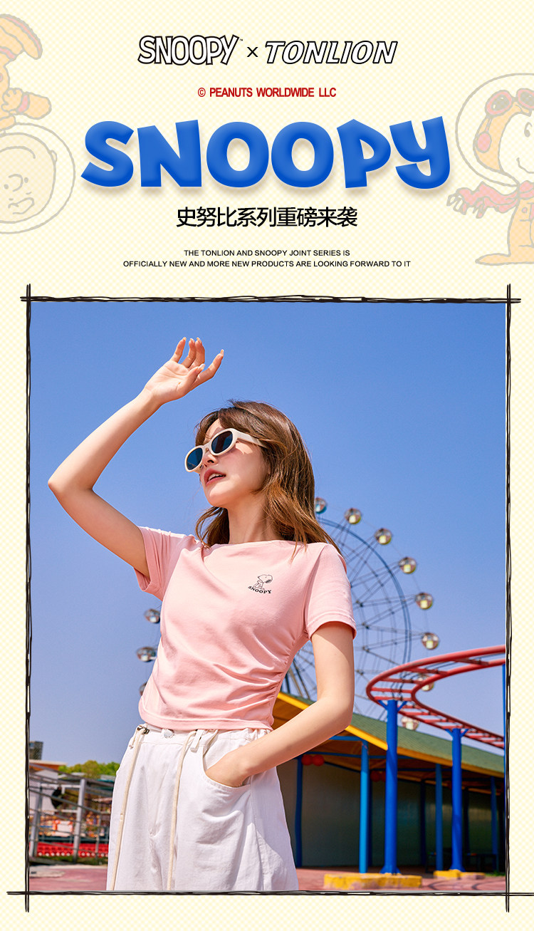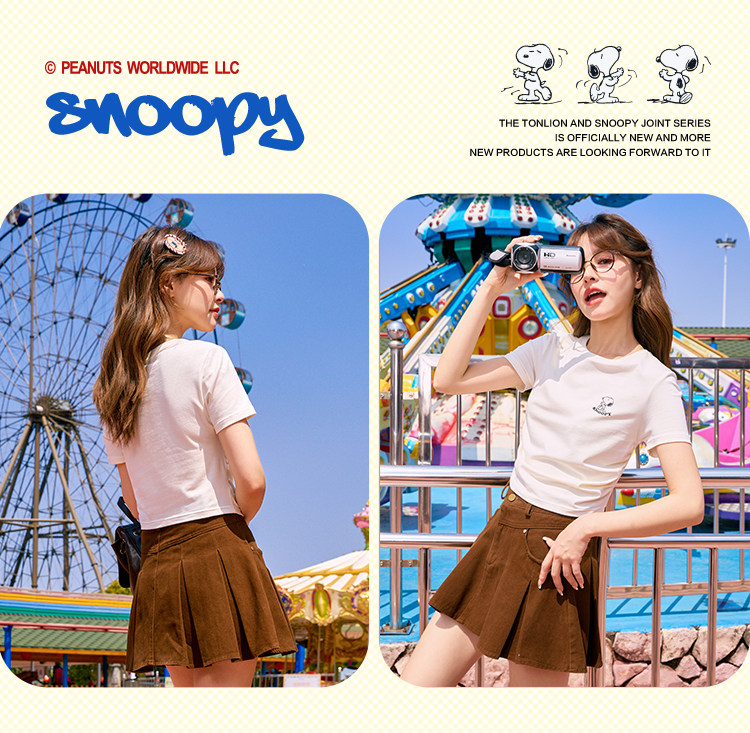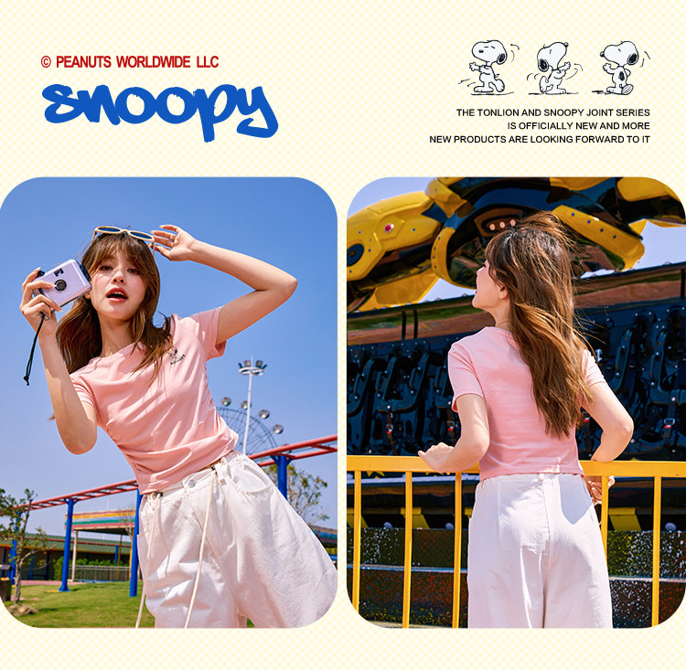 【史努比联名款】唐狮正肩短袖T恤女2024新款夏季短款上衣甜辣sz