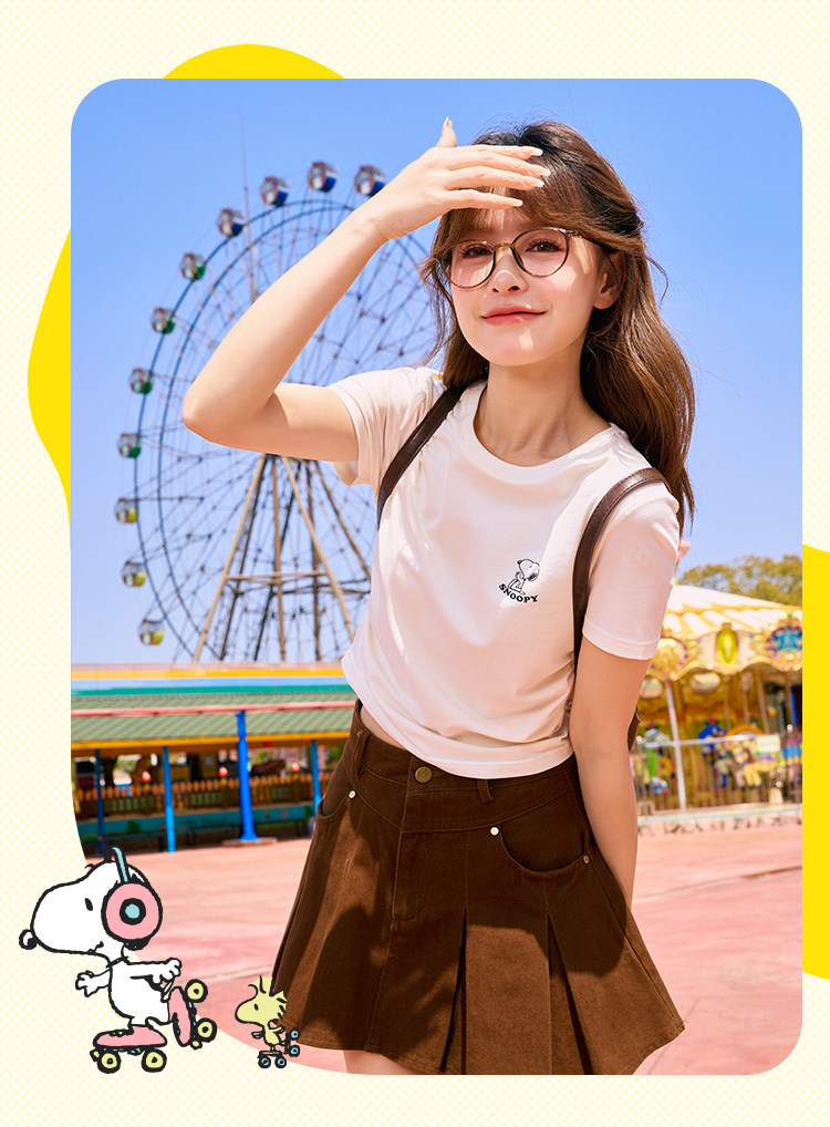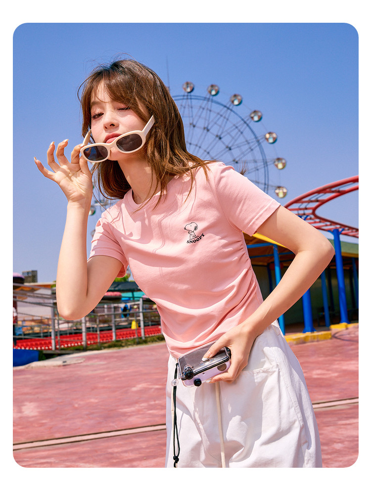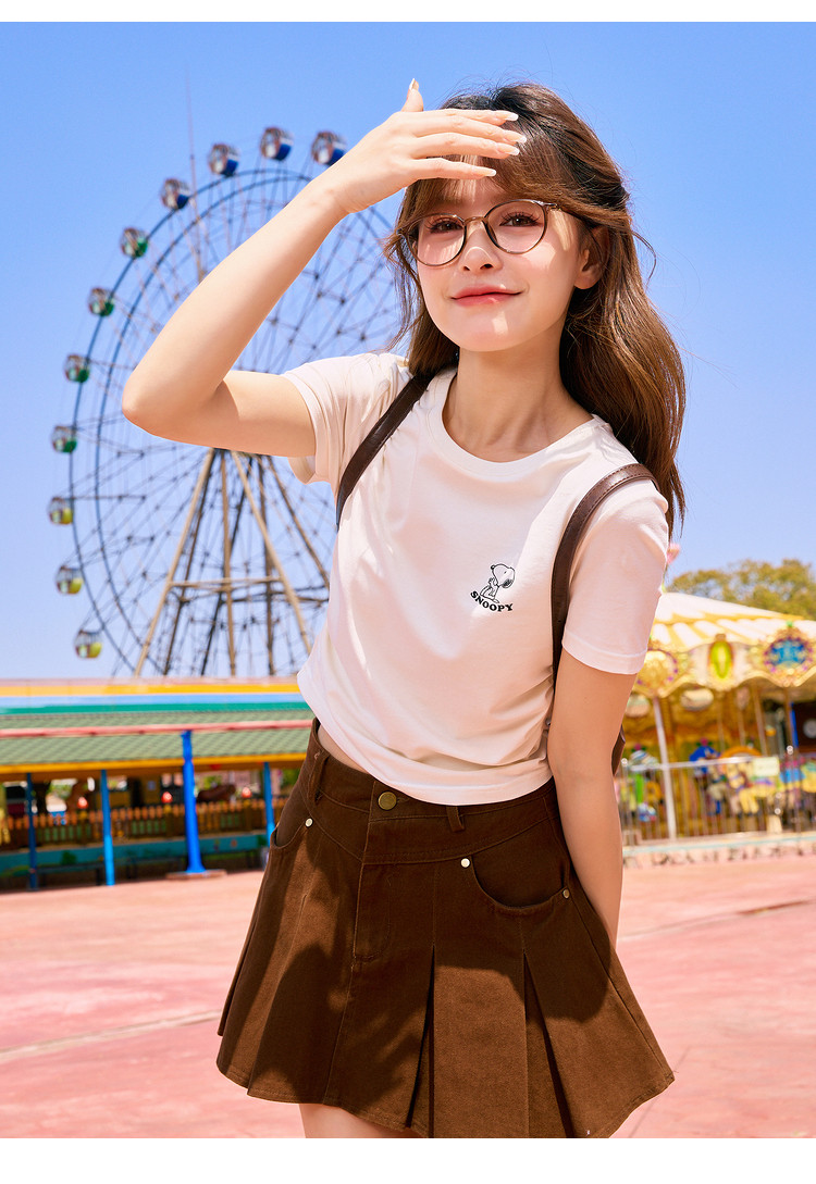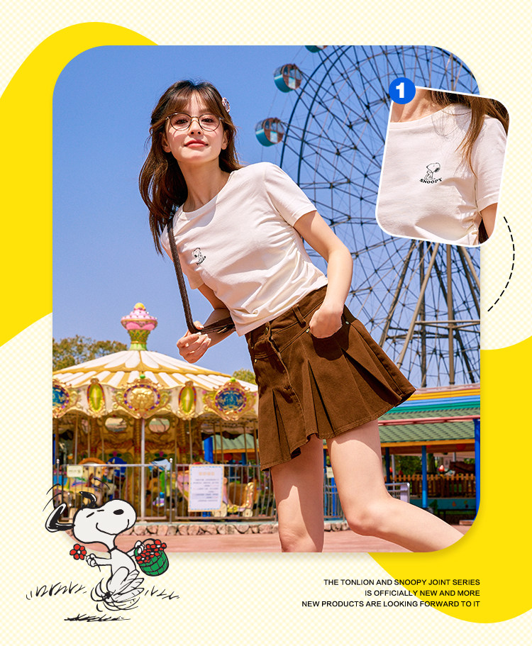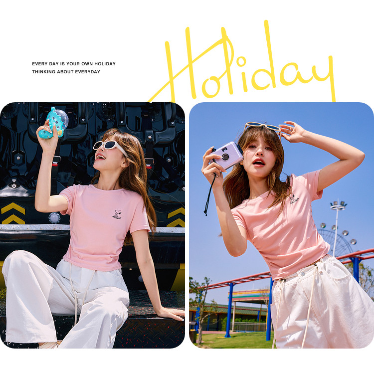 【史努比联名款】唐狮正肩短袖T恤女2024新款夏季短款上衣甜辣sz