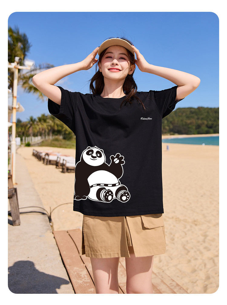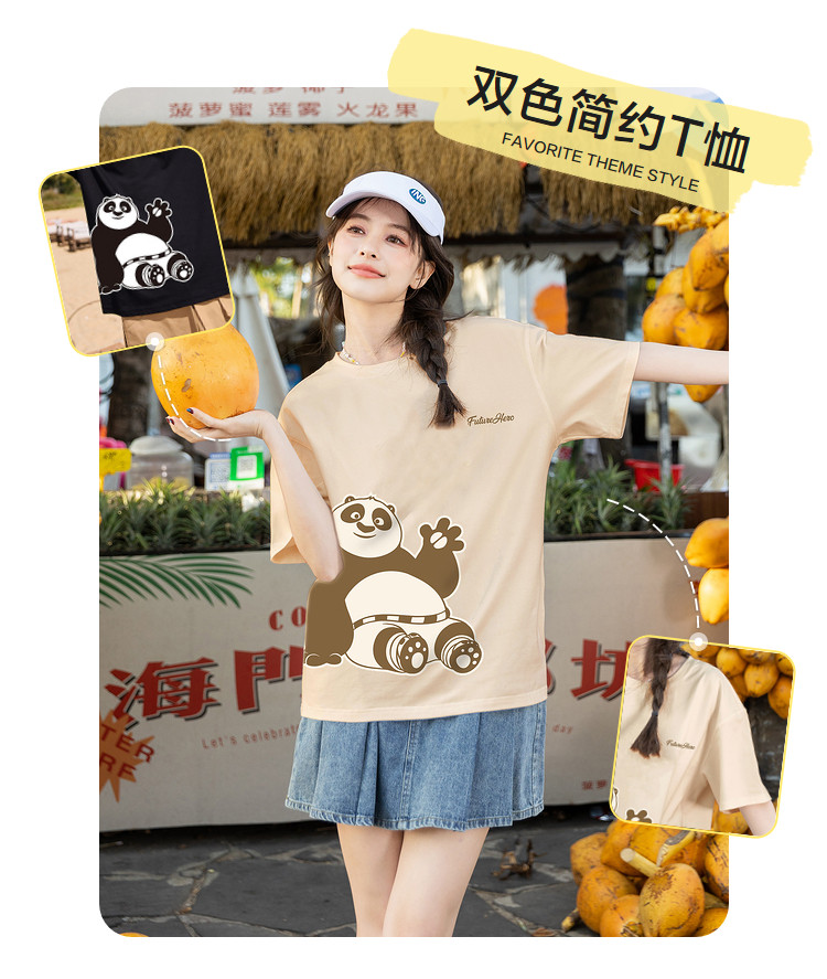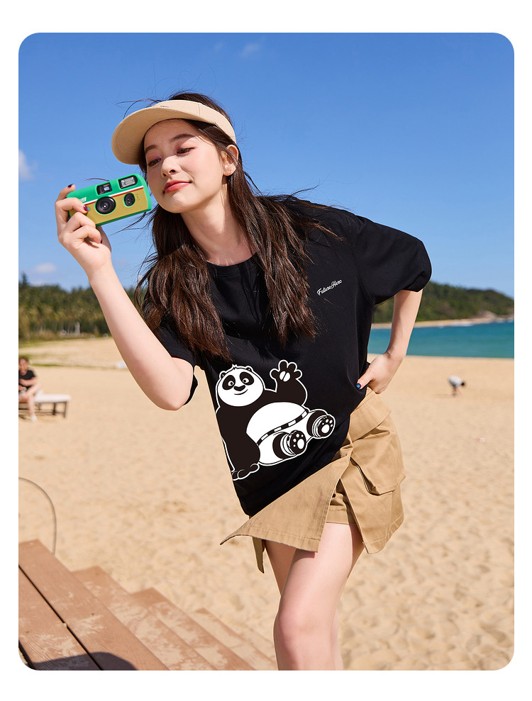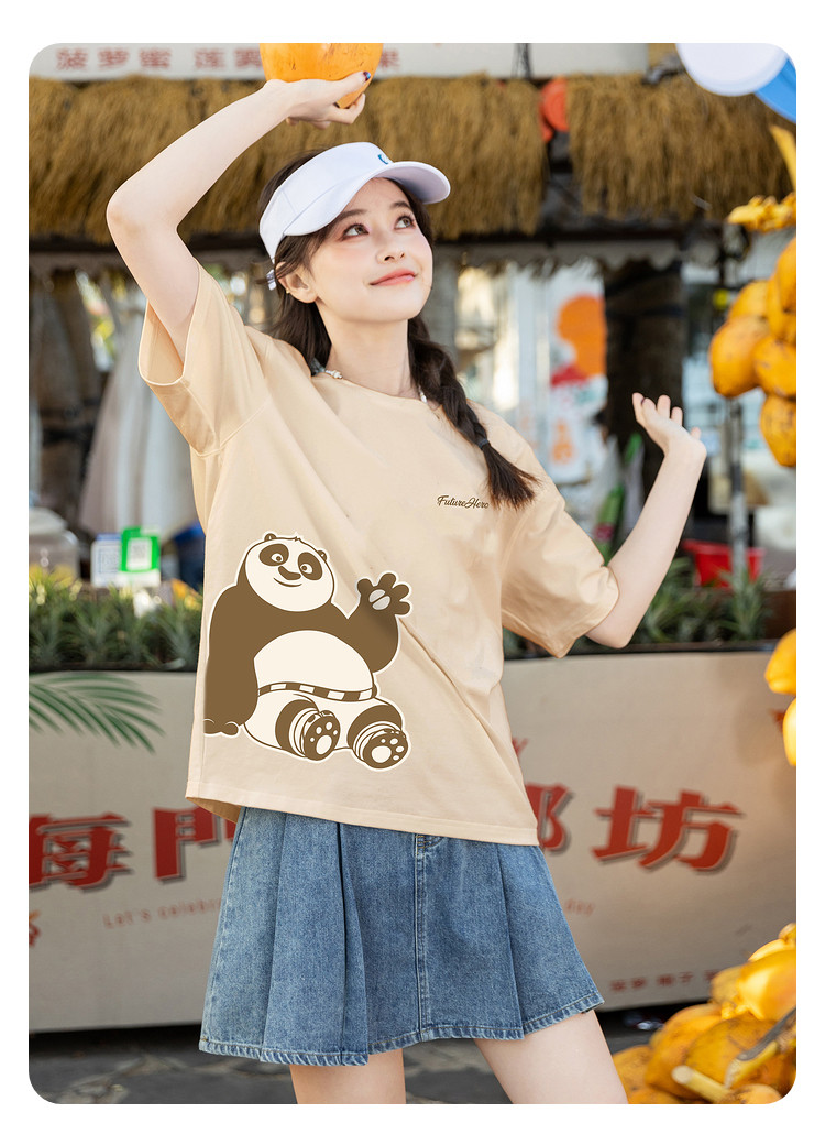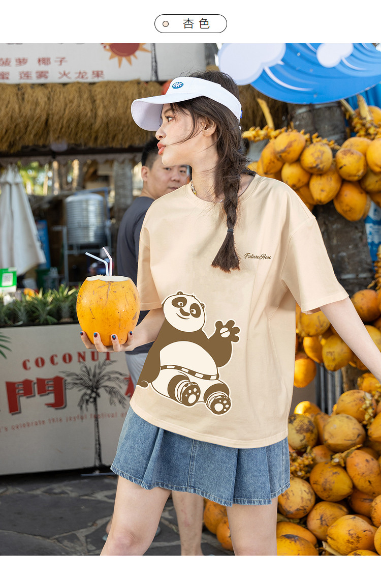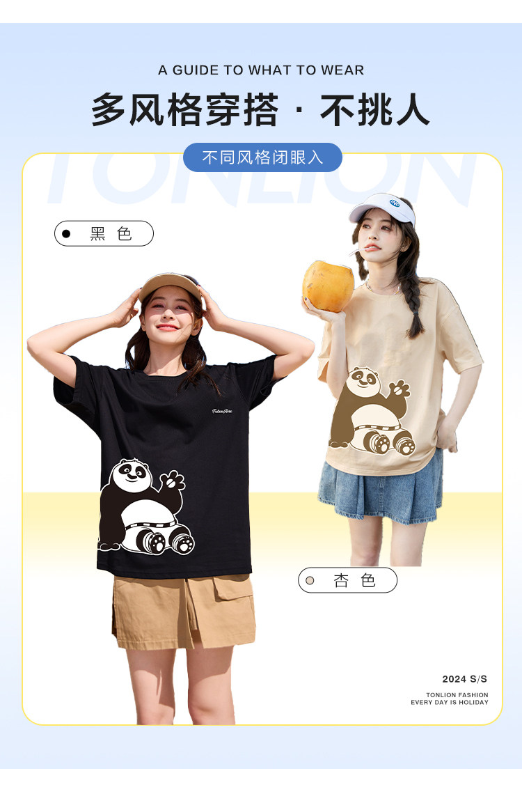 [功夫熊猫联名]唐狮纯棉短袖T恤女2024新款潮酷上衣女夏季体恤sz
