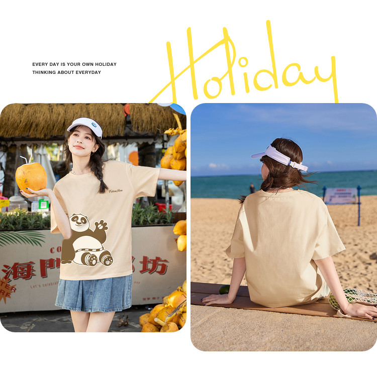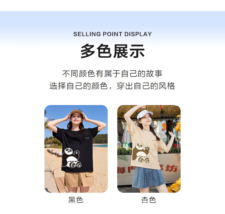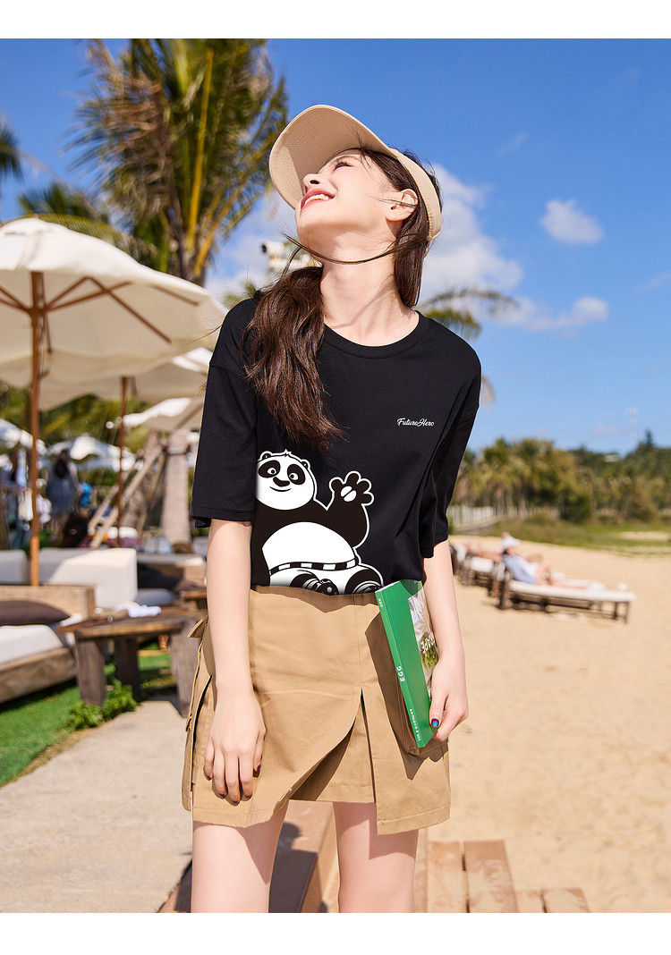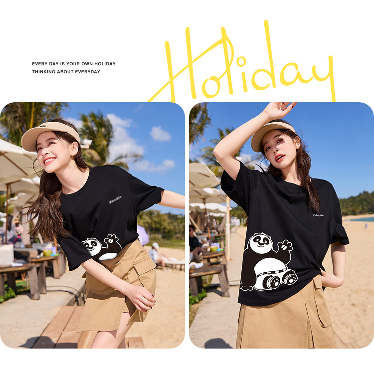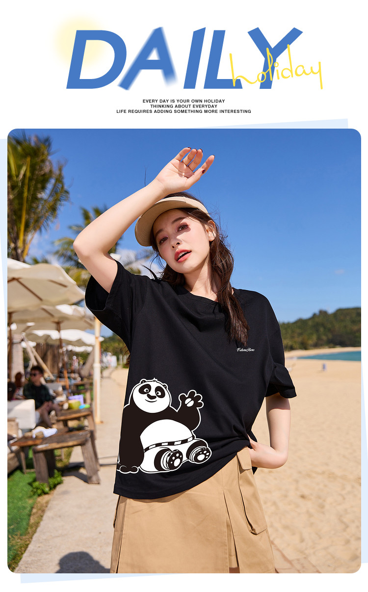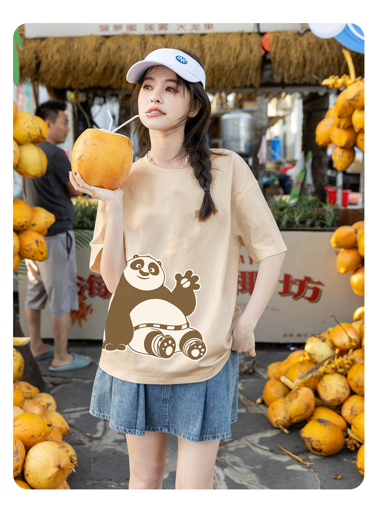 [功夫熊猫联名]唐狮纯棉短袖T恤女2024新款潮酷上衣女夏季体恤sz