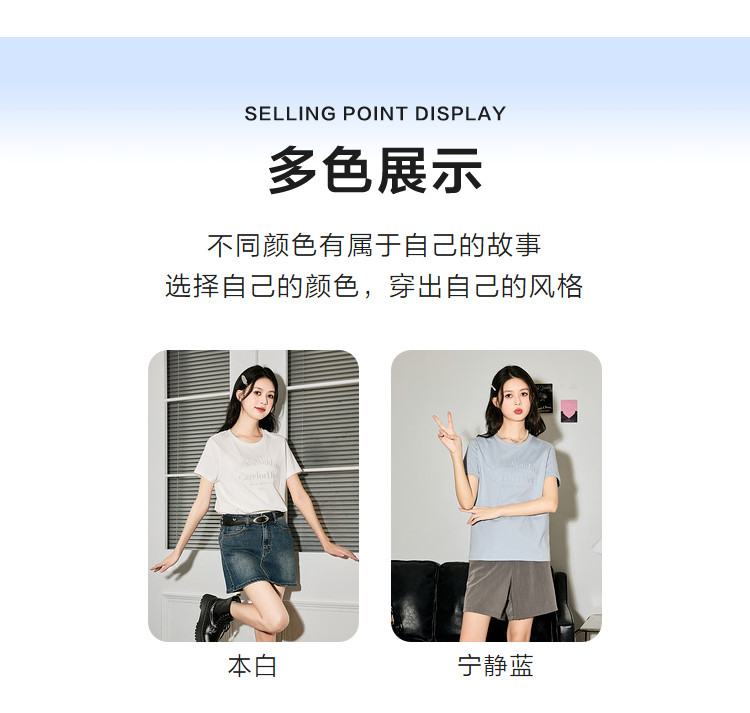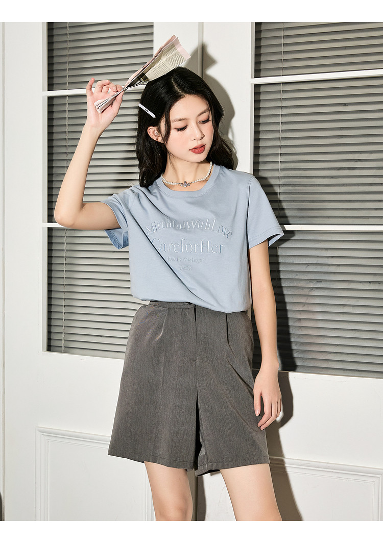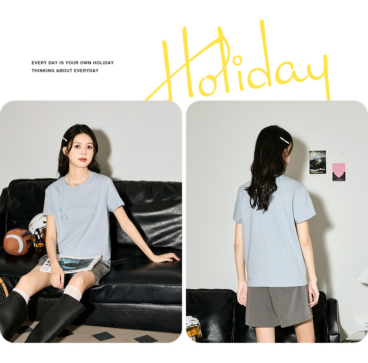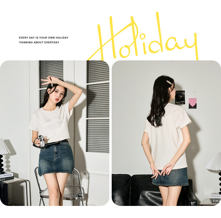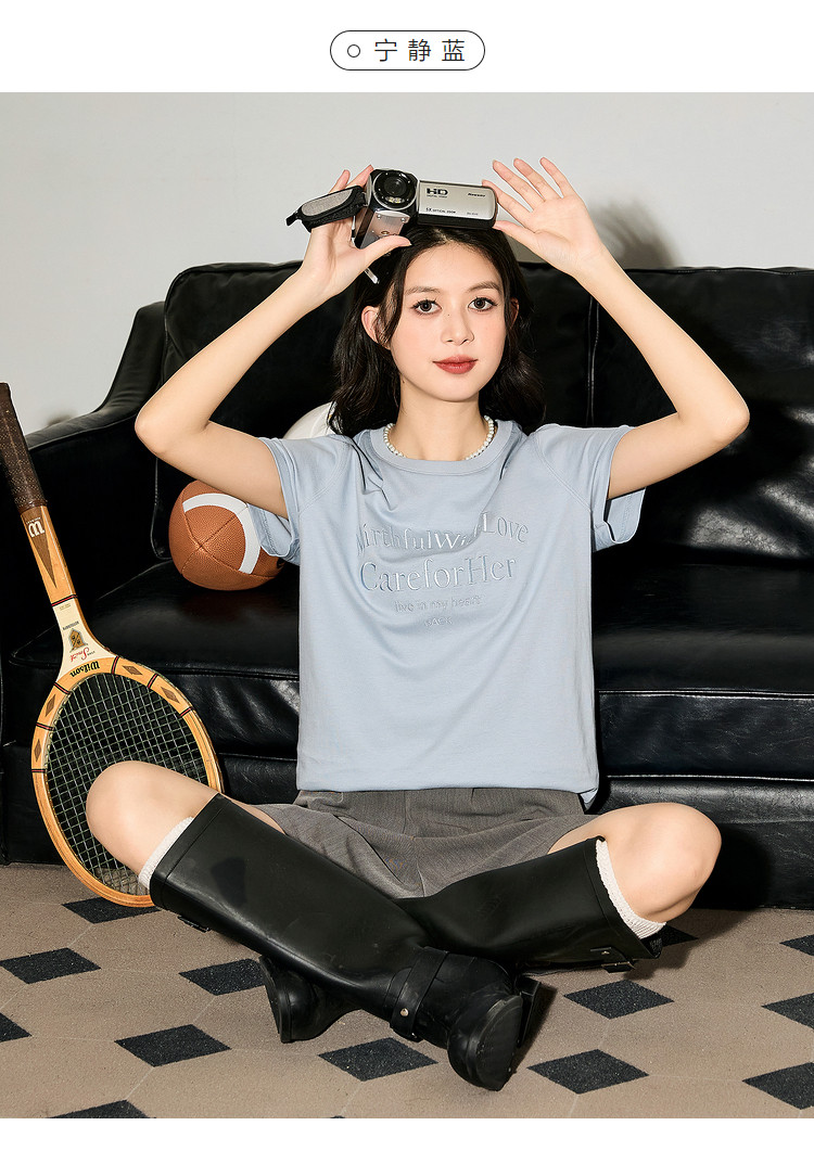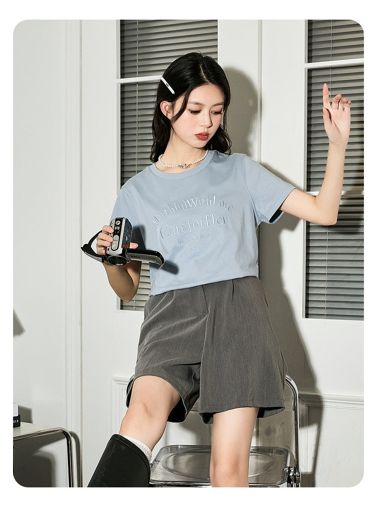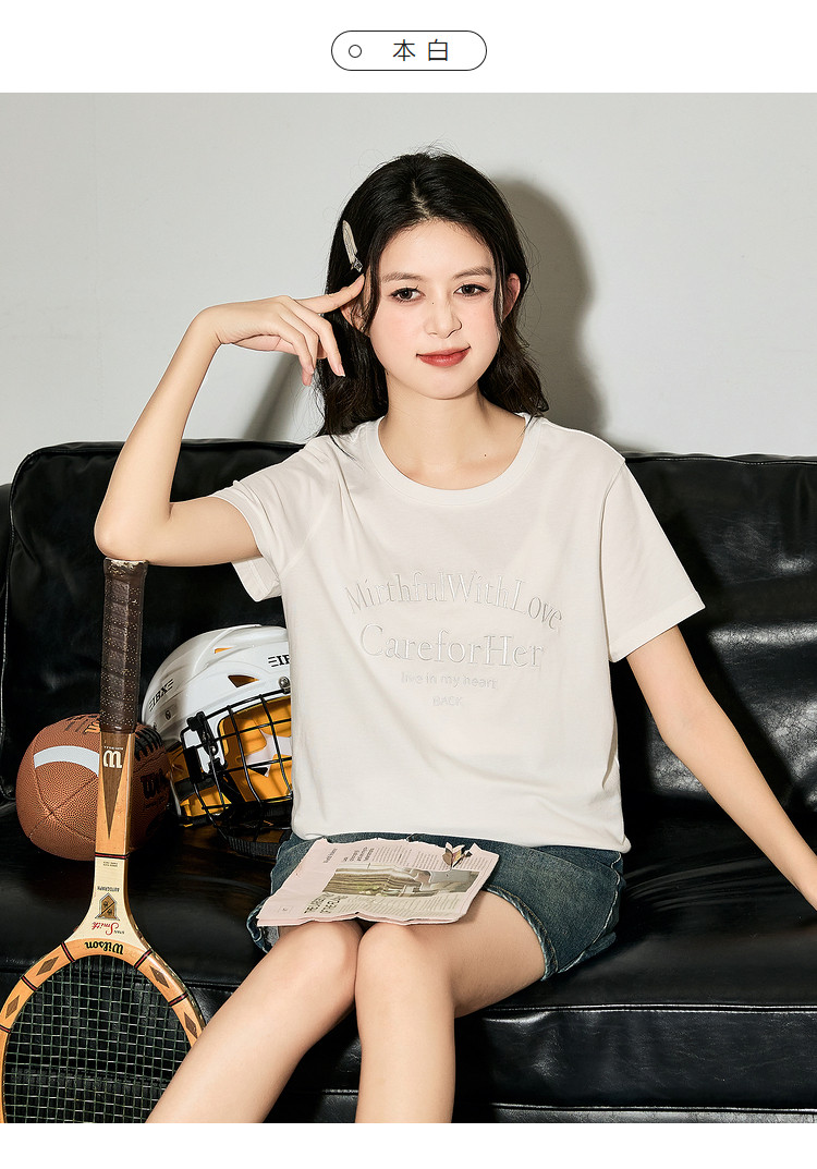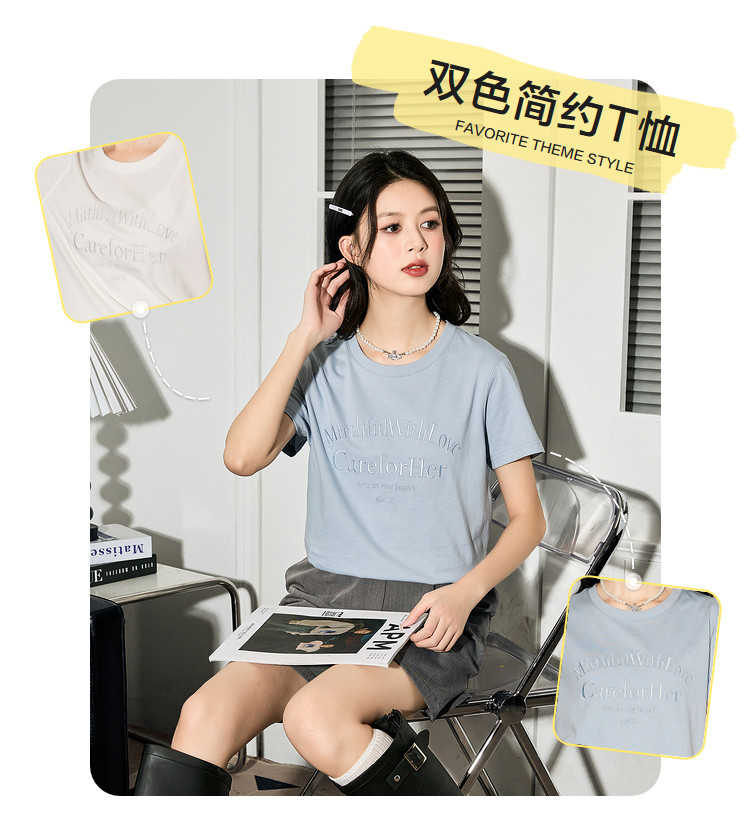 唐狮2024夏季新款女短袖T恤圆领简约文字女韩系别致绝美小上衣sz
