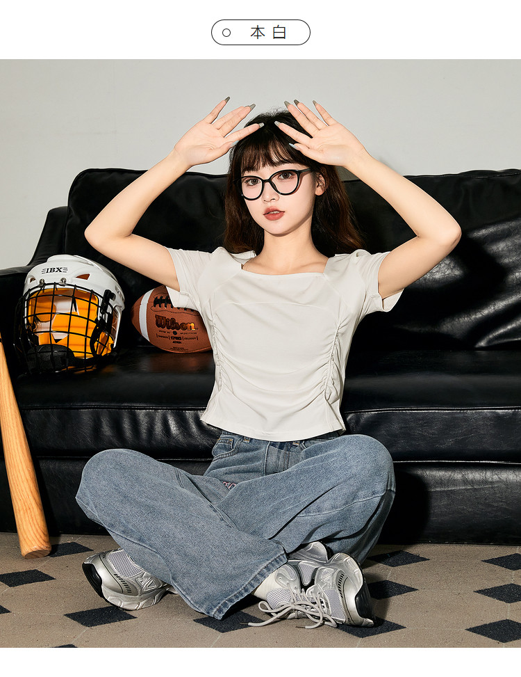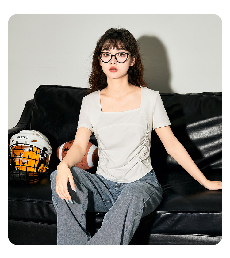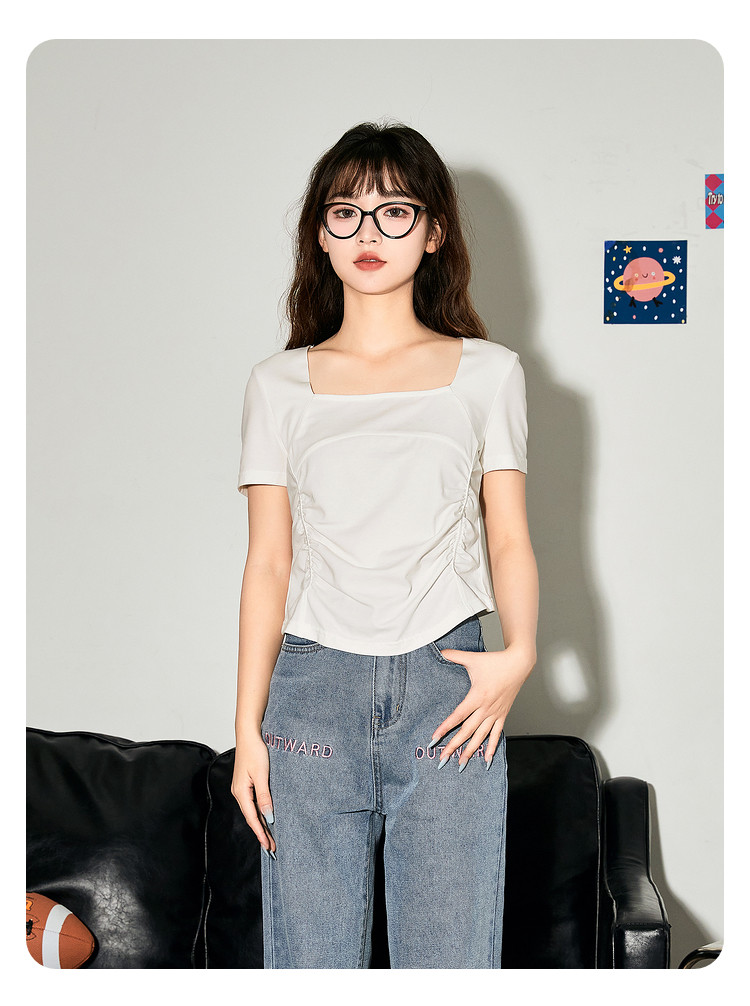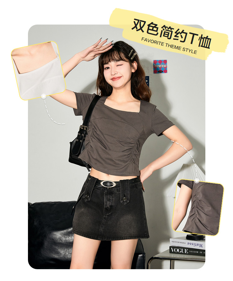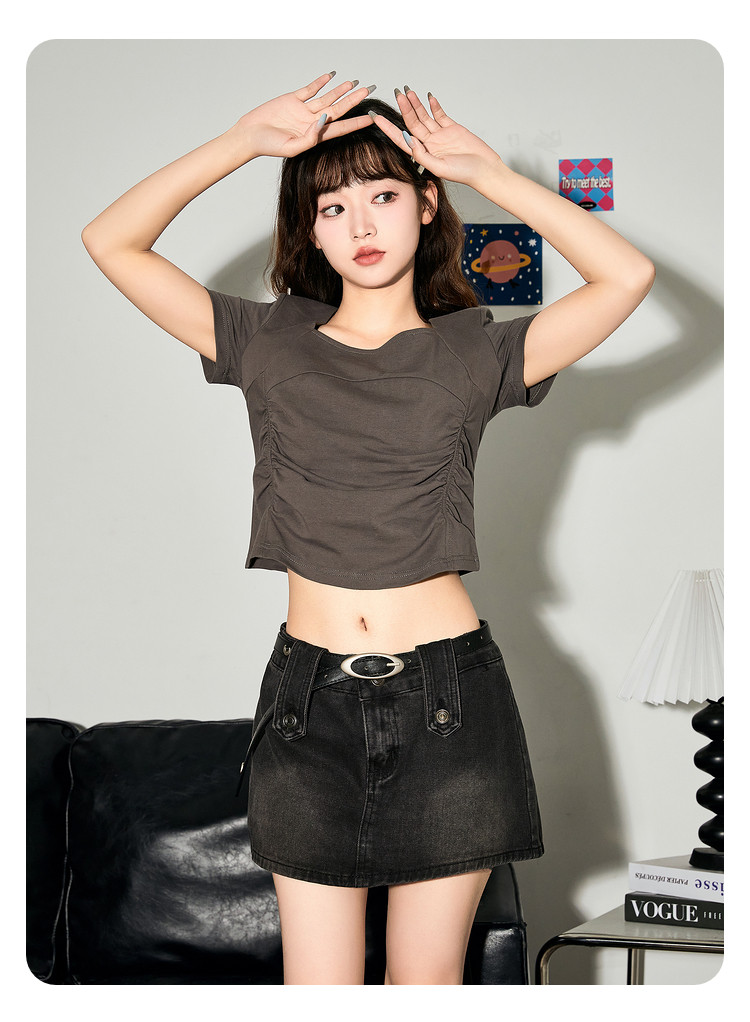 唐狮2024新款短袖T恤女夏季设计感短款上衣女韩版chic小众体恤sz