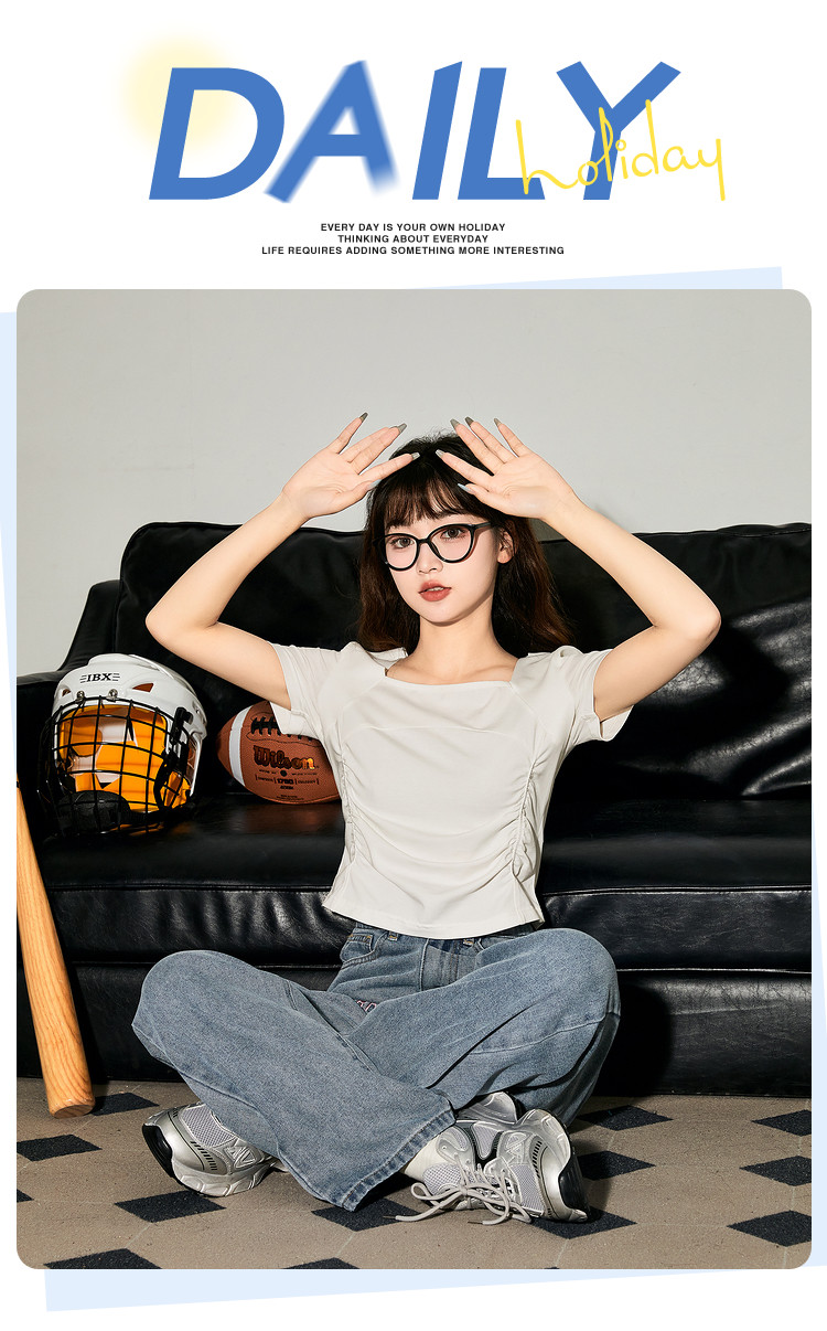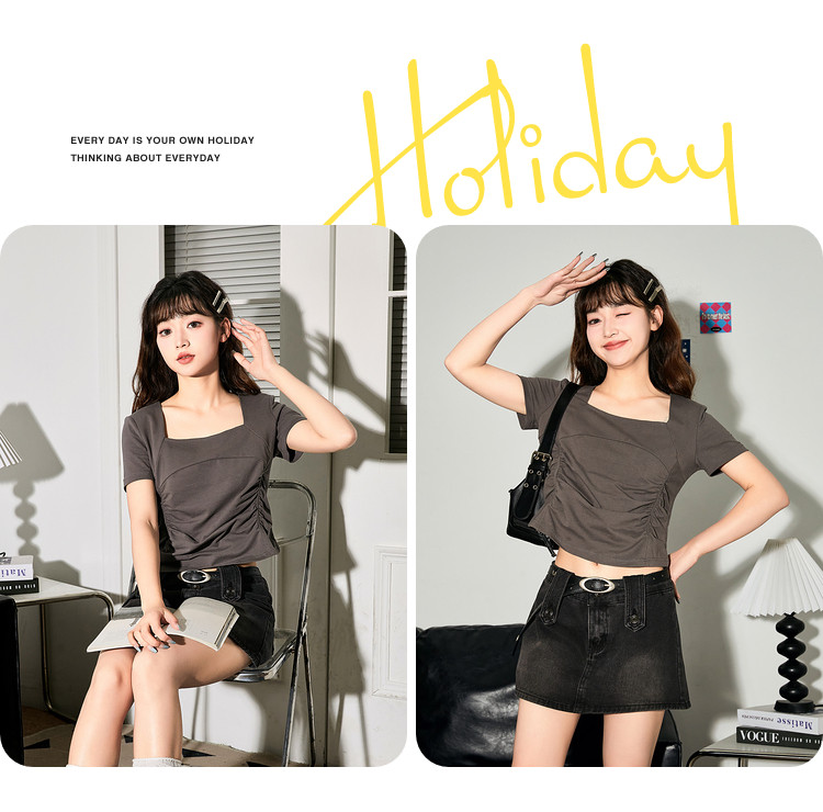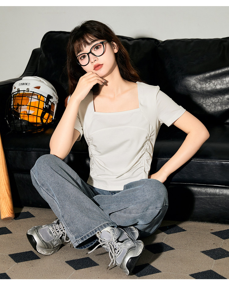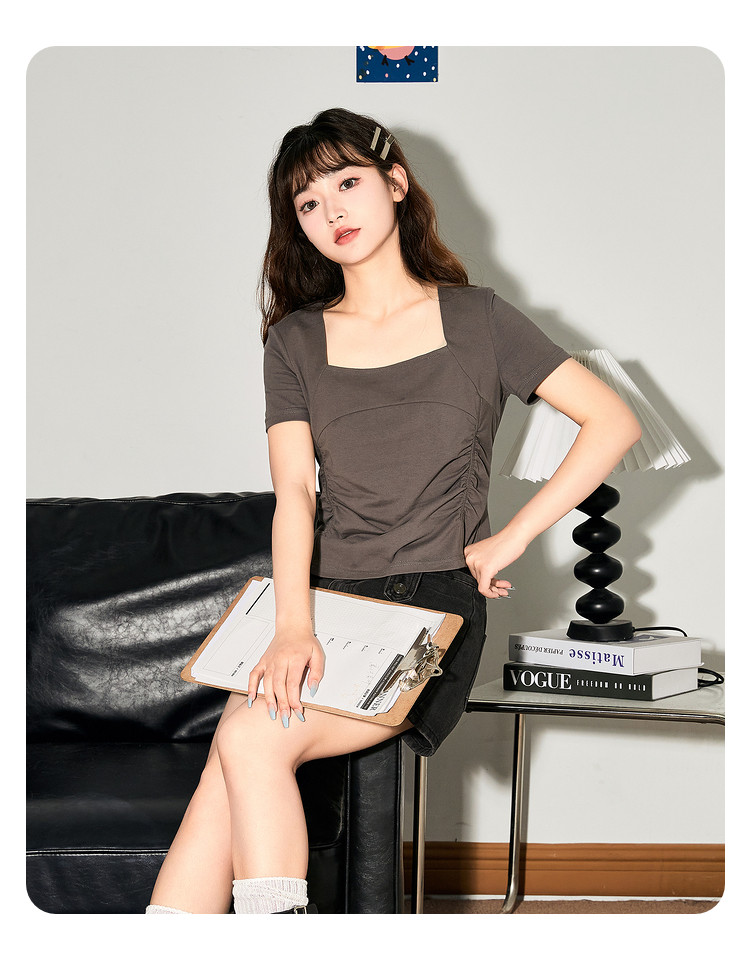 唐狮2024新款短袖T恤女夏季设计感短款上衣女韩版chic小众体恤sz
