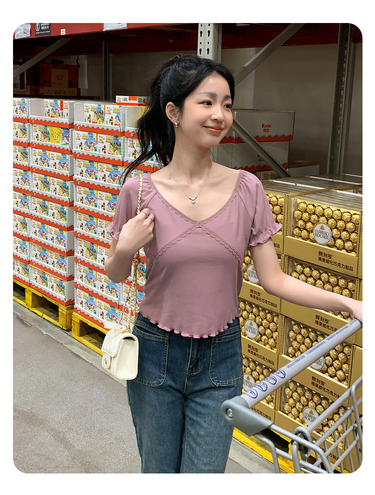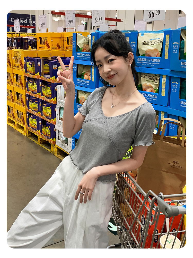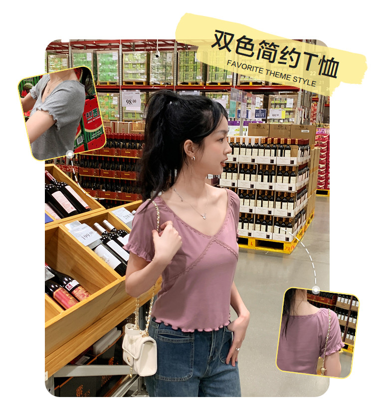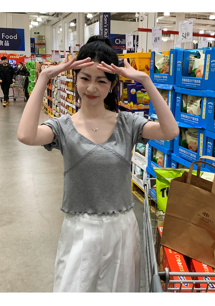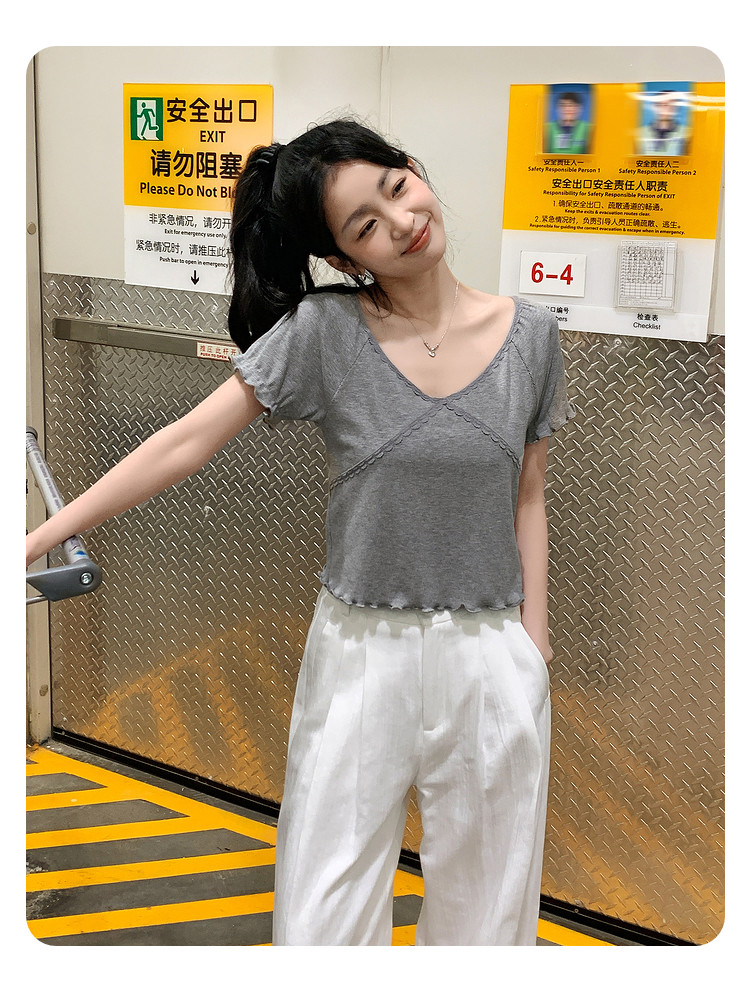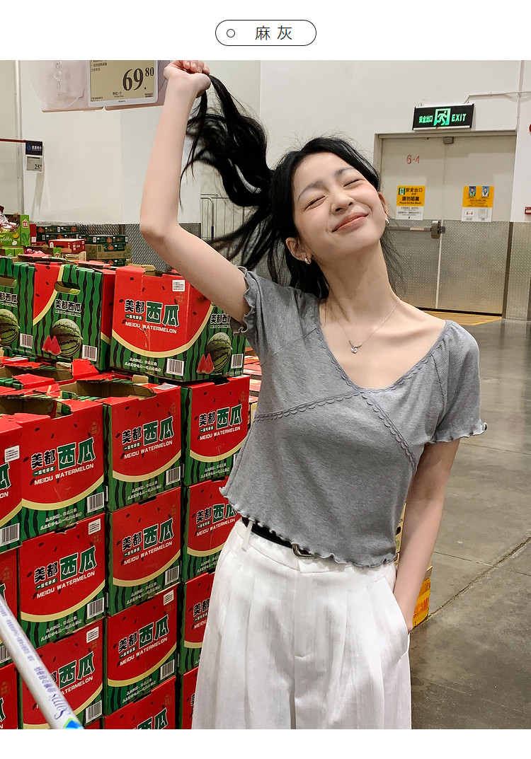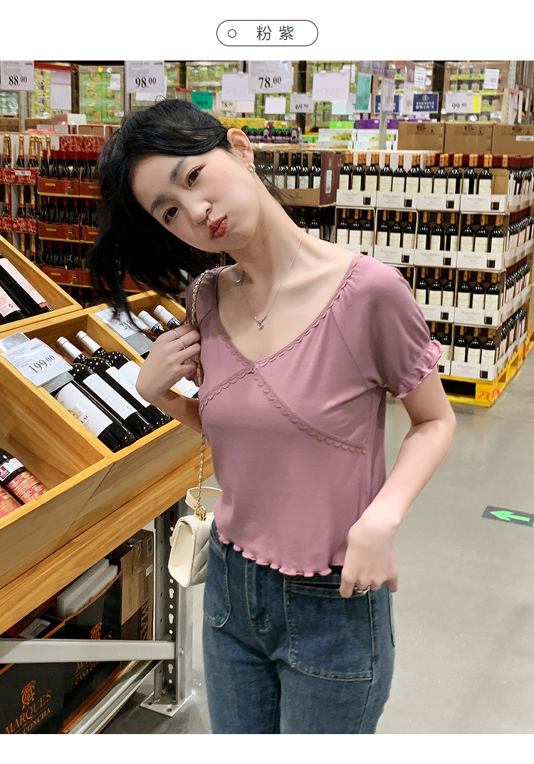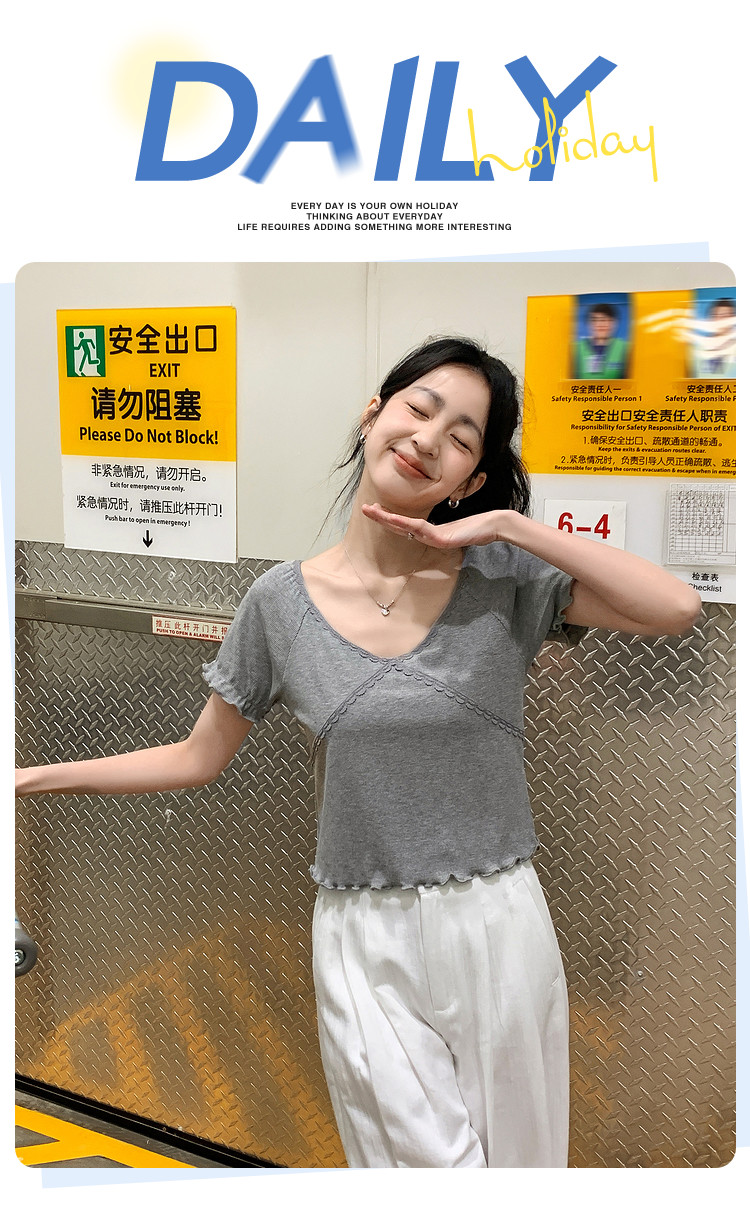 唐狮2024夏季新款短袖T恤女超好看小衫小众设计感法式短款上衣sz