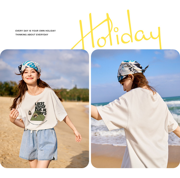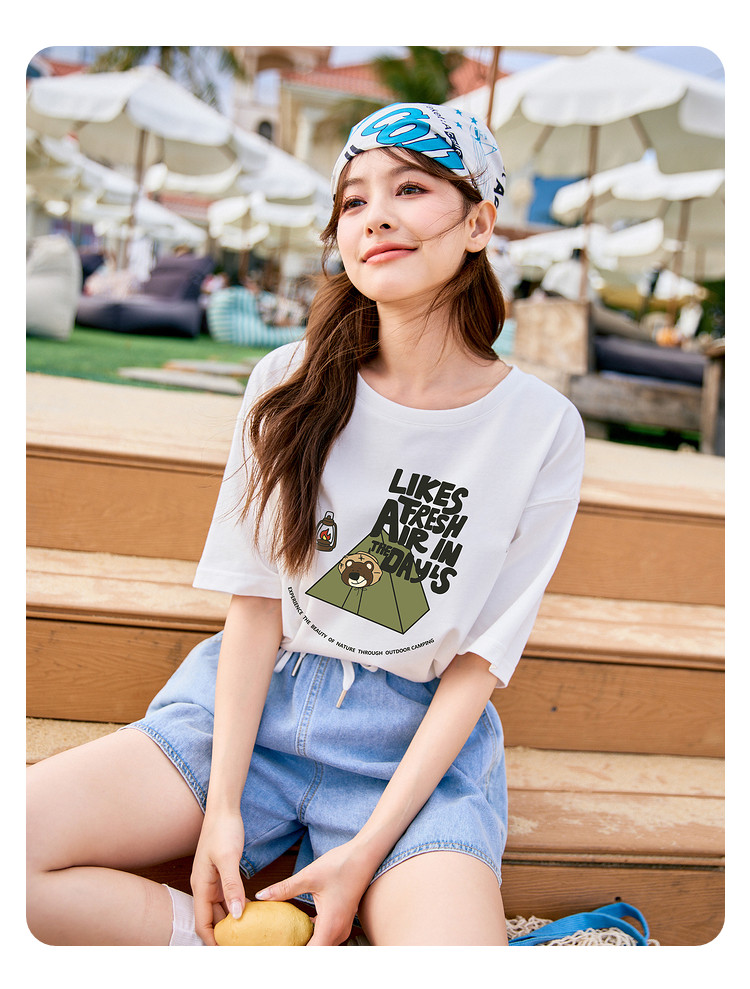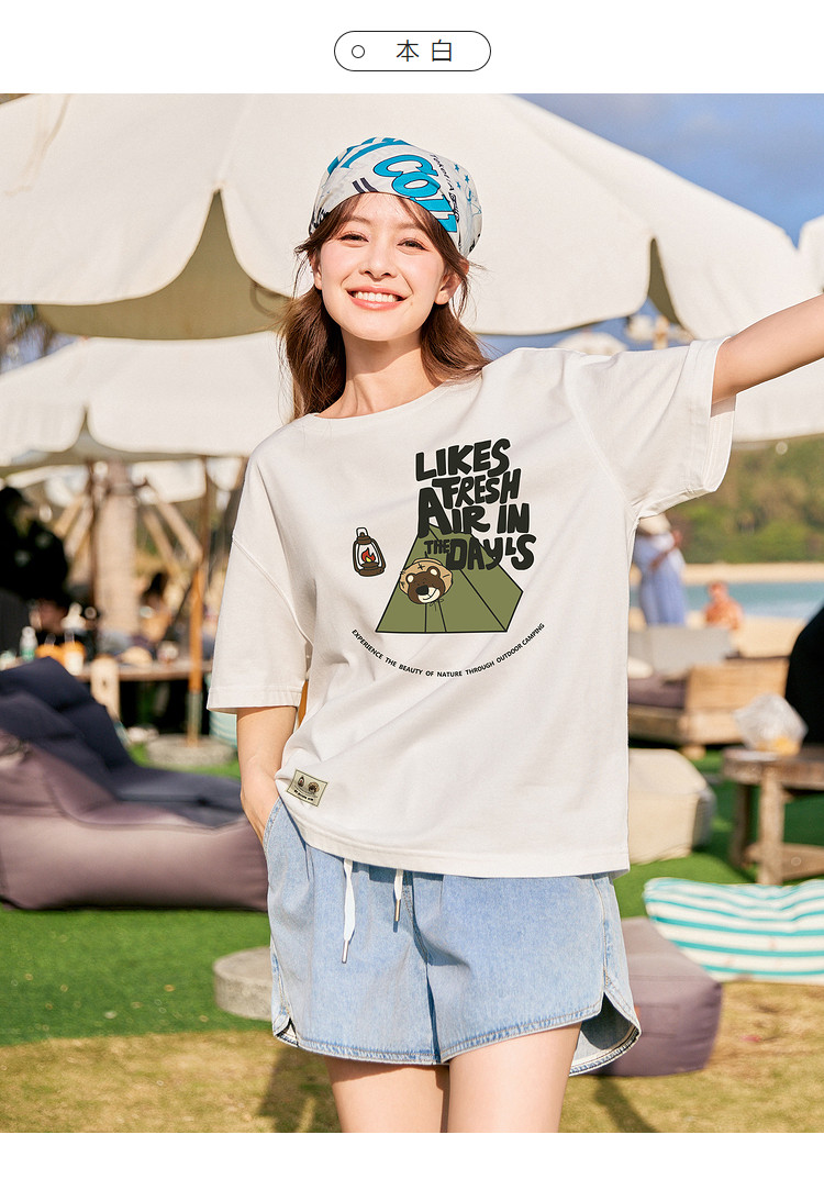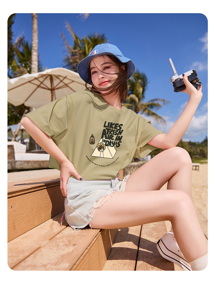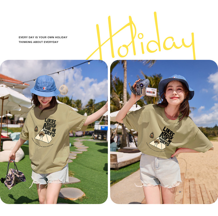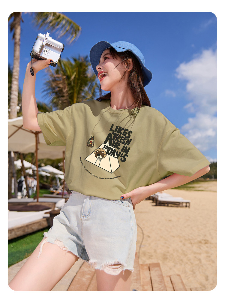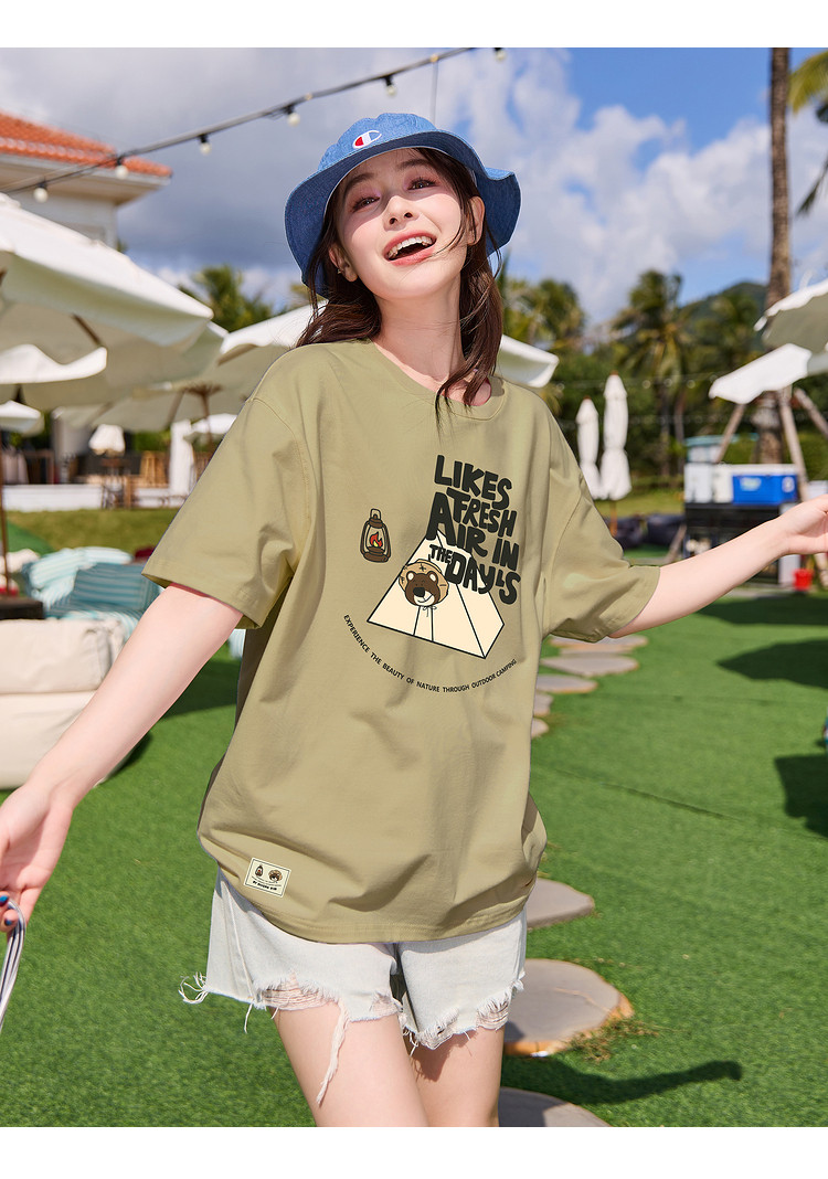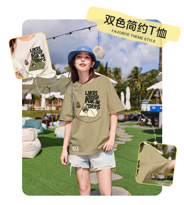 唐狮2024夏季新款短袖T恤女小众圆领纯棉宽松上衣女时髦百搭sz