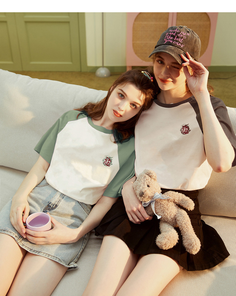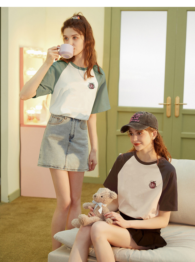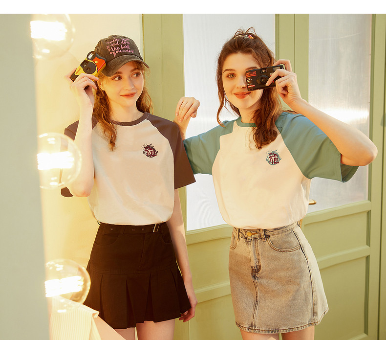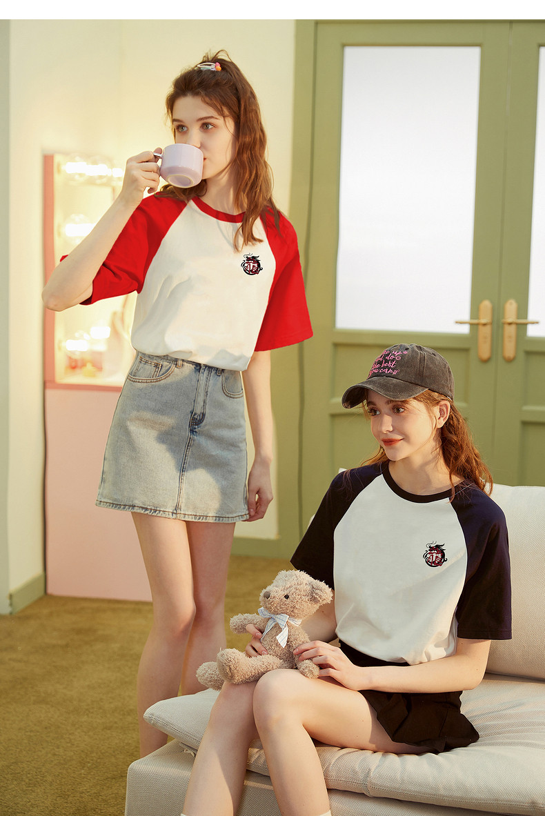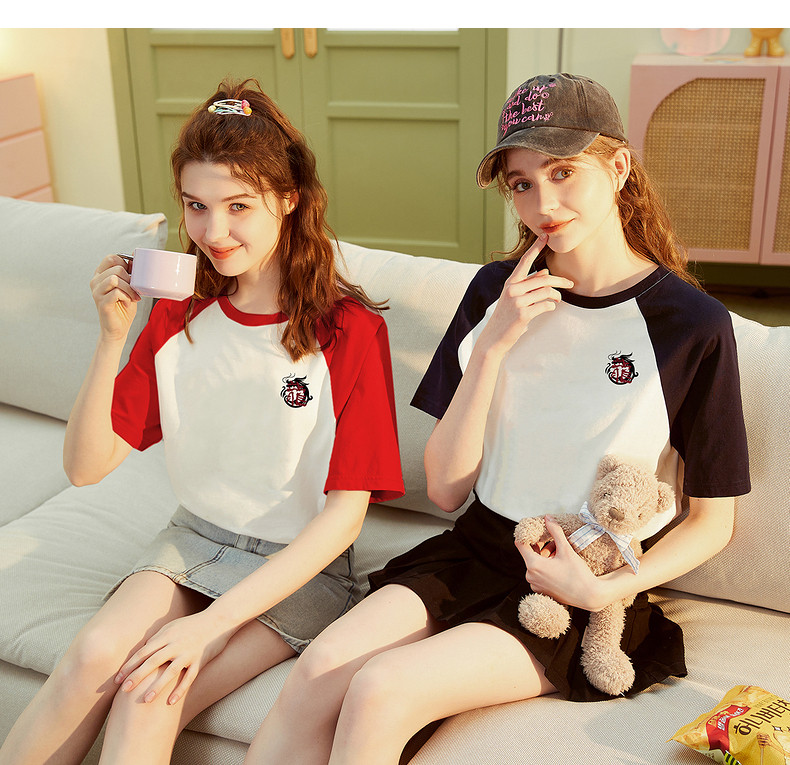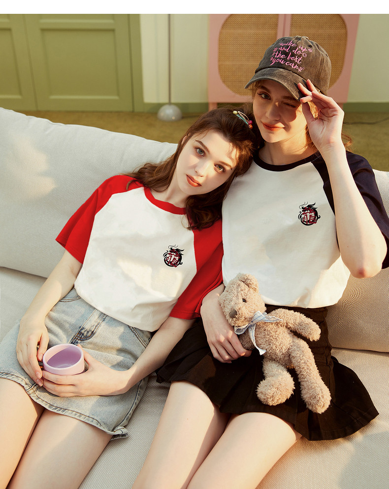 唐狮新年龙年短袖T恤女2024新款春夏季圆领插肩袖复古红色上衣sz