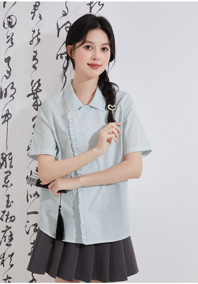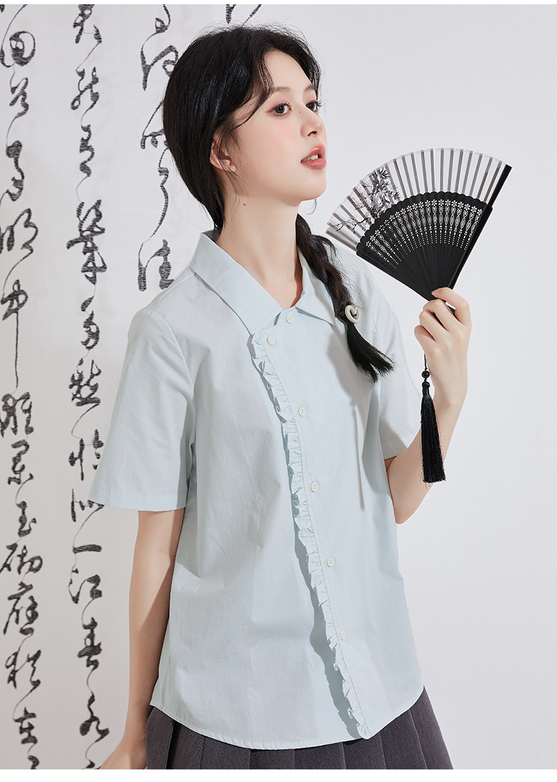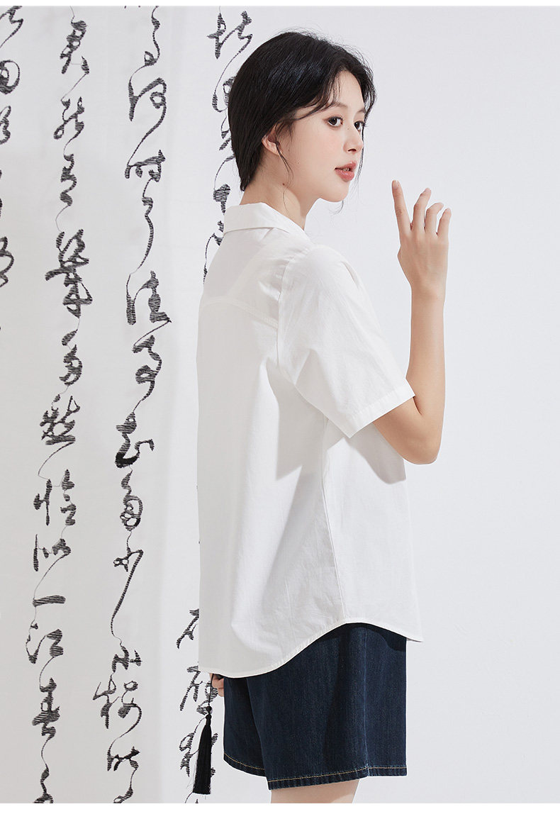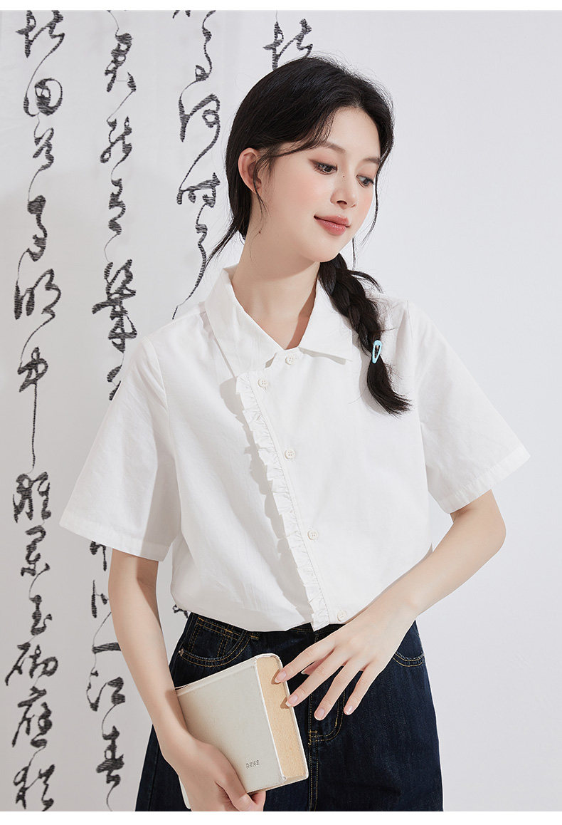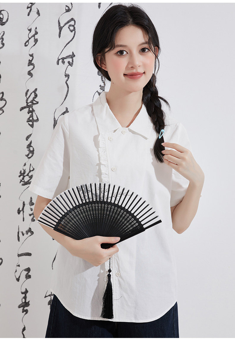 唐狮2024春夏新款国风短袖衬衫女中式改良斜襟衬衣小衫白色百搭