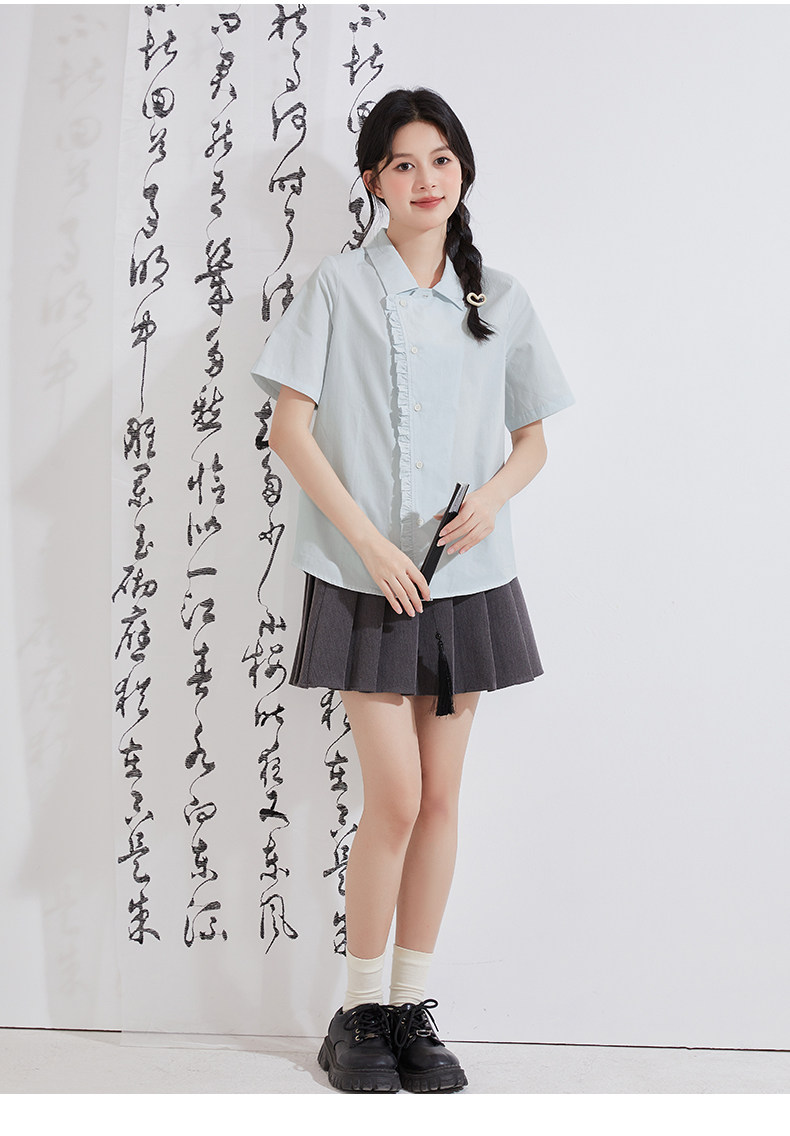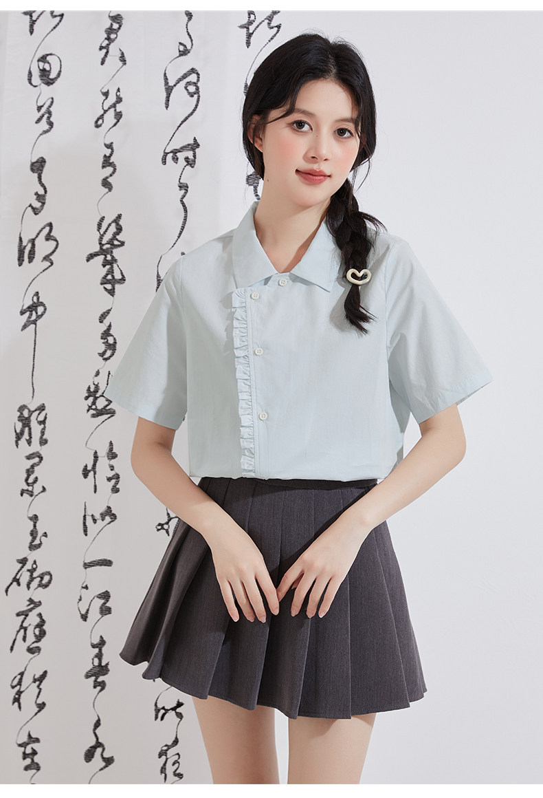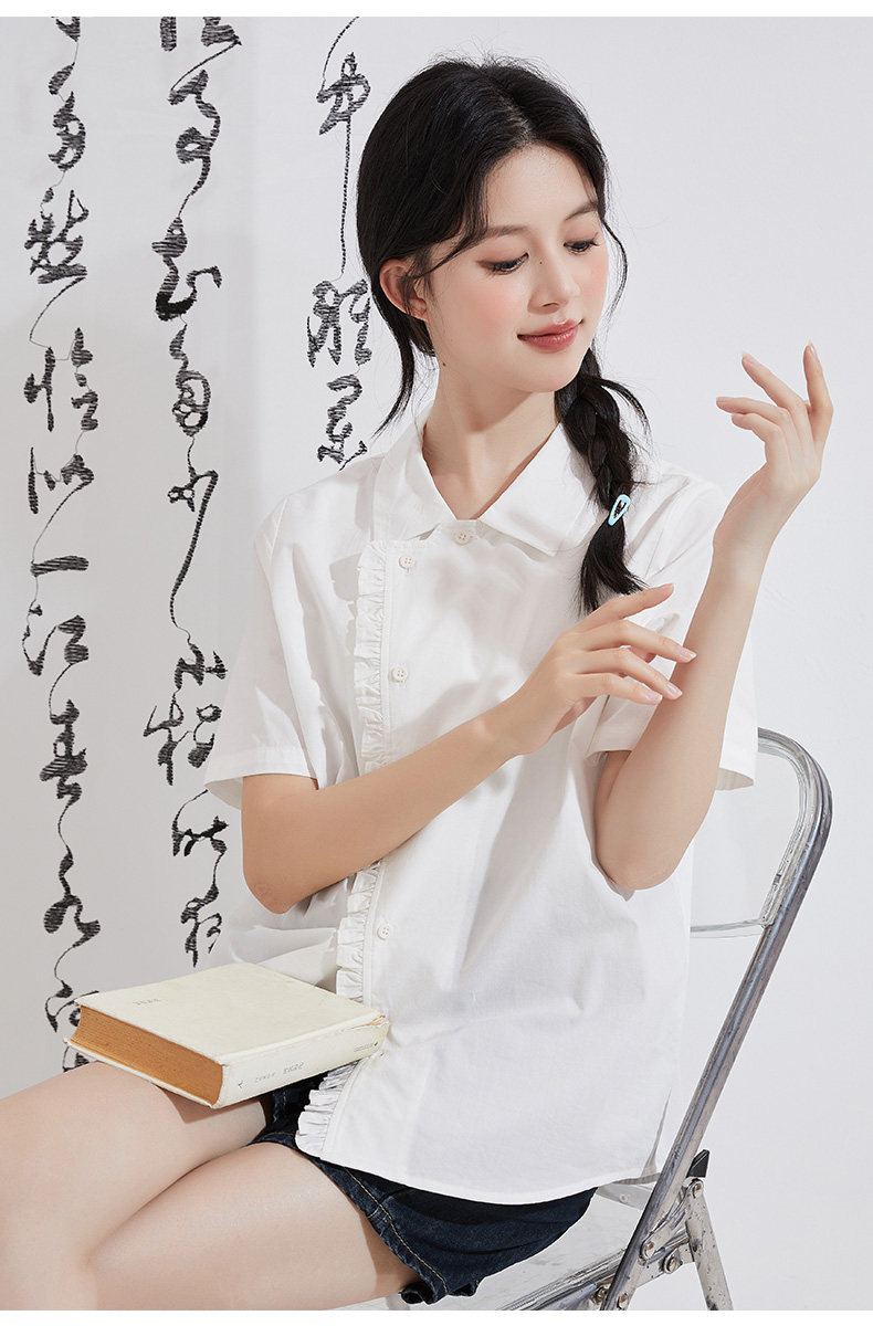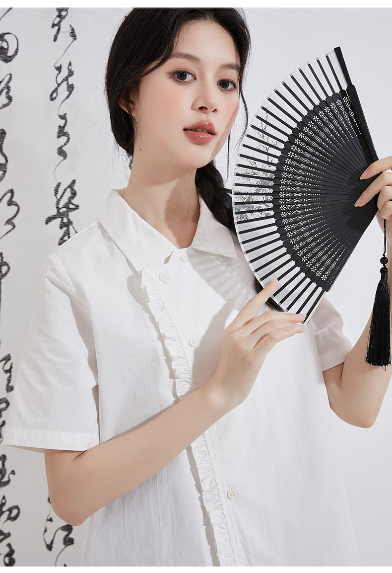 唐狮2024春夏新款国风短袖衬衫女中式改良斜襟衬衣小衫白色百搭