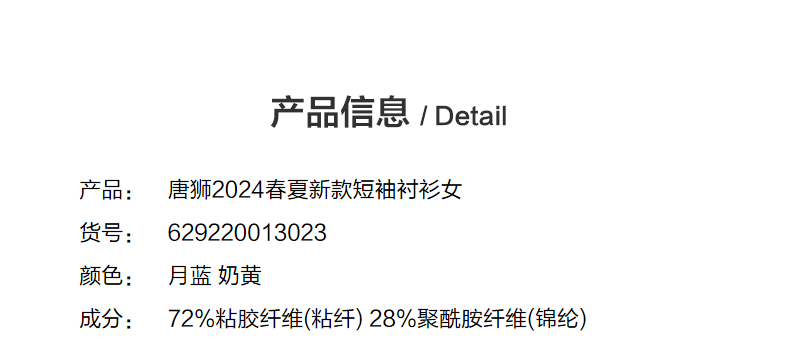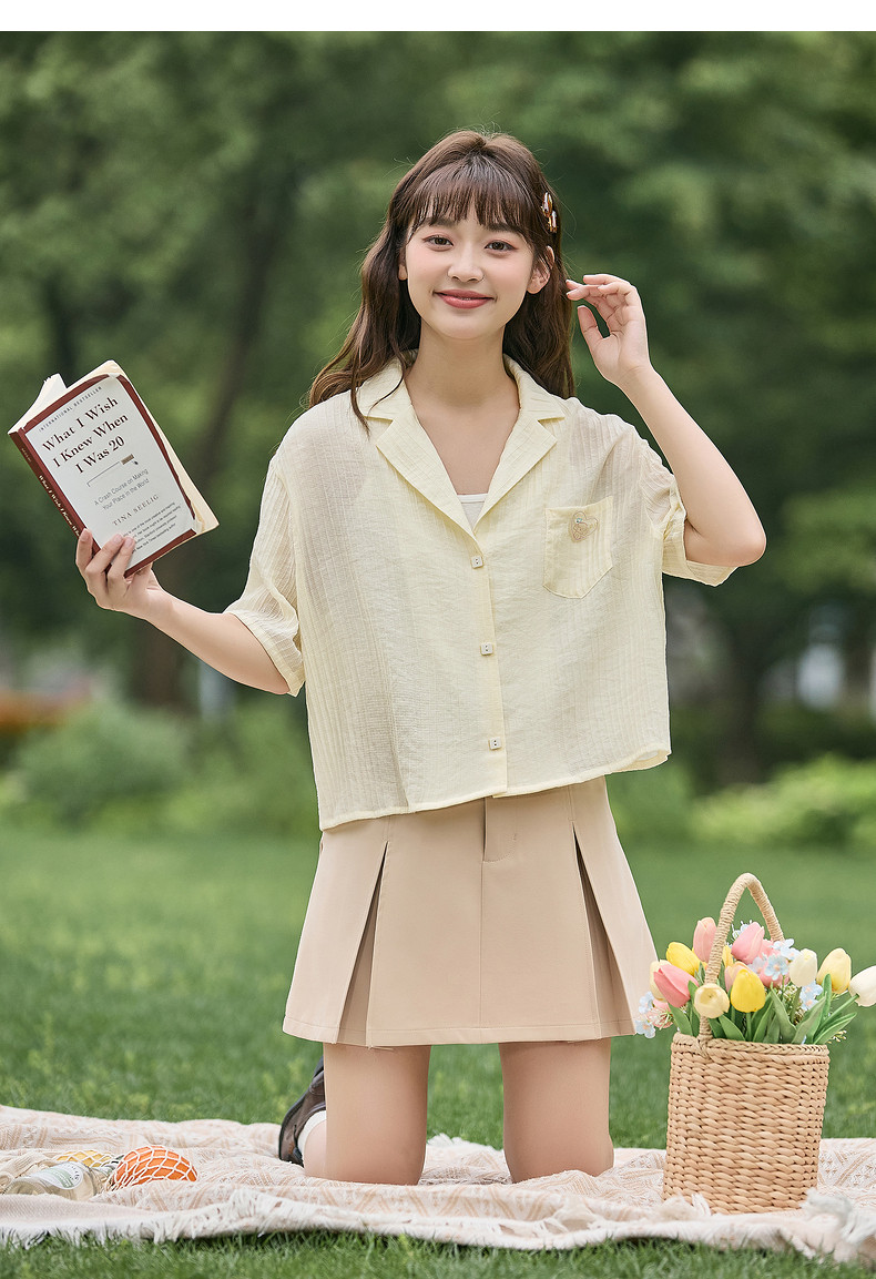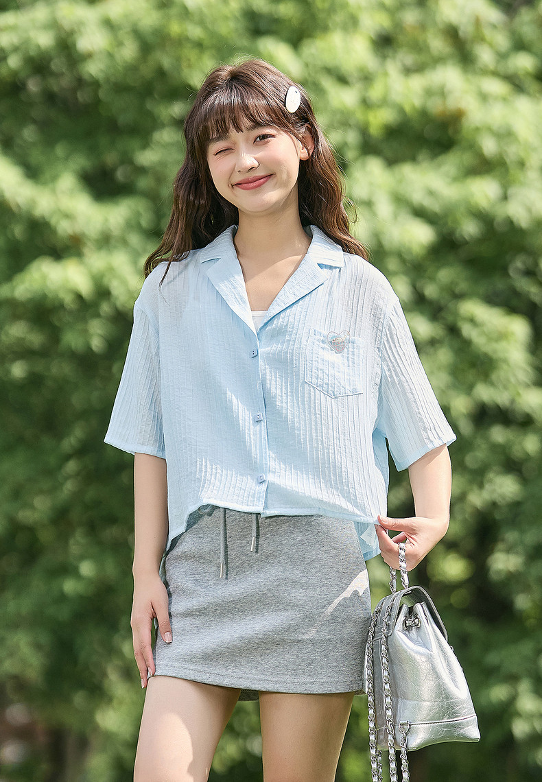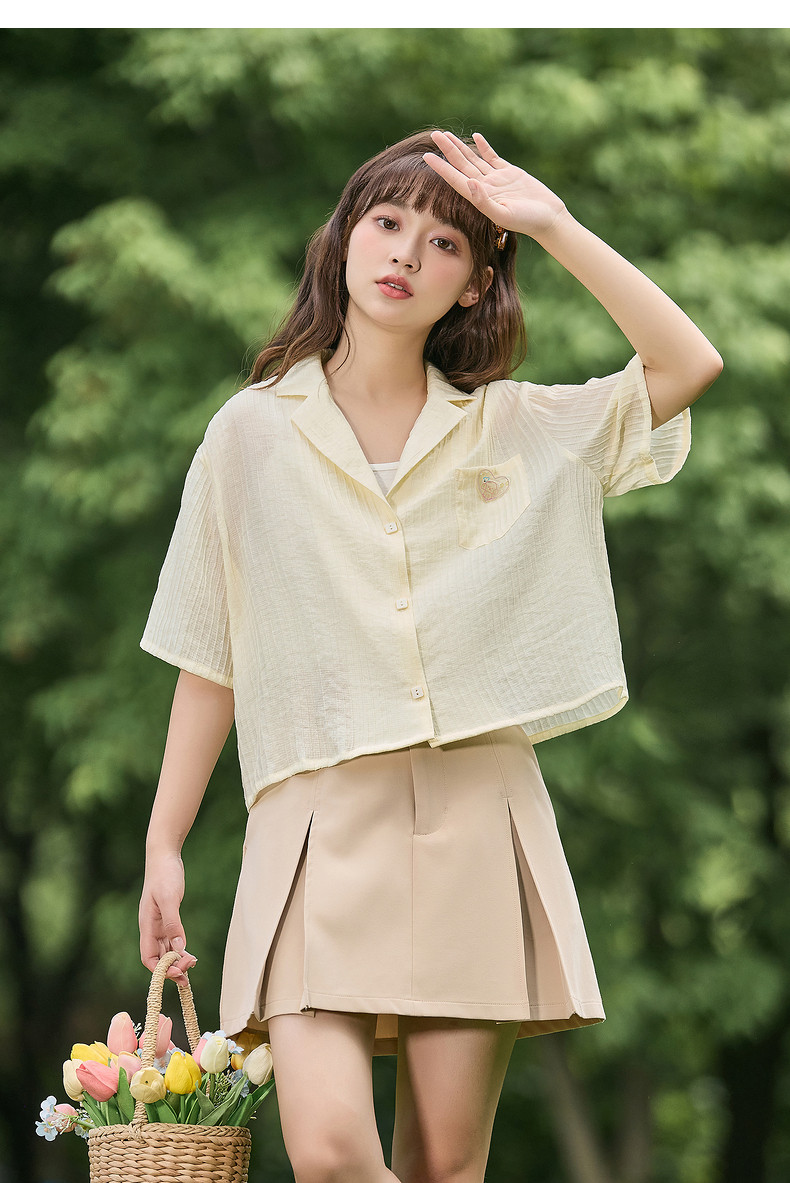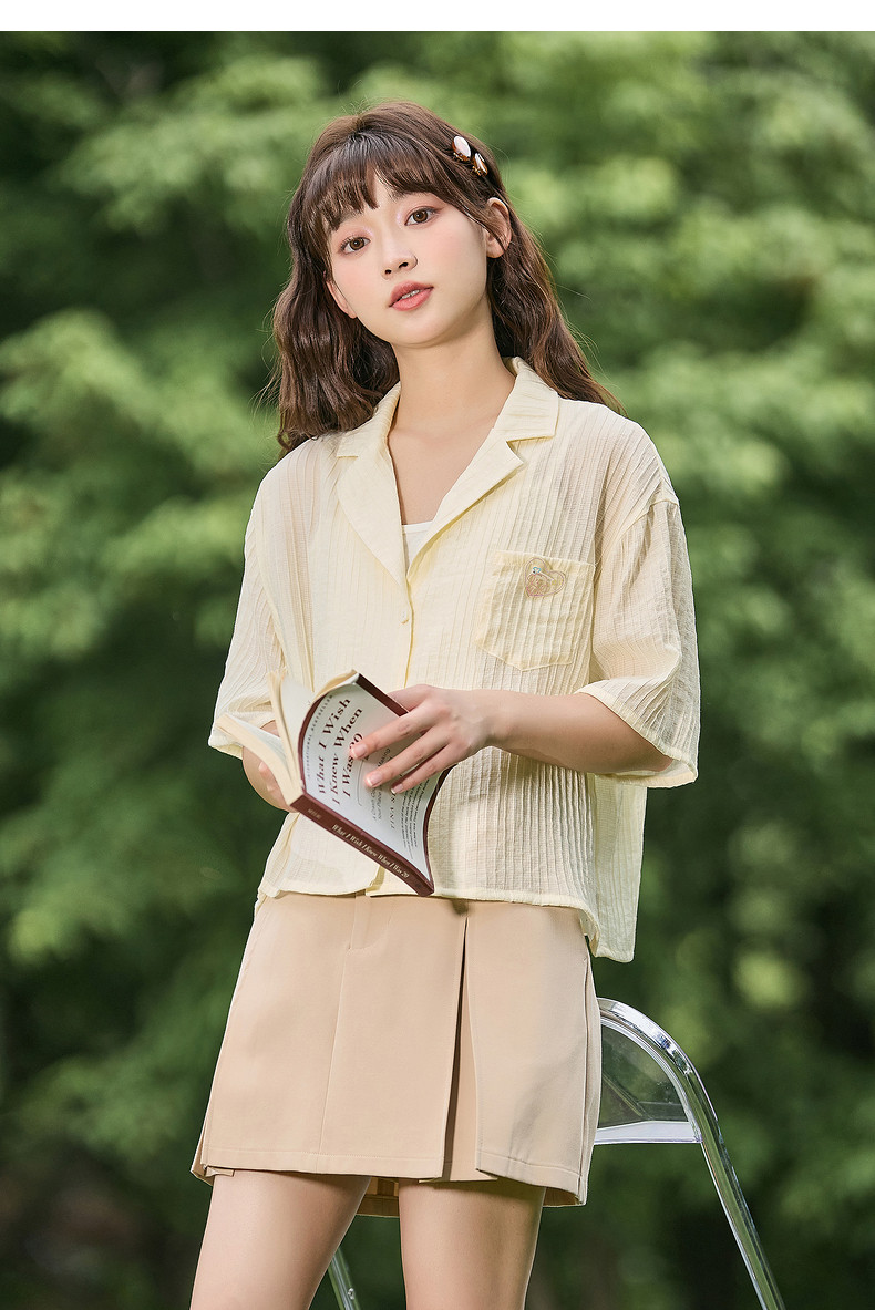 唐狮2024春夏新款短袖衬衫女肌理感轻薄短款衬衣宽松开衫正肩上衣
