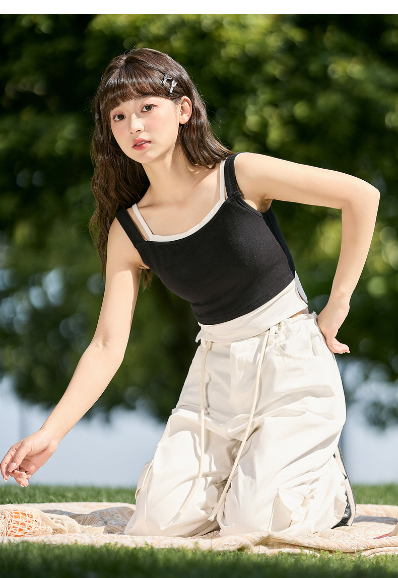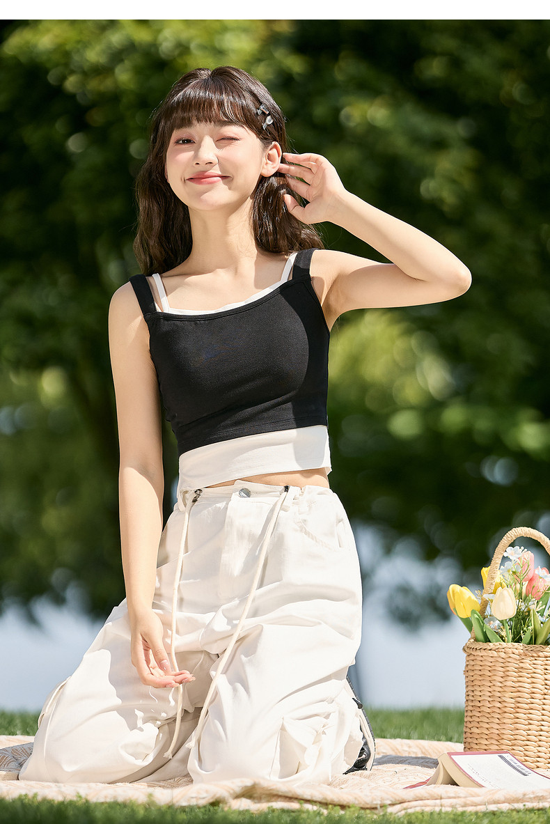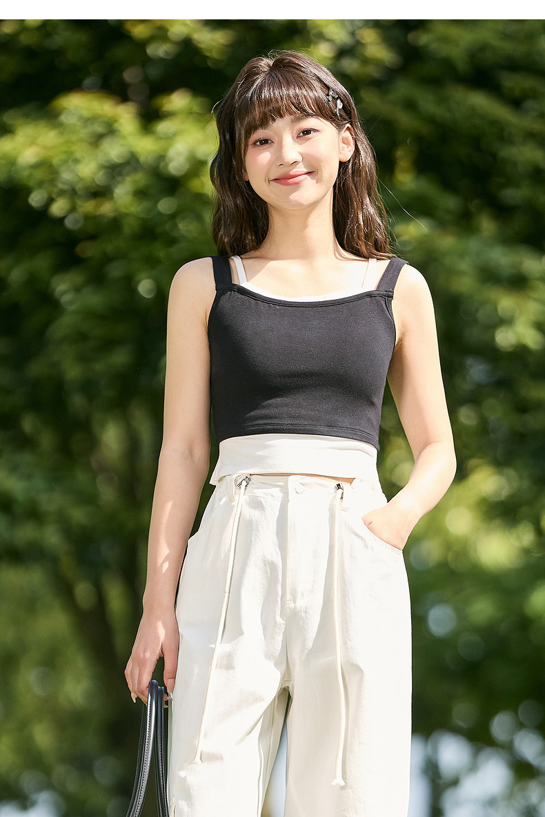 唐狮2024夏季新款打底背心女士针织假两件小吊带内搭黑色美背外穿