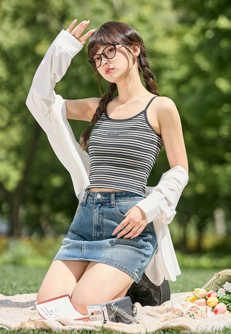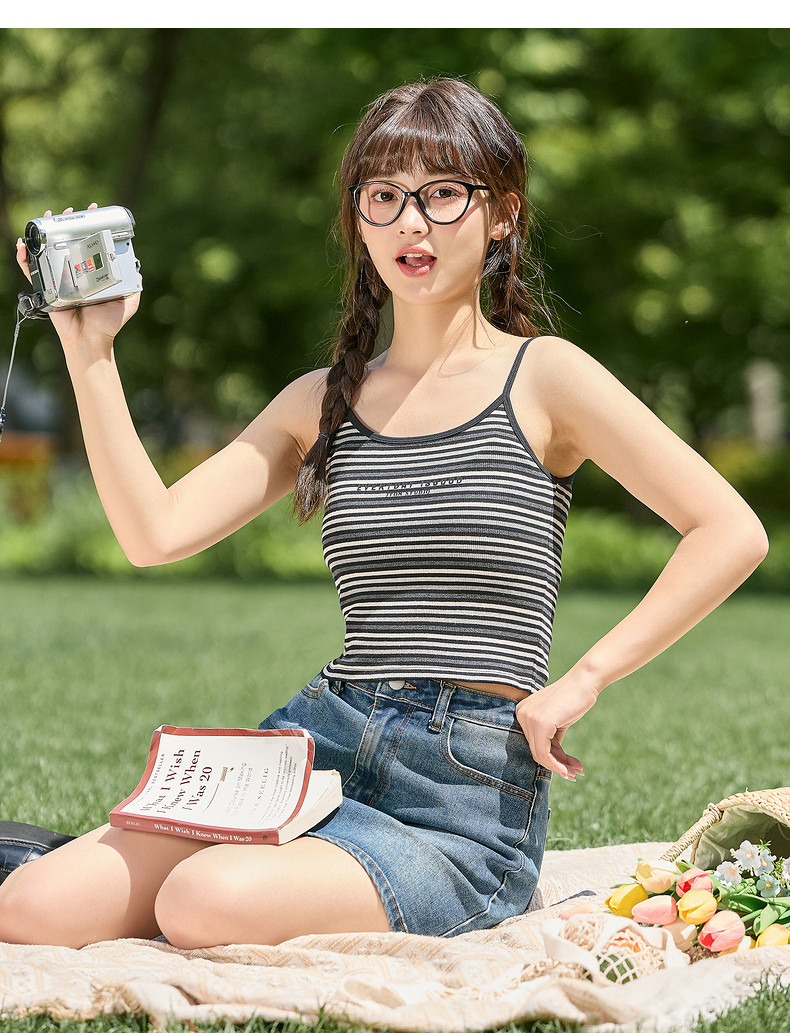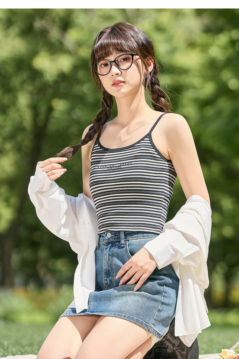 唐狮2024夏季新款吊带背心女士针织内百搭条纹打底小背心外穿美背