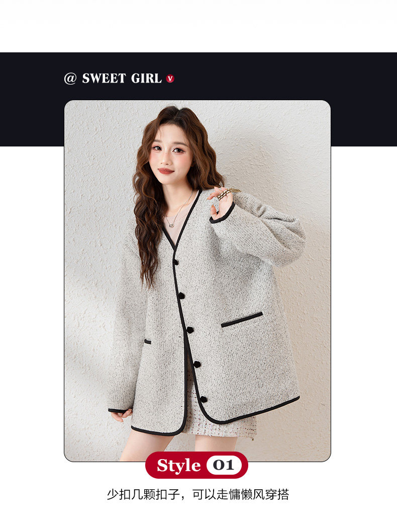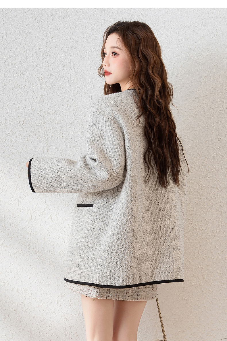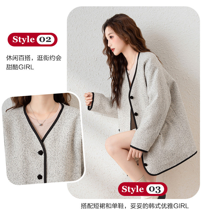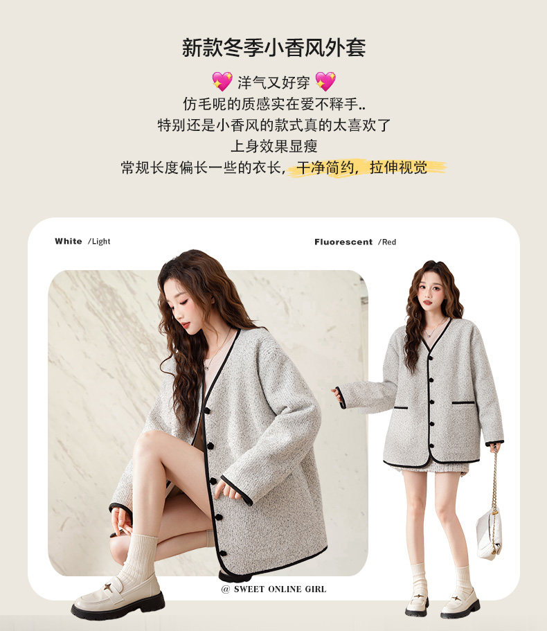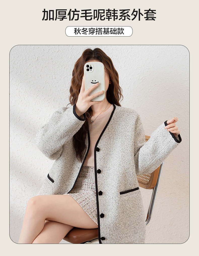 唐狮2024新款冬季小香风外套加厚仿毛呢上衣宽松气质温柔穿搭韩系