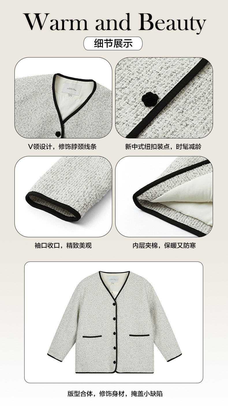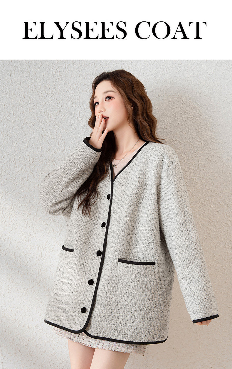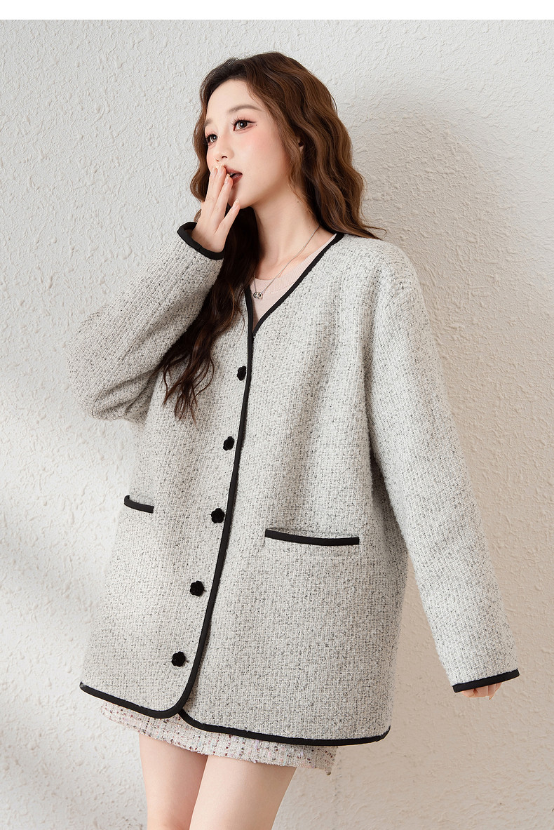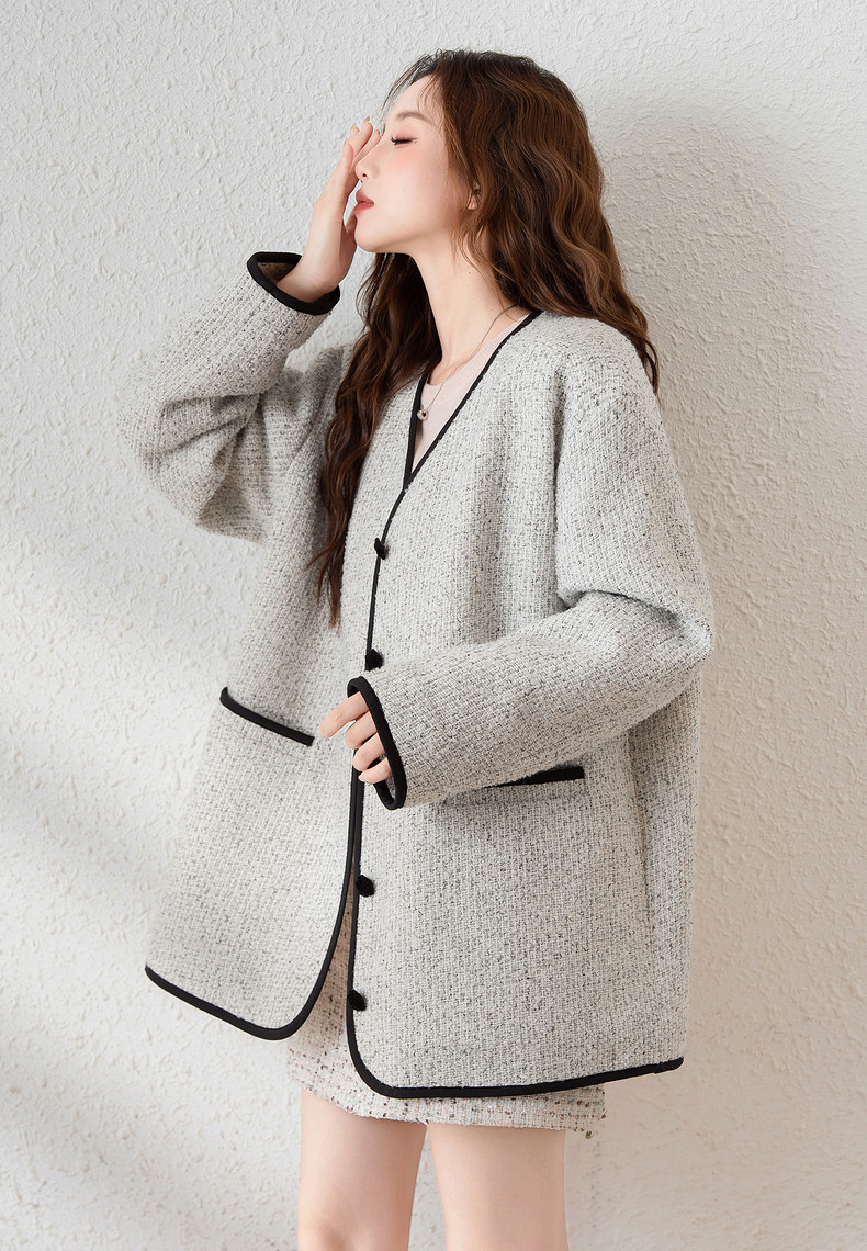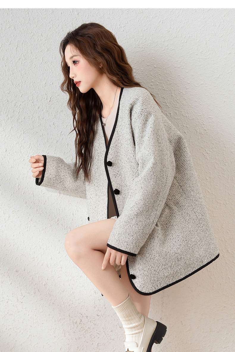 唐狮2024新款冬季小香风外套加厚仿毛呢上衣宽松气质温柔穿搭韩系