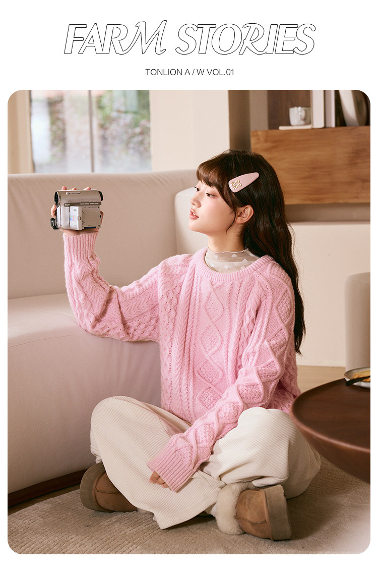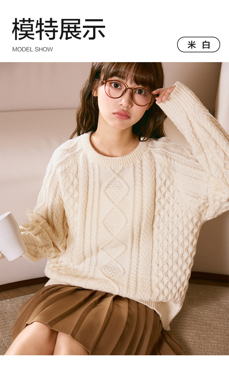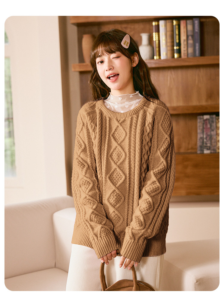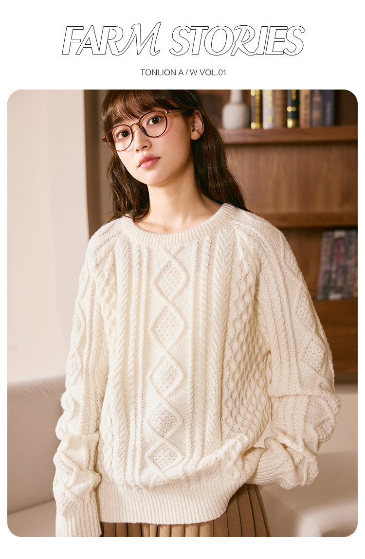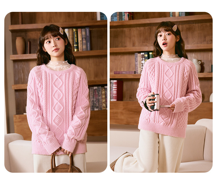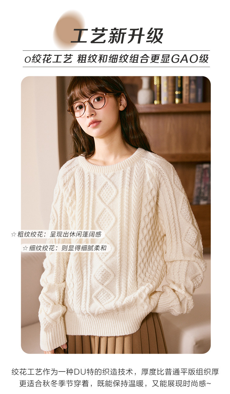 唐狮绞花毛衣女2024新款日系慵懒高级感毛线衫冬季软糯内搭上衣