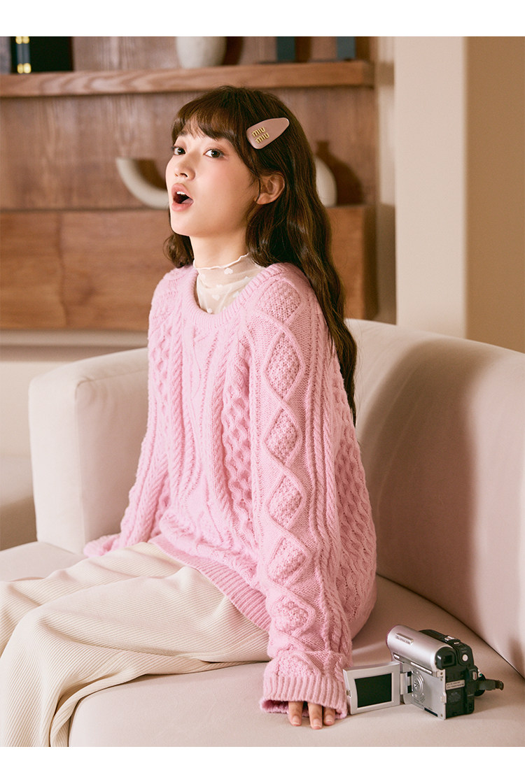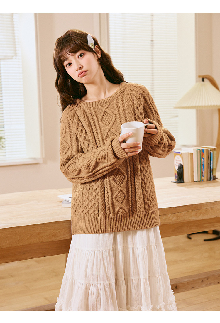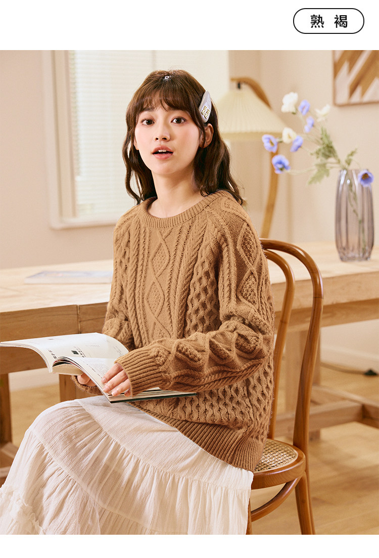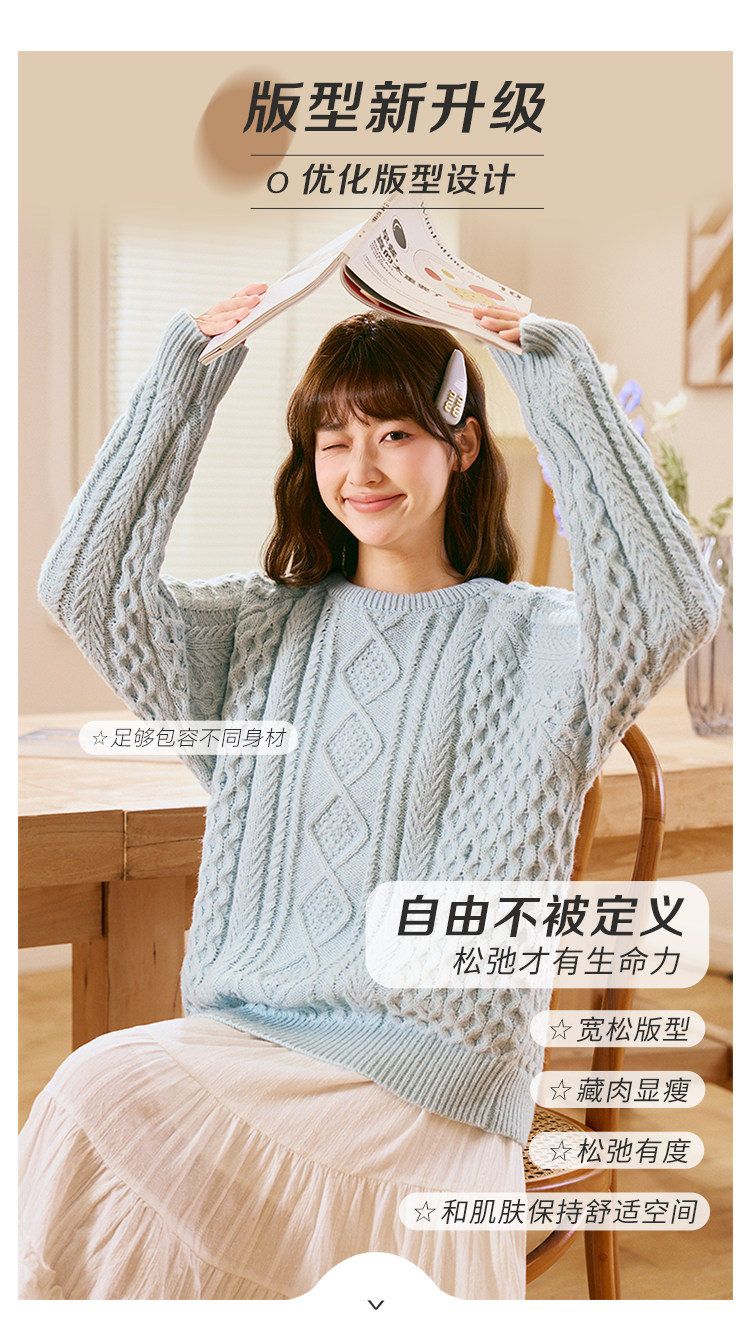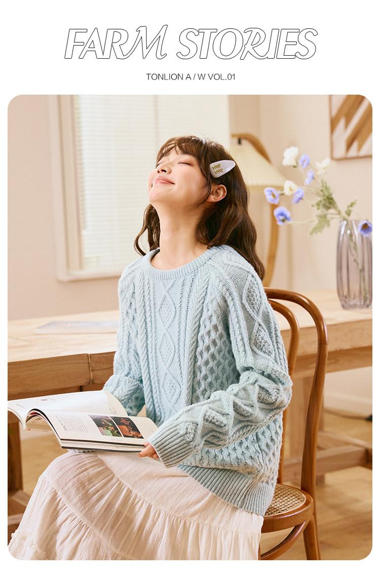 唐狮绞花毛衣女2024新款日系慵懒高级感毛线衫冬季软糯内搭上衣