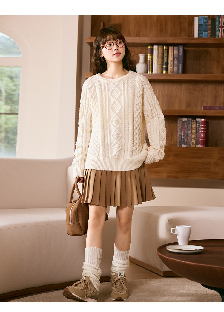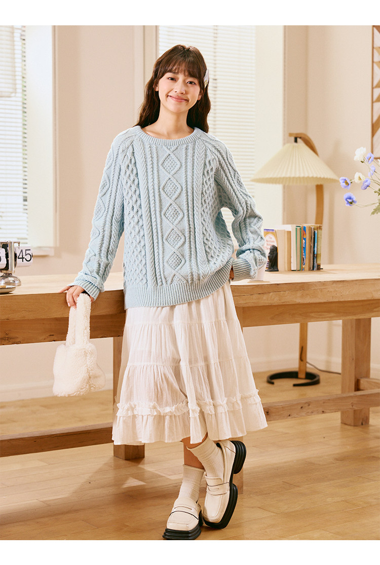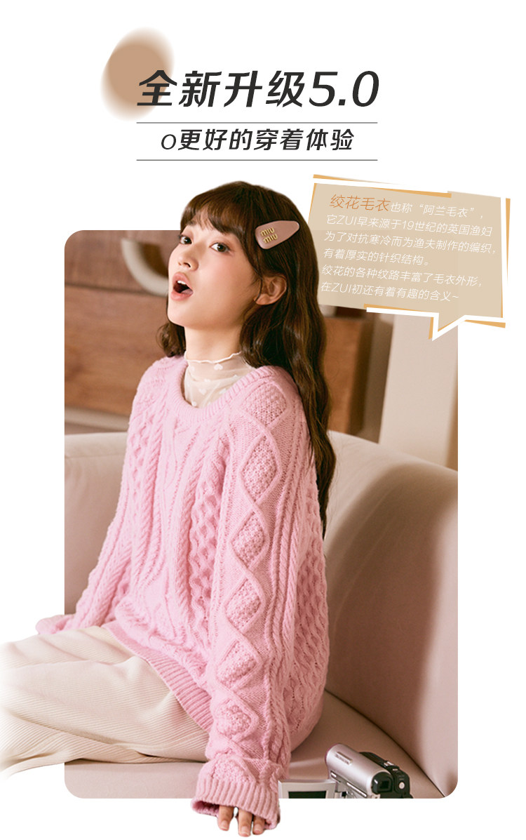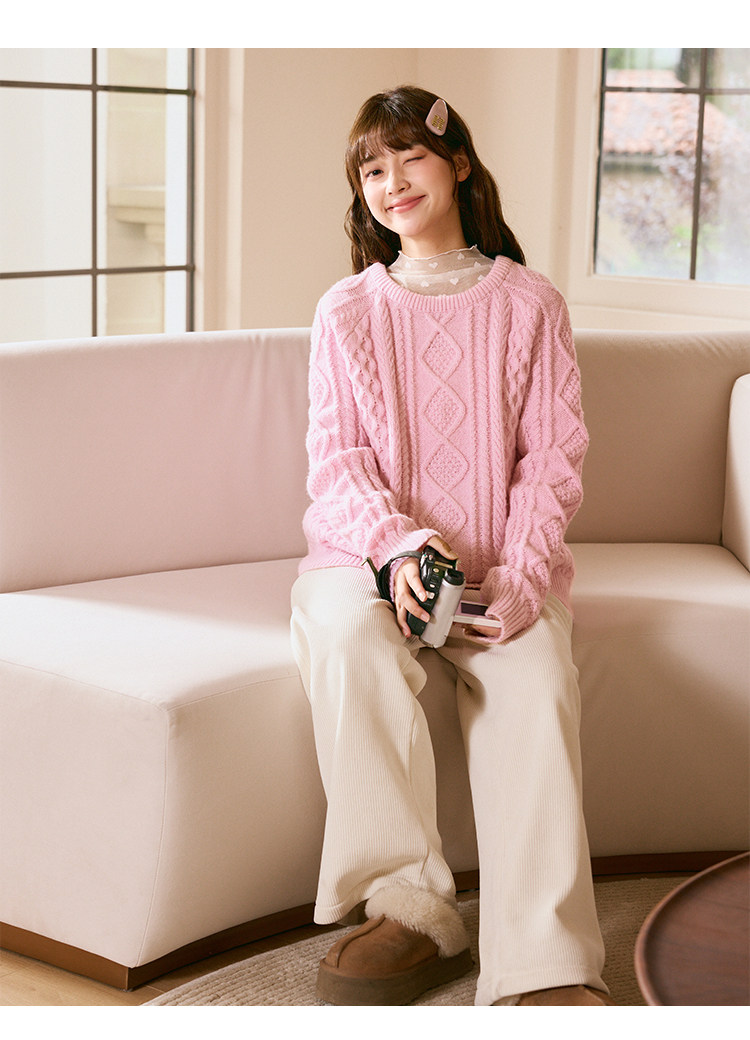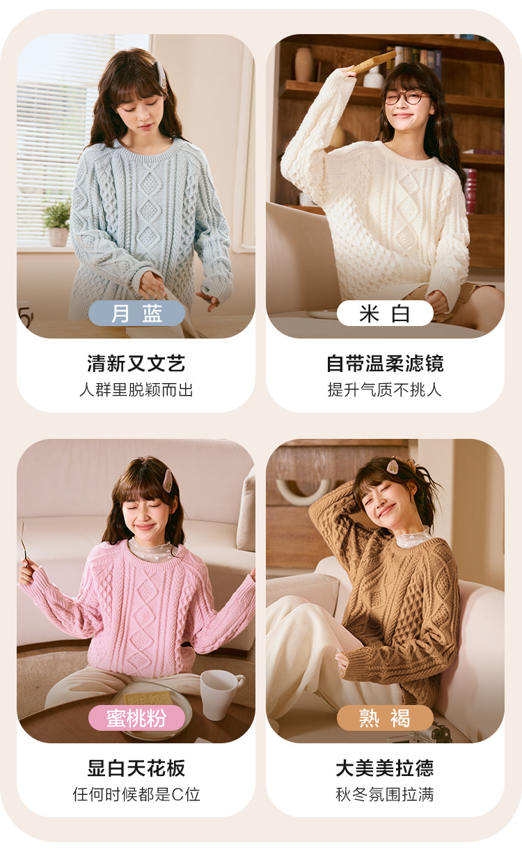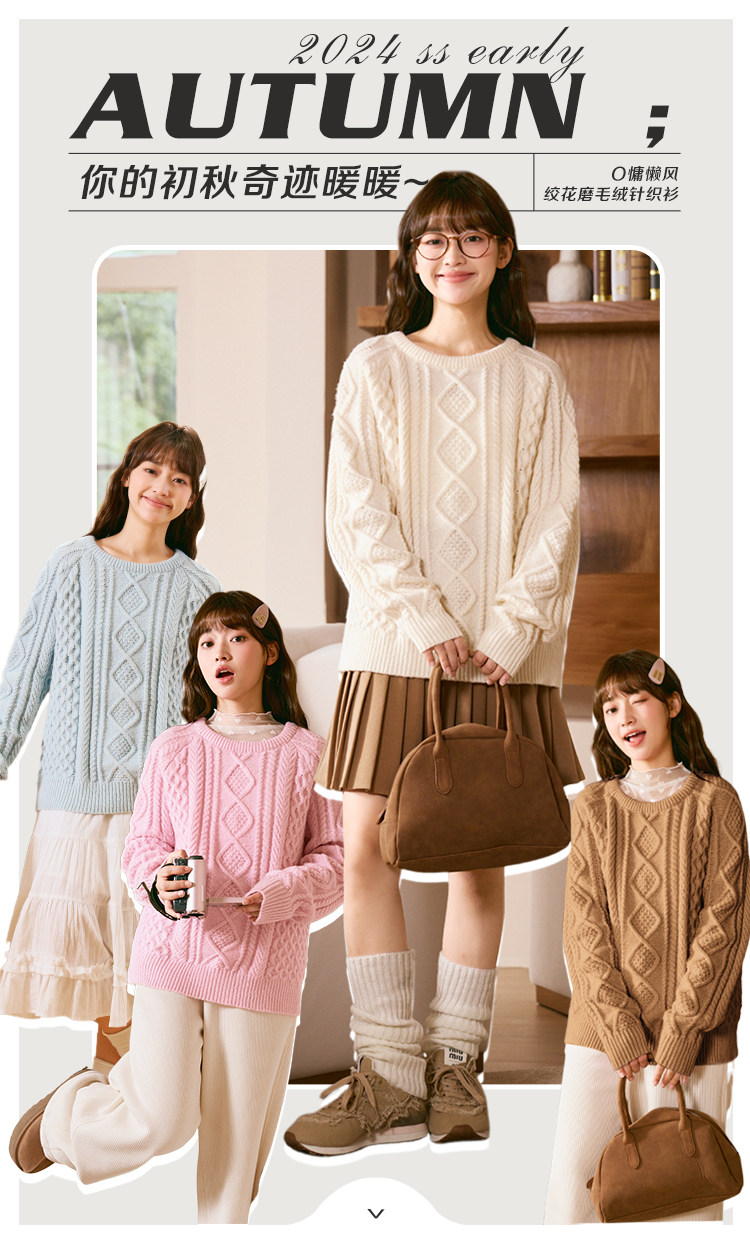 唐狮绞花毛衣女2024新款日系慵懒高级感毛线衫冬季软糯内搭上衣