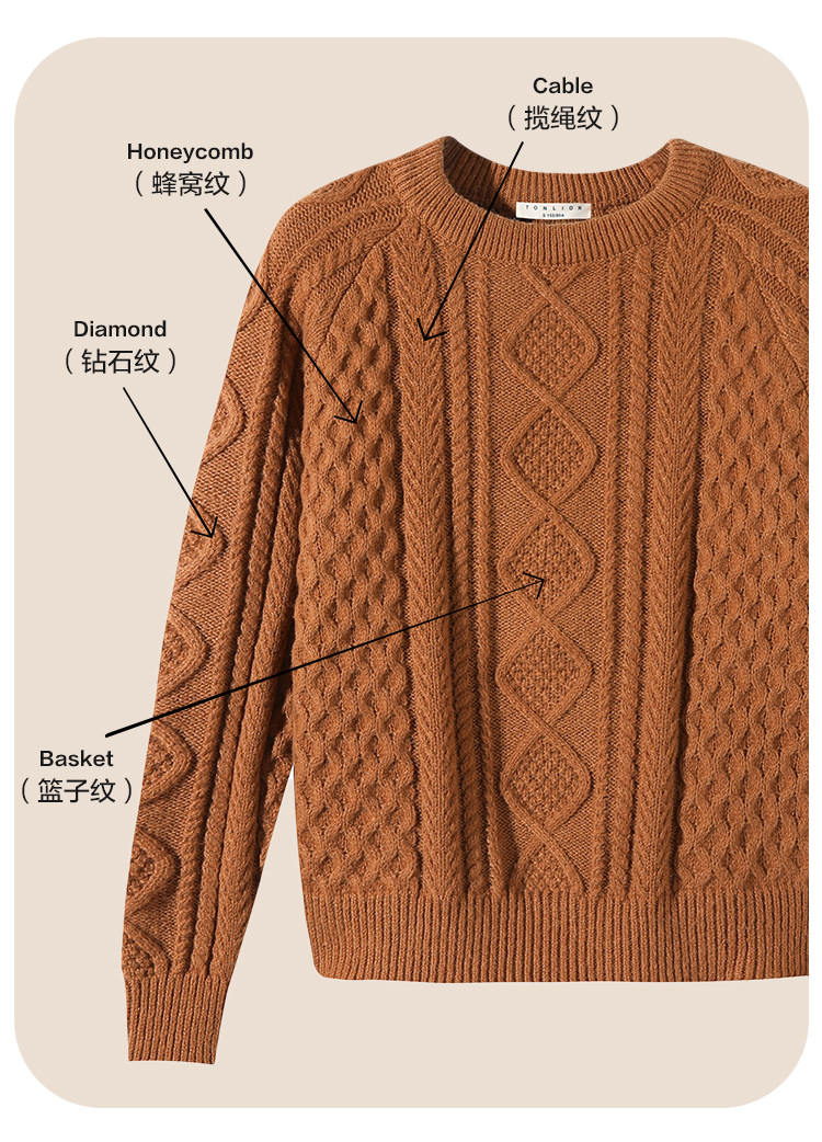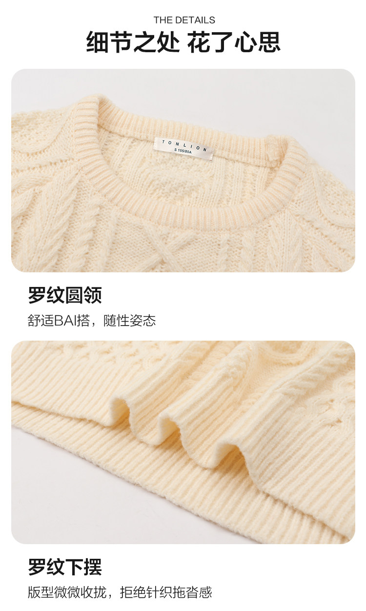 唐狮2026秋冬季新款圆领毛衣男款套头绞花毛线衫慵懒风宽松毛线衫