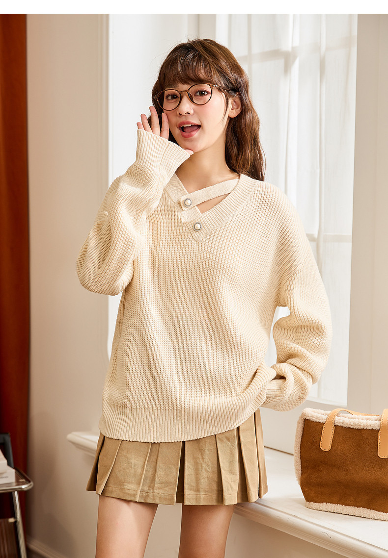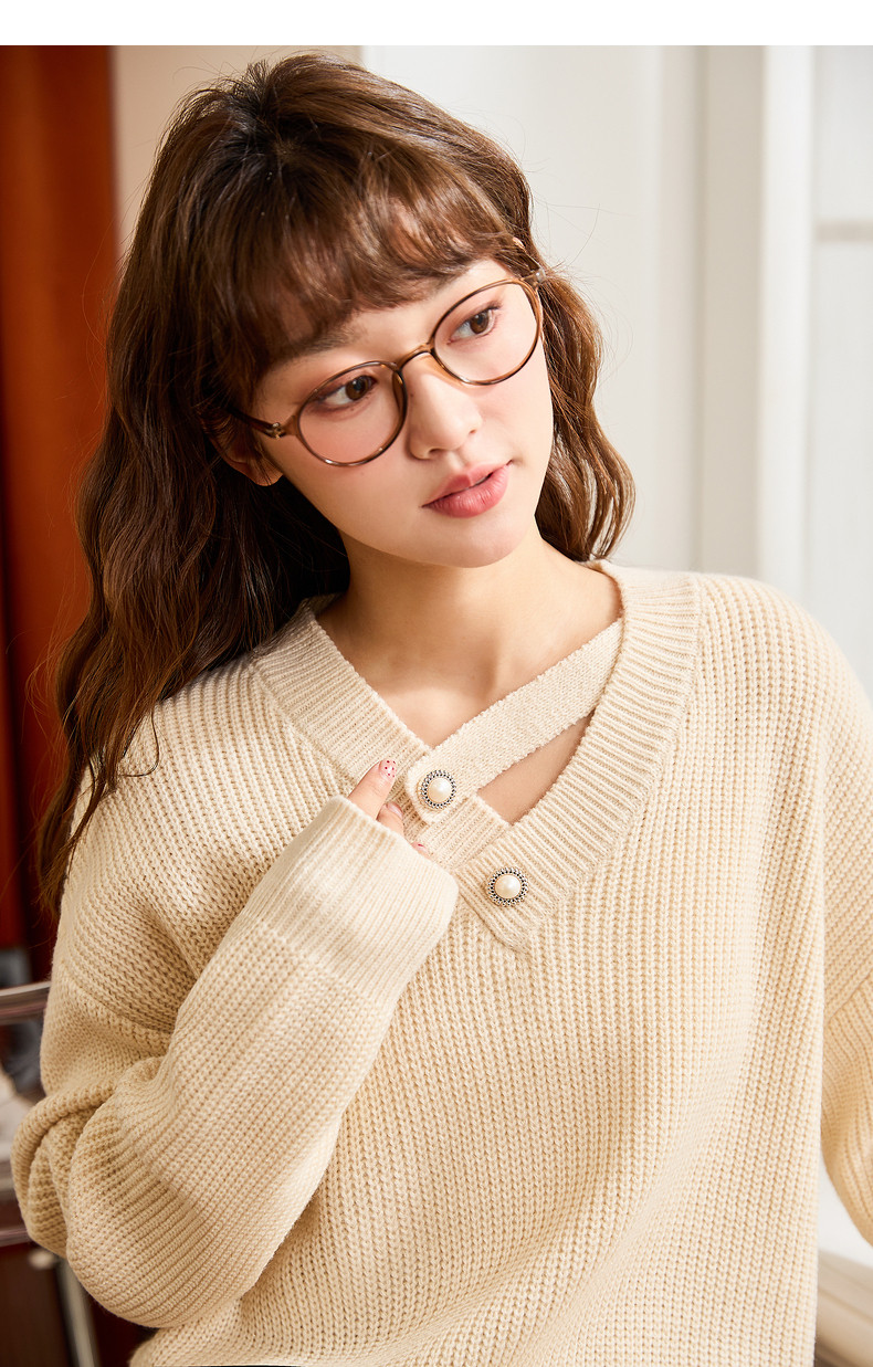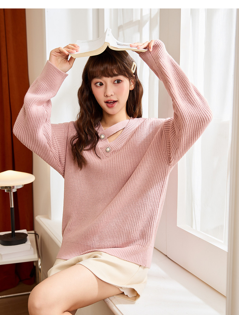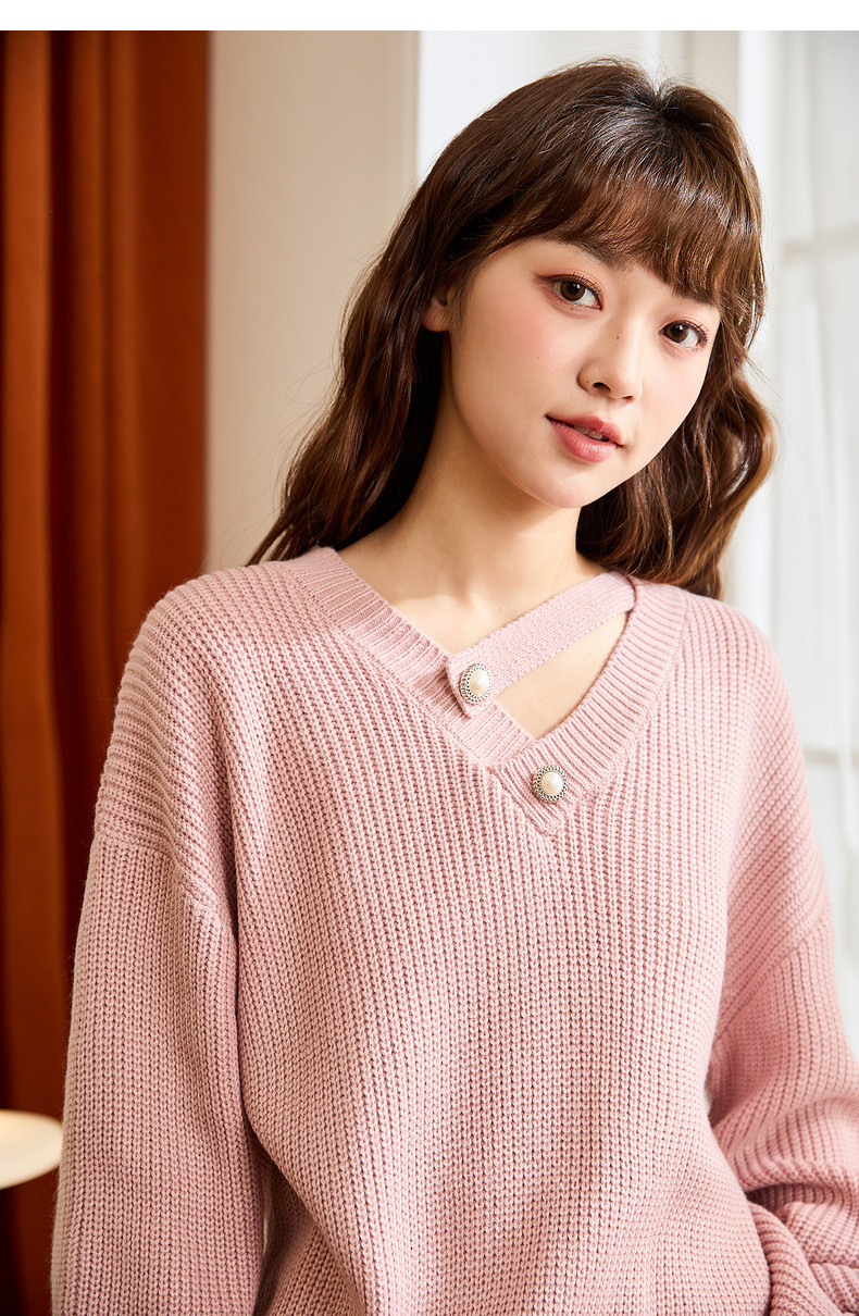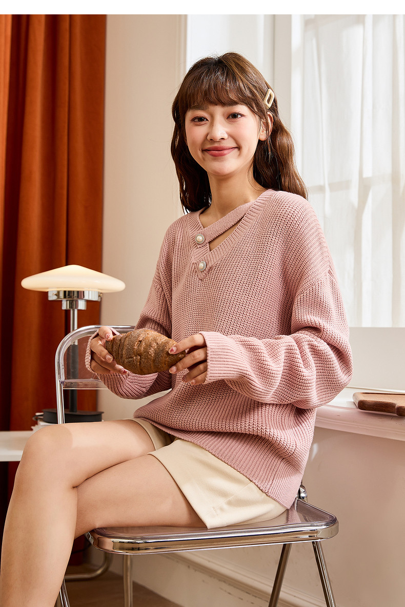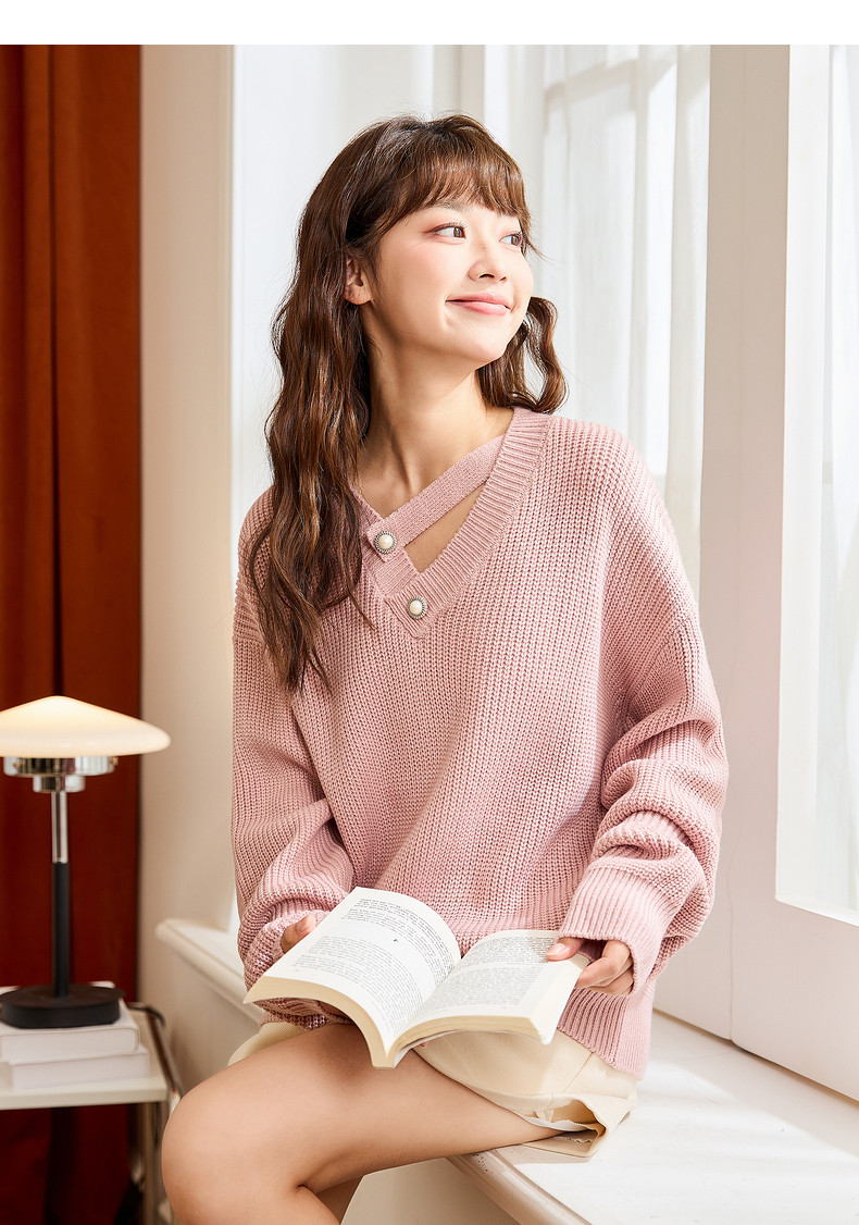 唐狮2024新款秋冬毛衣女V领镂空慵懒高级感小众设计感毛针织衫