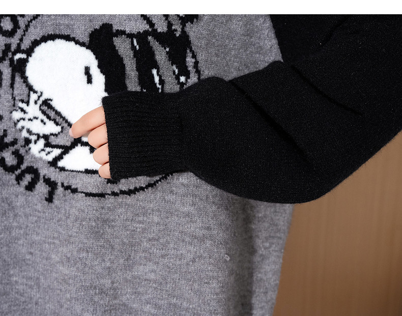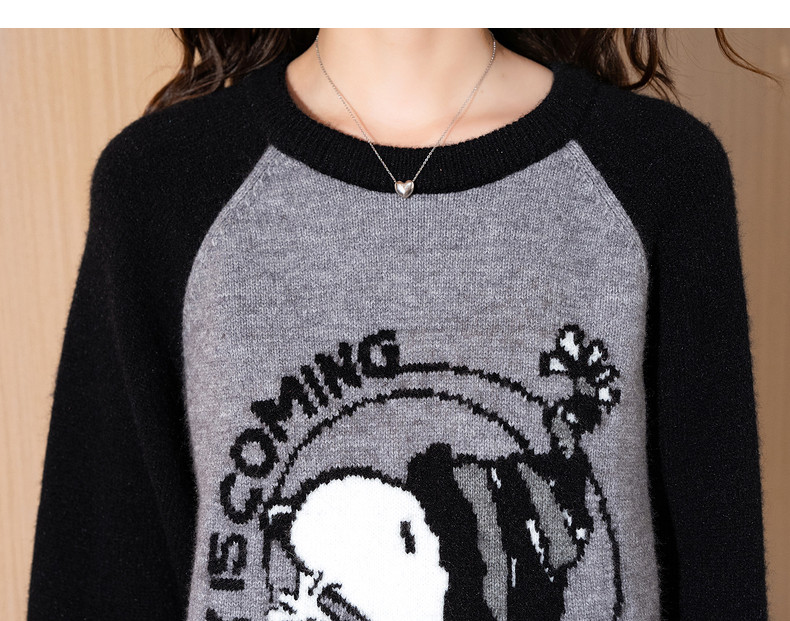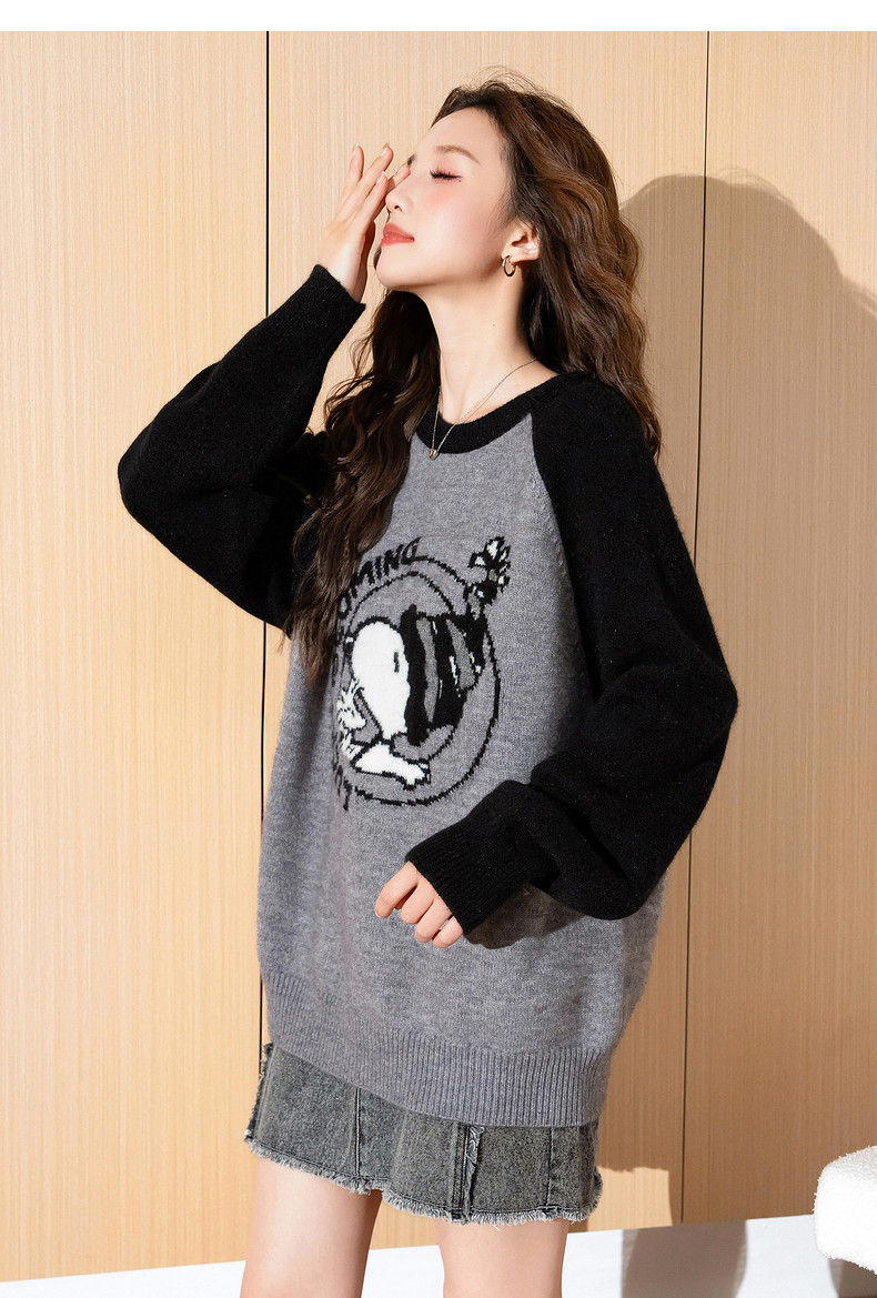 【史努比联名款】唐狮2024新款秋冬女毛衣插肩袖圆领宽松毛线衫