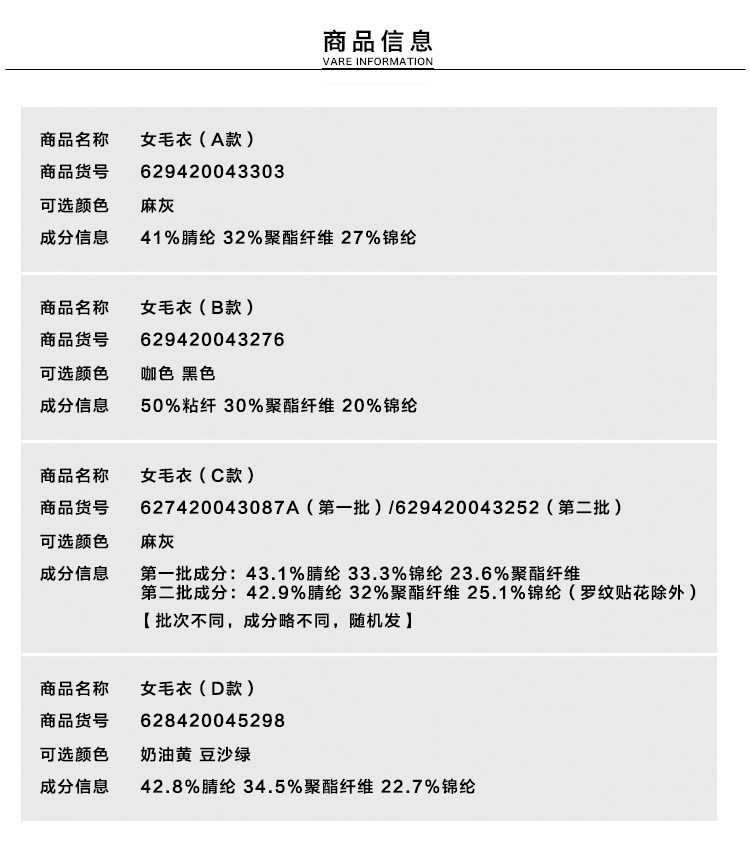 ======A款====== ======B款====== ======C款====== ======D款======