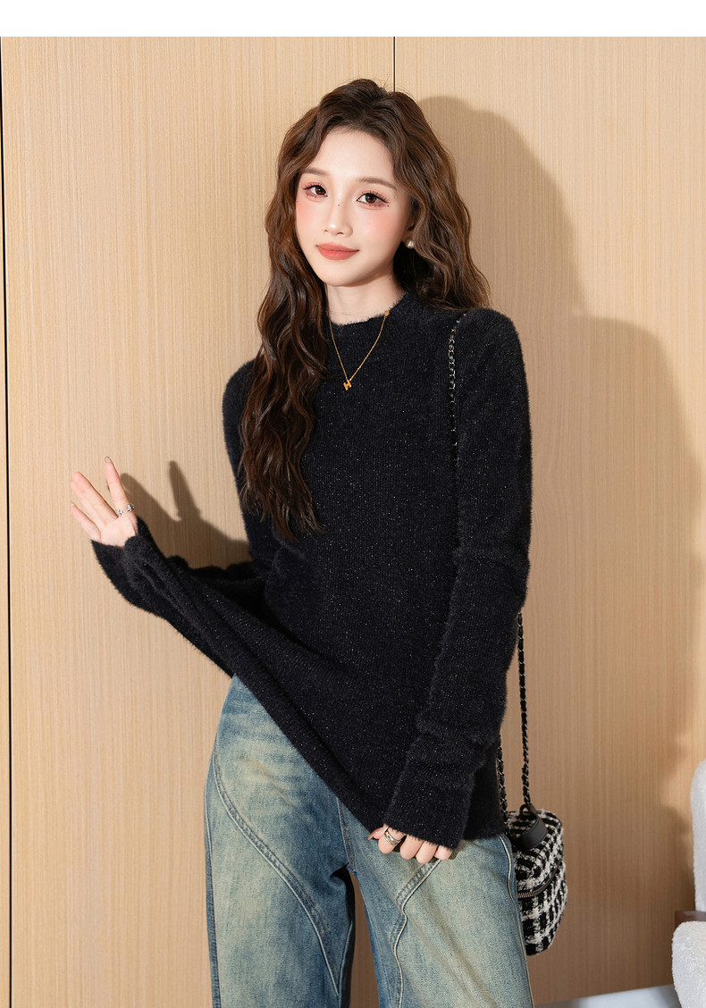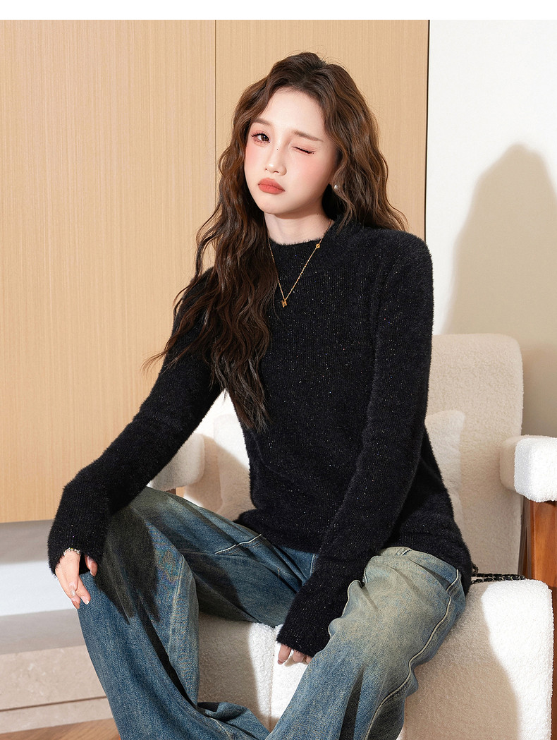 唐狮2024新款秋冬季内搭打底衫女半高领绒感净色毛织衫早秋上衣