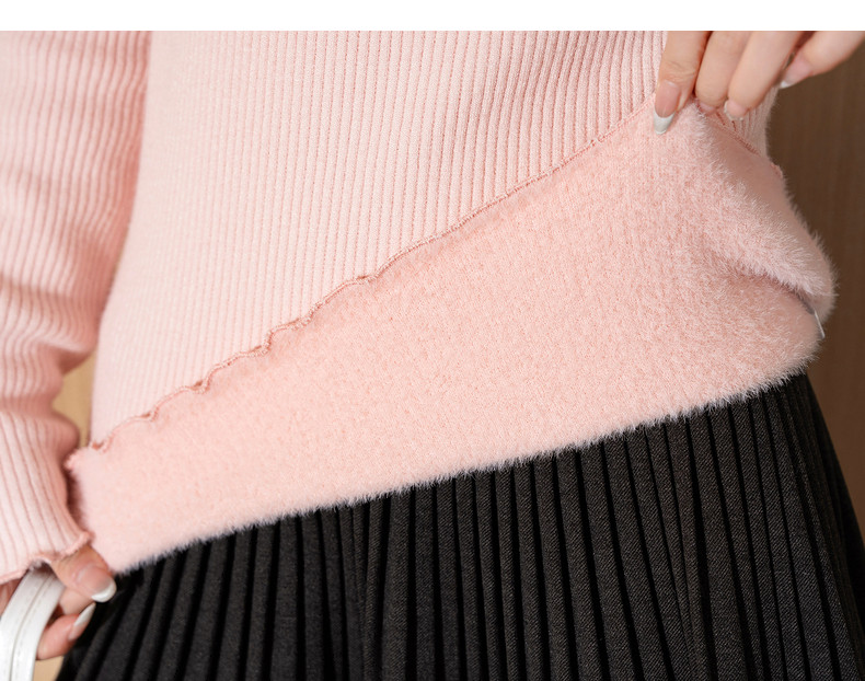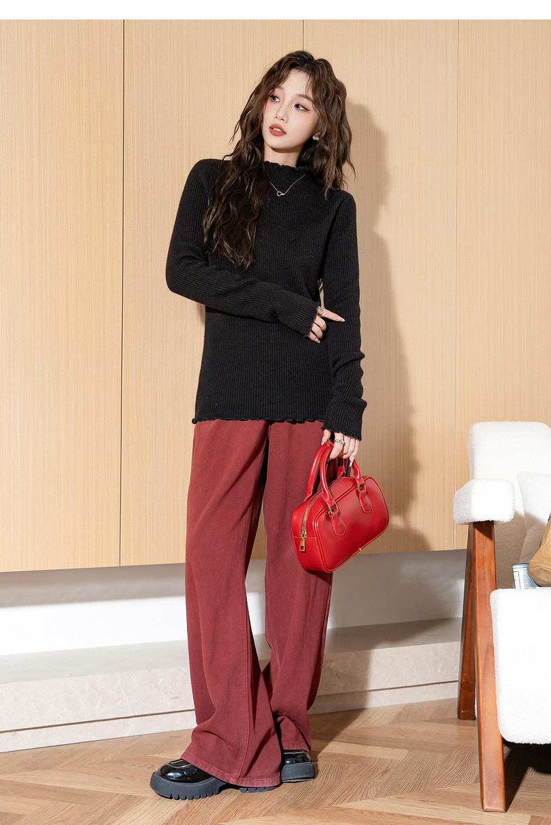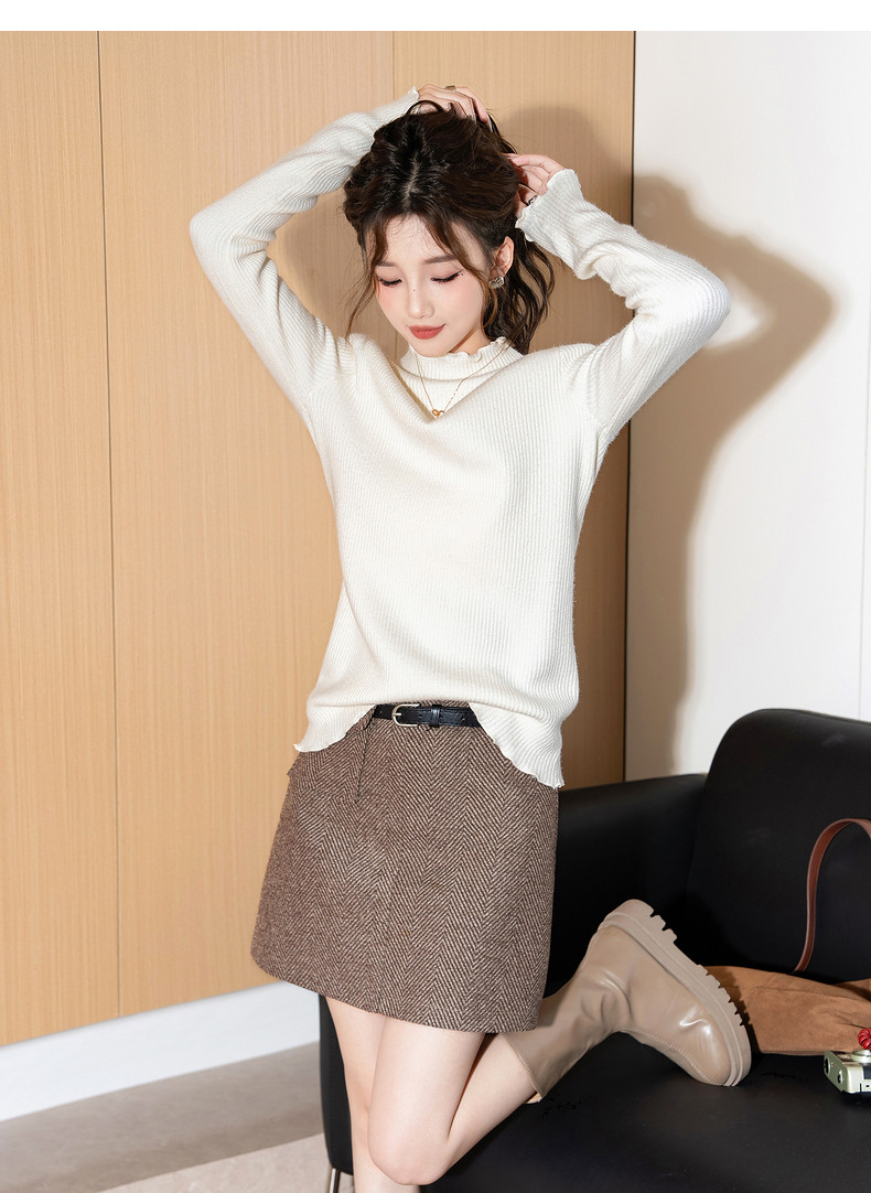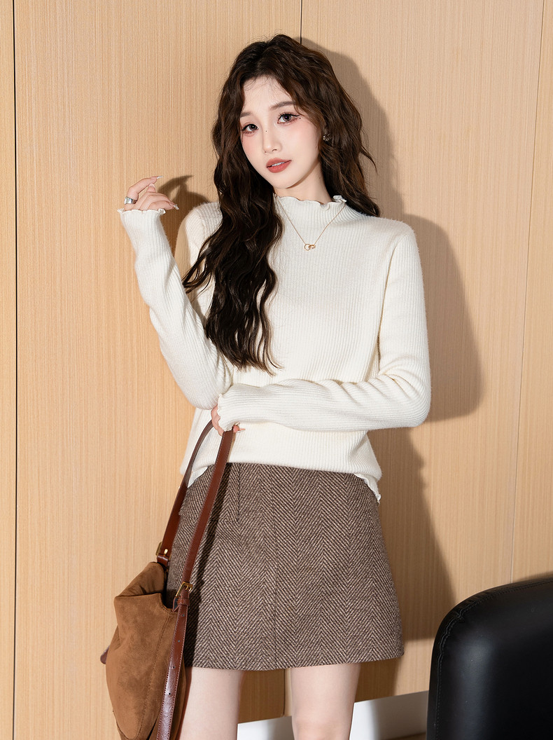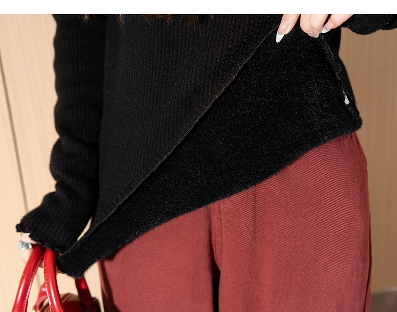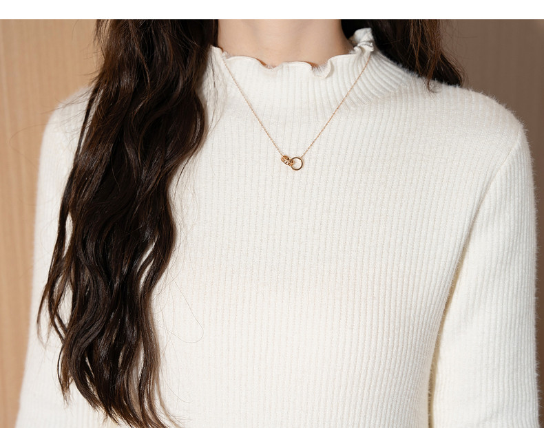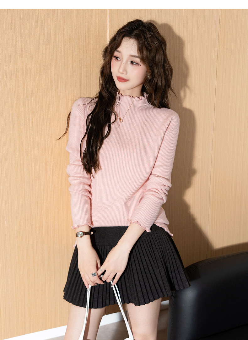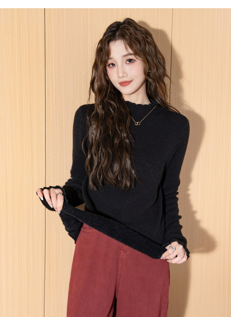 唐狮2024秋冬新款半高领打底衫女木耳领加绒慵懒风高级感百搭毛衣