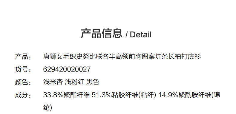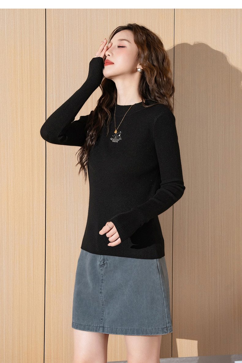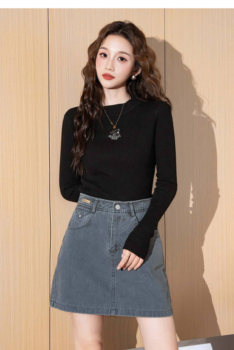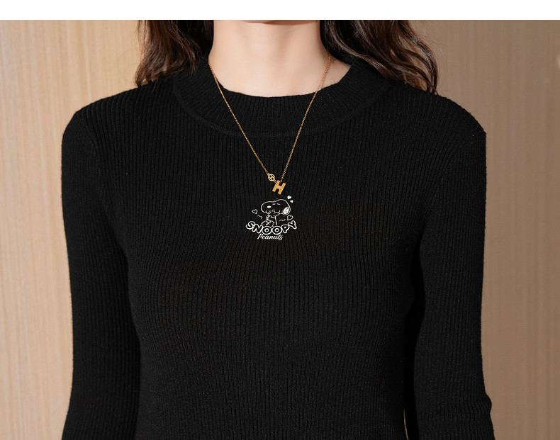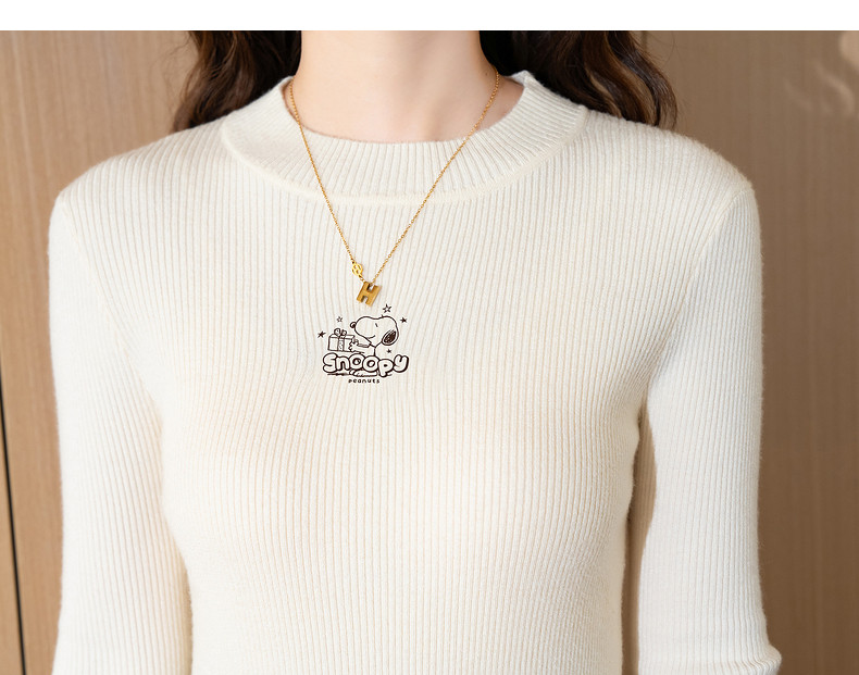 【史努比联名款】唐狮2024秋冬女毛织半高领打底衫净色修身内搭