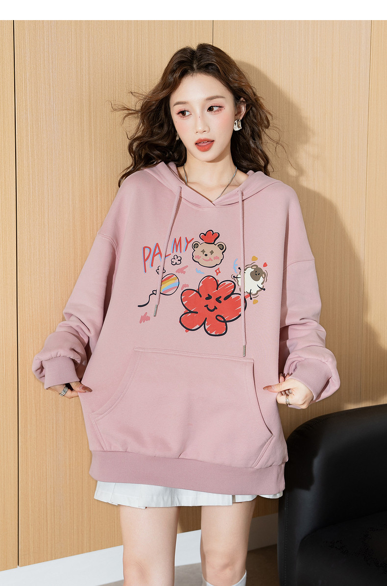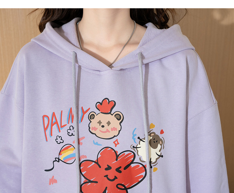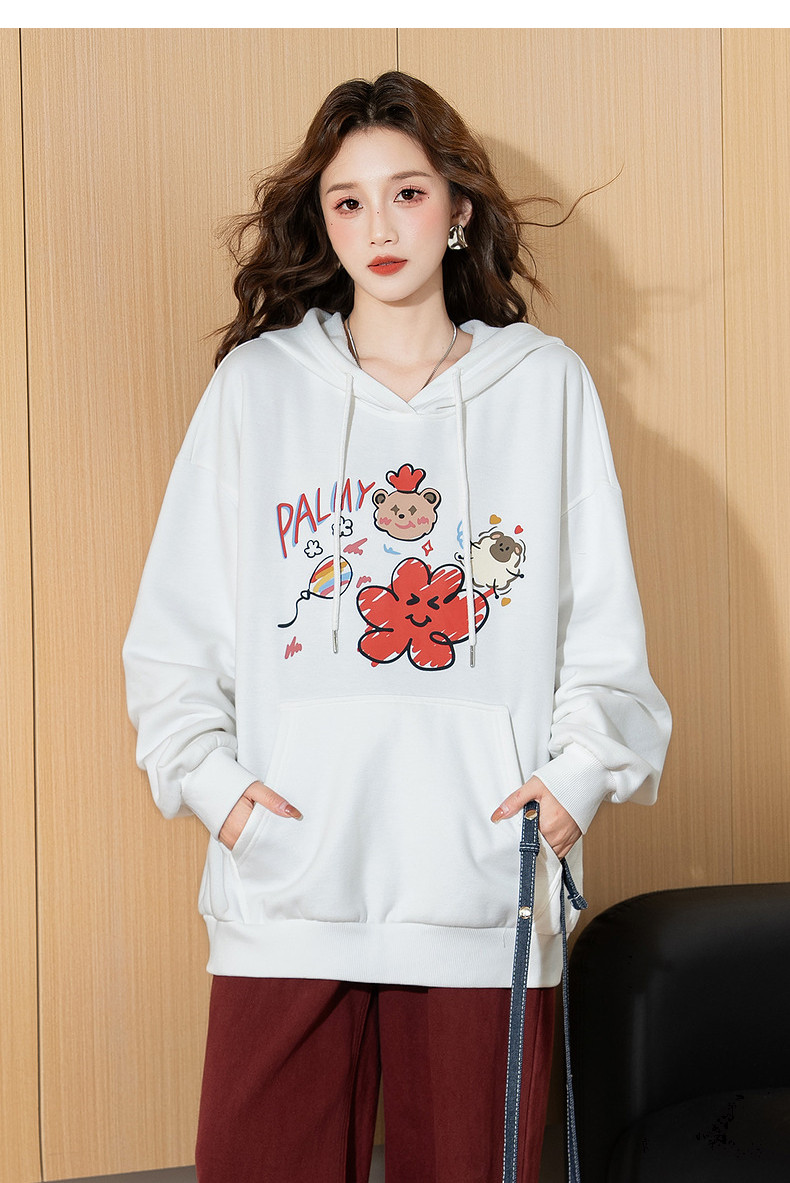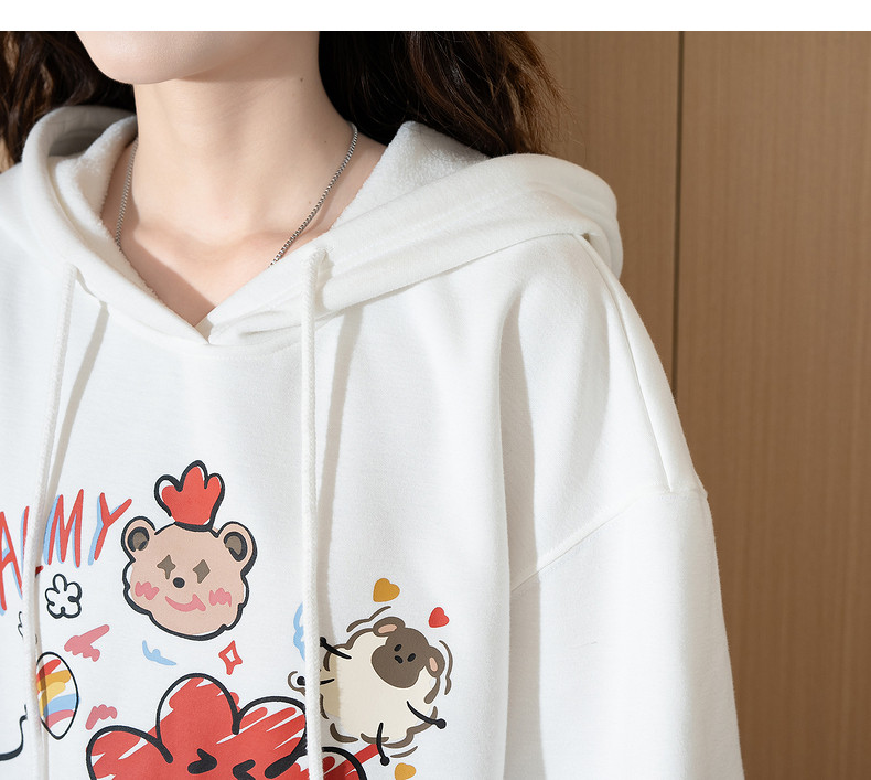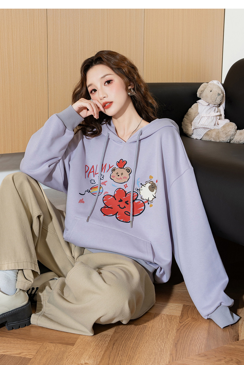 唐狮2024秋季新款女连帽卫衣趣味涂鸦少女卫衣宽松休闲初中生帽衫