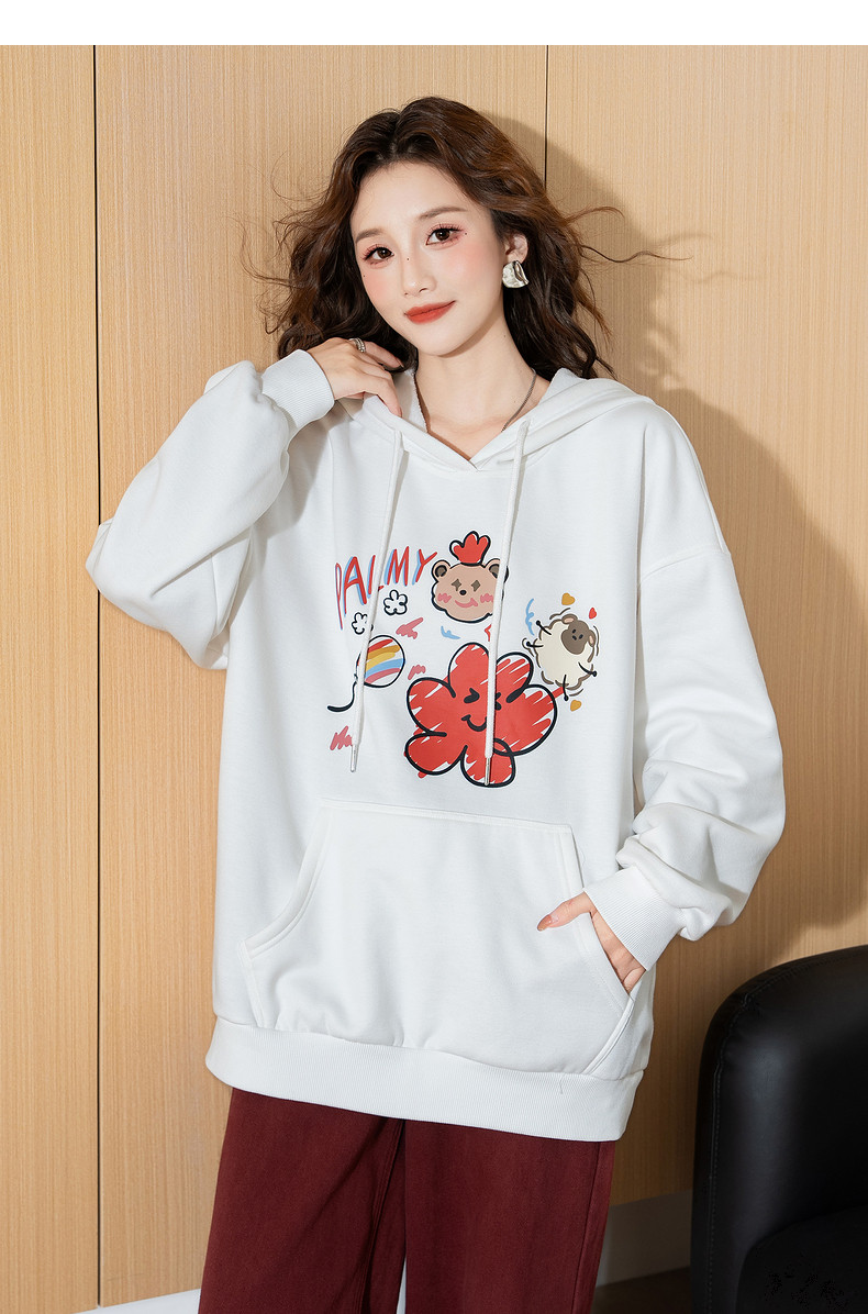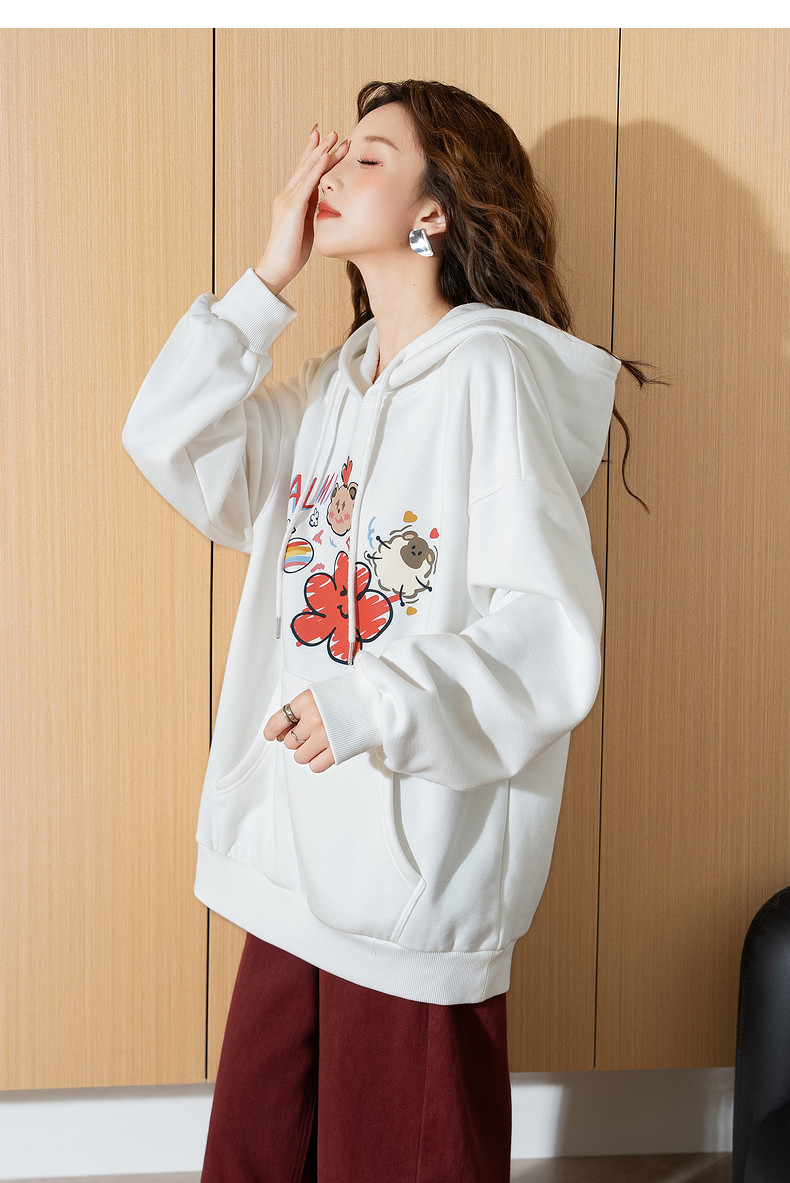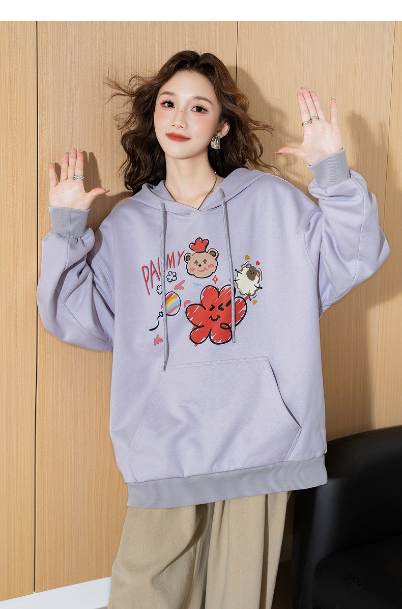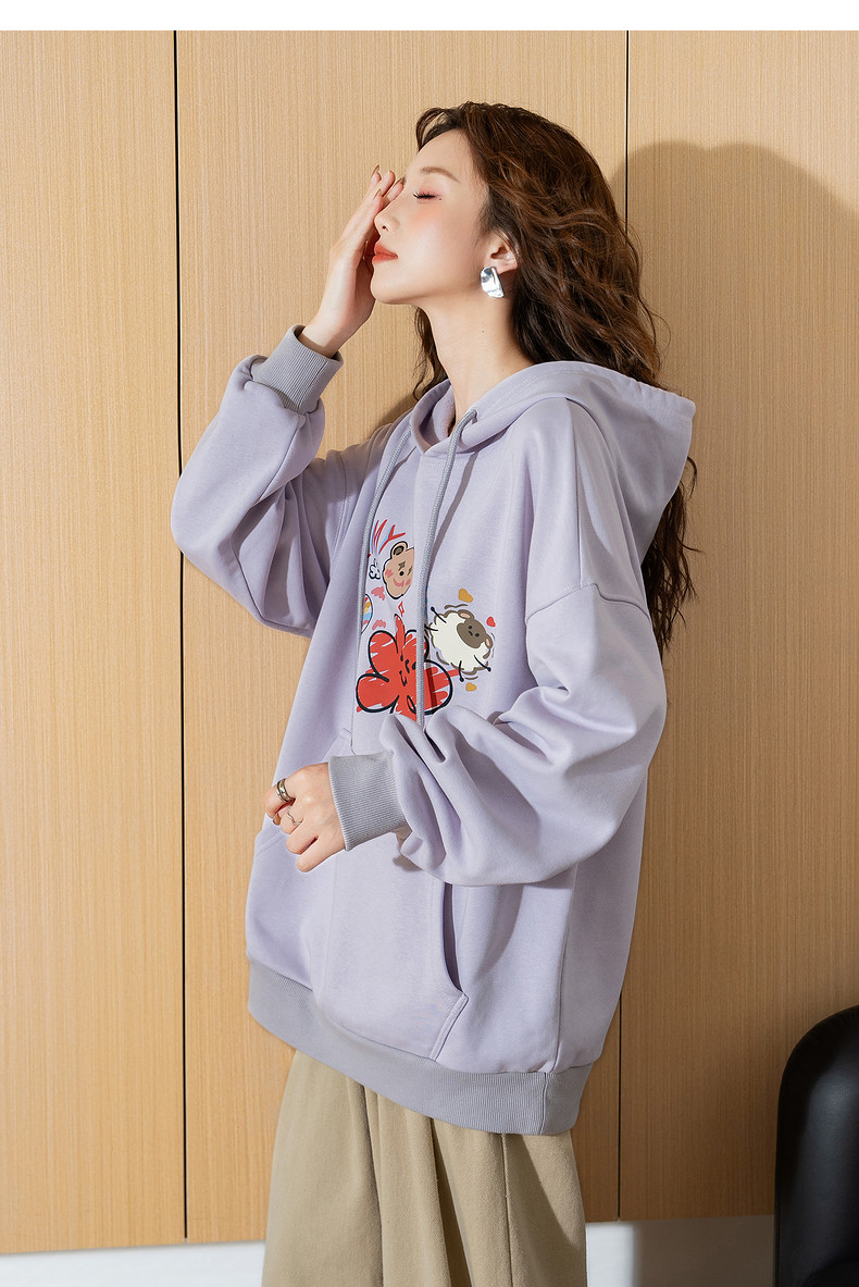 唐狮2024秋季新款女连帽卫衣趣味涂鸦少女卫衣宽松休闲初中生帽衫