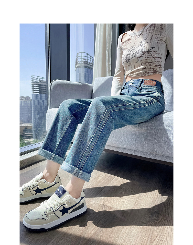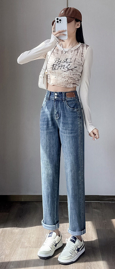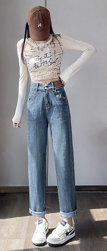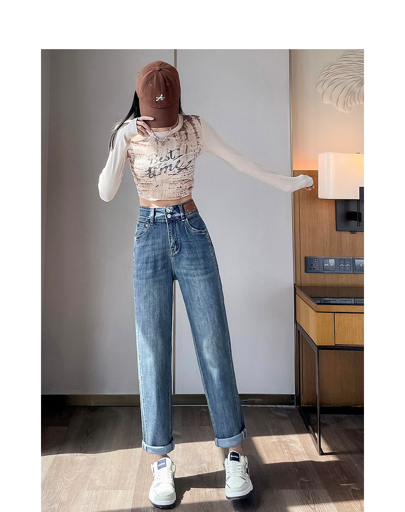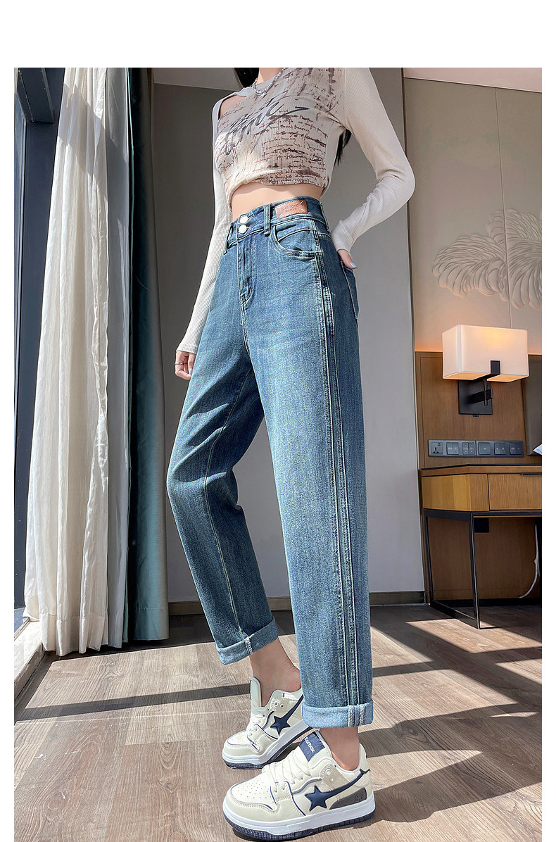 唐狮24秋季新款高腰牛仔裤女宽松直筒哈伦裤显瘦复古水洗潮流裤子
