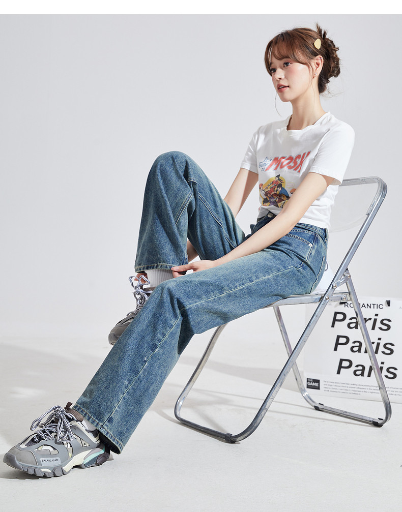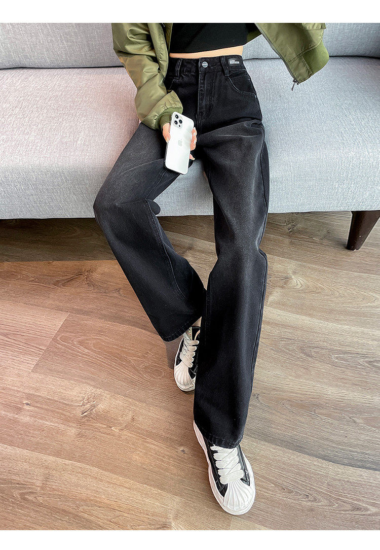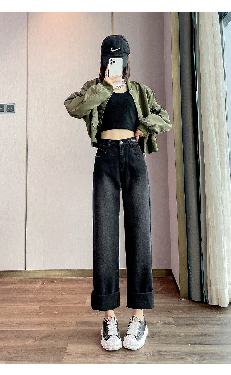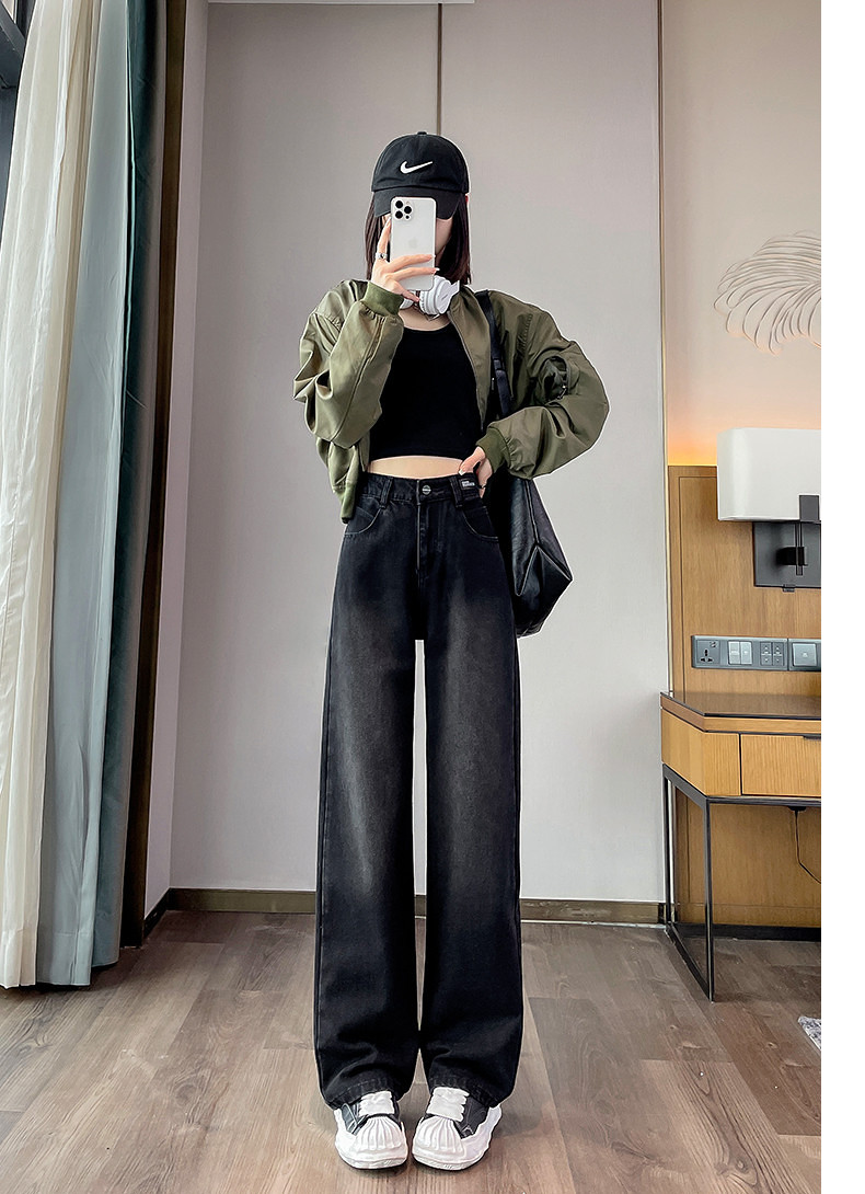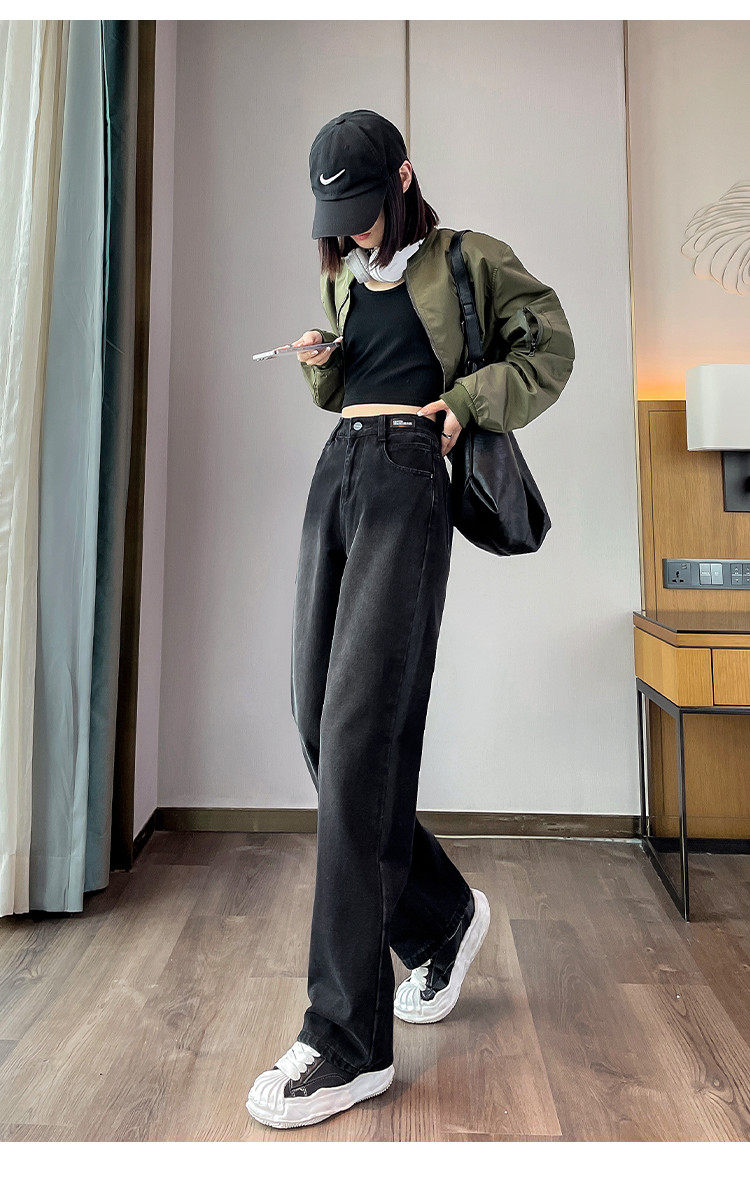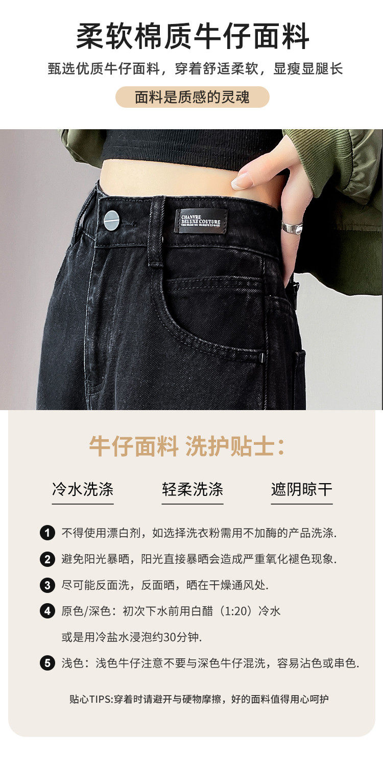 唐狮24秋季新款高腰牛仔裤女宽松显瘦阔腿裤潮流时尚百搭裤子女