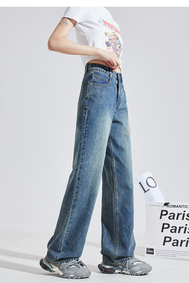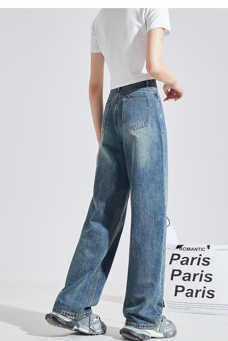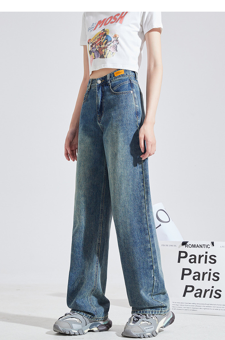 唐狮2025年秋季新款女牛仔长裤复古百搭显瘦高腰遮肉宽松阔腿裤k1