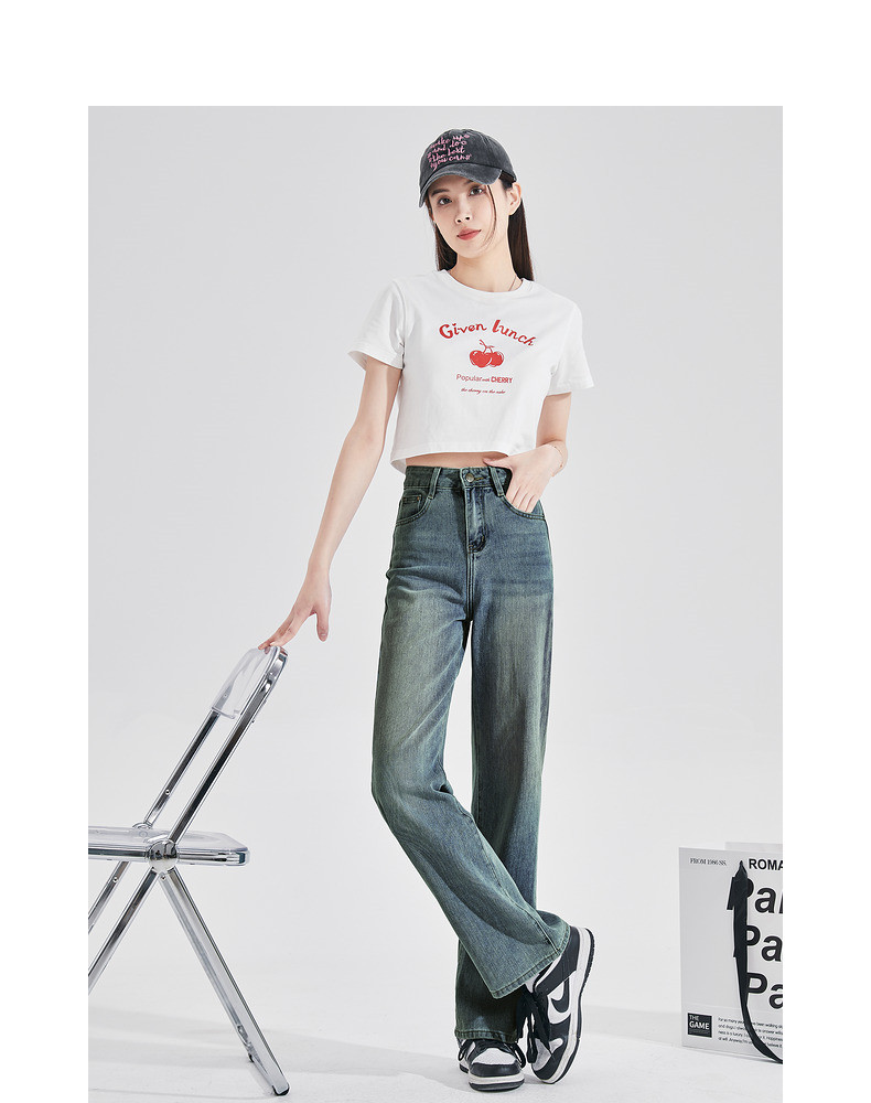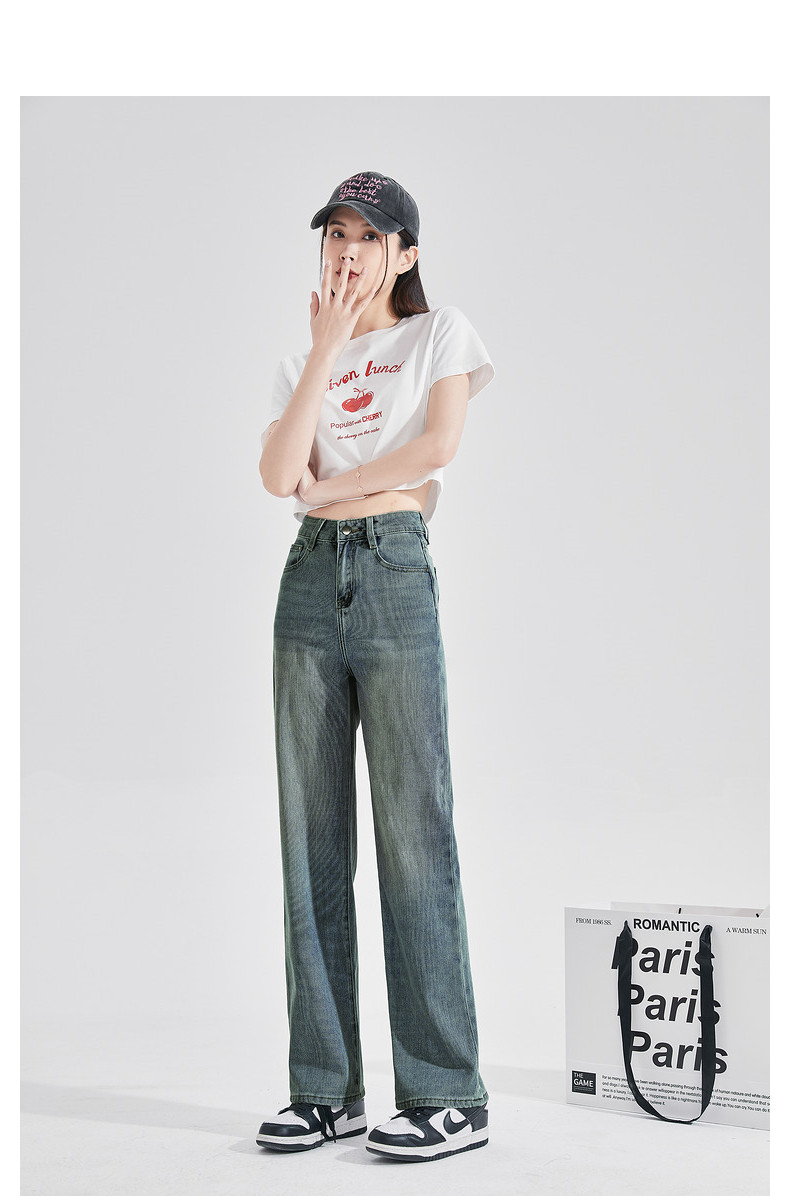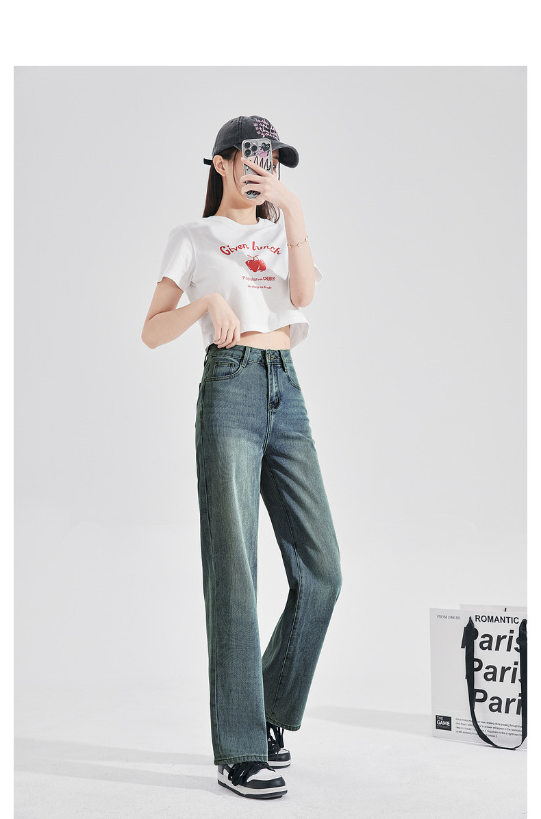 唐狮24秋季新款牛仔裤女修身直筒裤水洗复古窄版显瘦时尚裤子女