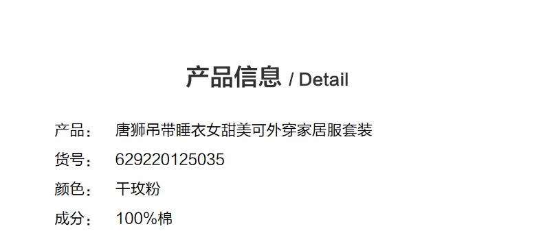 唐狮睡衣女夏季吊带性感两件套装夏天甜美少女可外穿家居服女套装