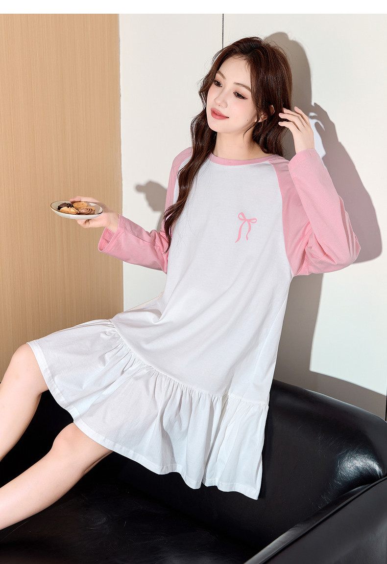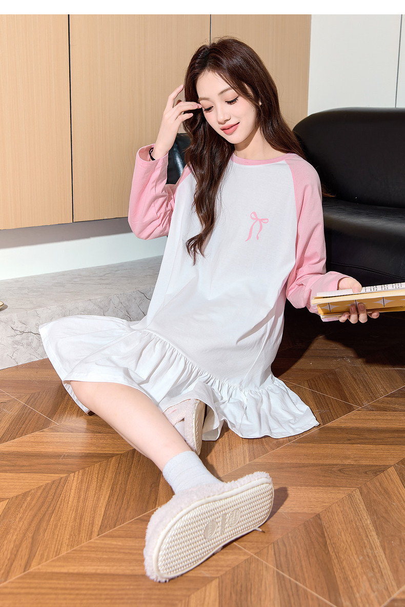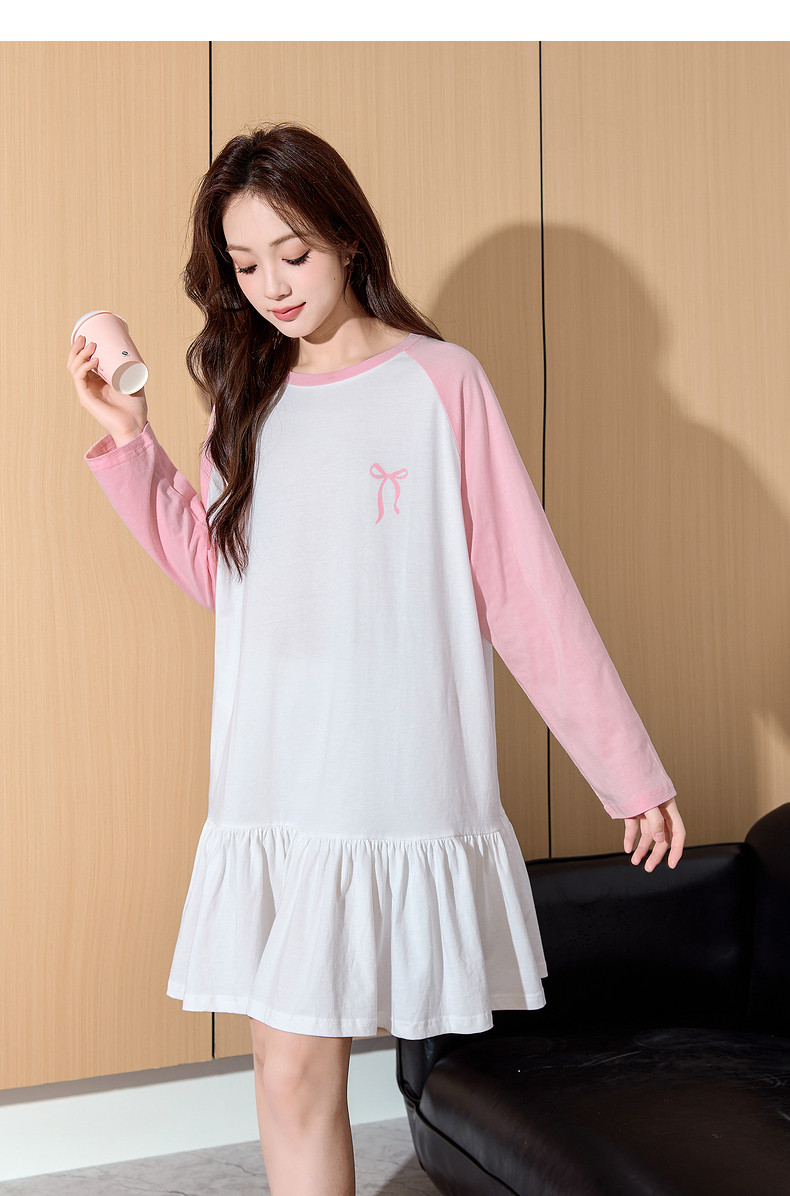 唐狮睡裙女春秋撞色插肩袖宽松居家T恤裙睡衣女可外穿家居服