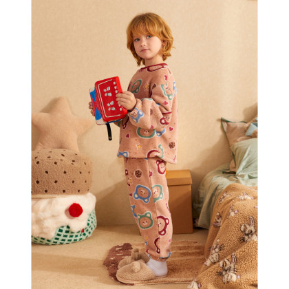 【童趣小熊系列】睡衣男童秋冬珊瑚绒保暖舒适儿童家居服套装外穿