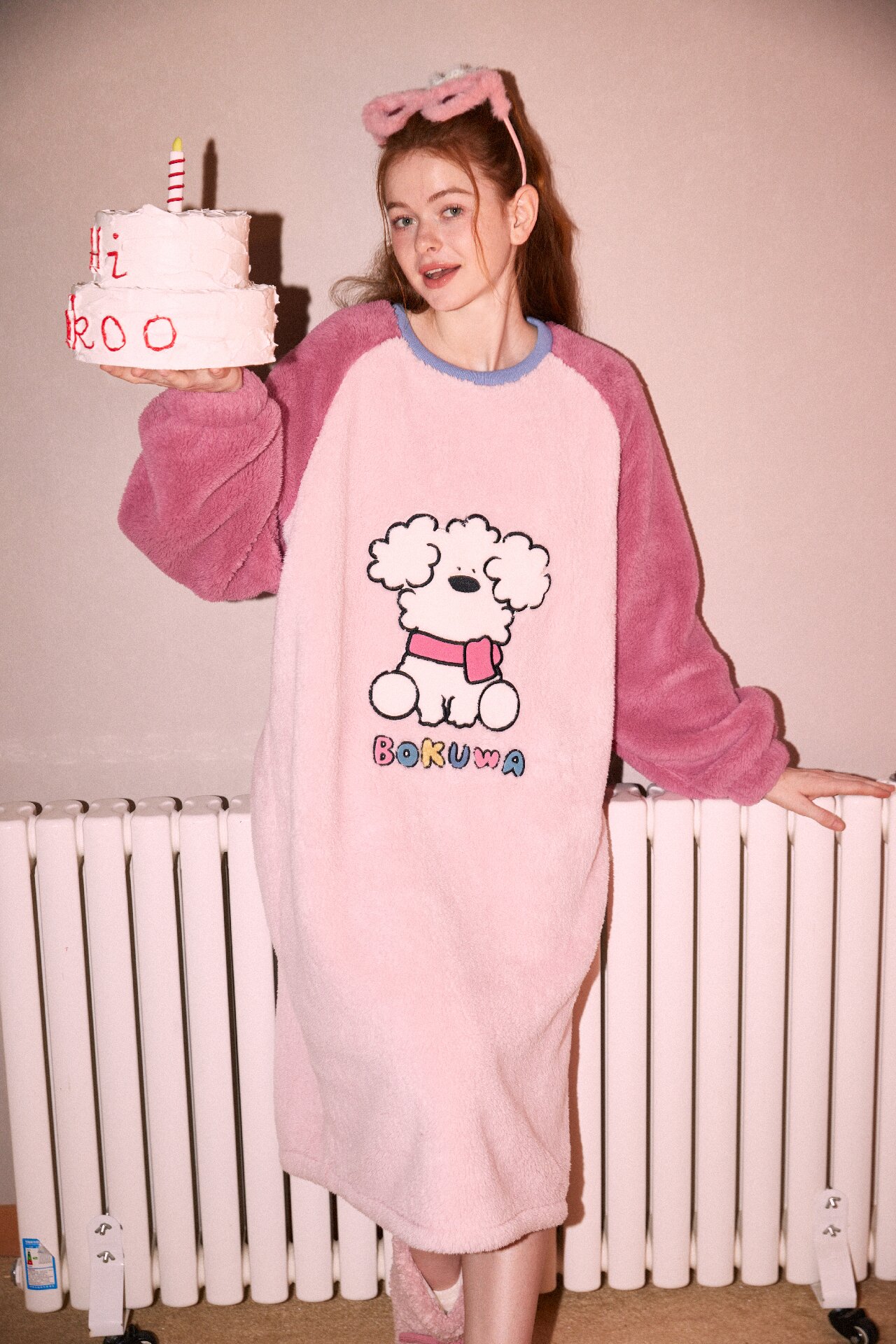 【Gukoo果壳】秋冬双面北极绒保暖柔软牛奶绒宽松女式家居服睡裙