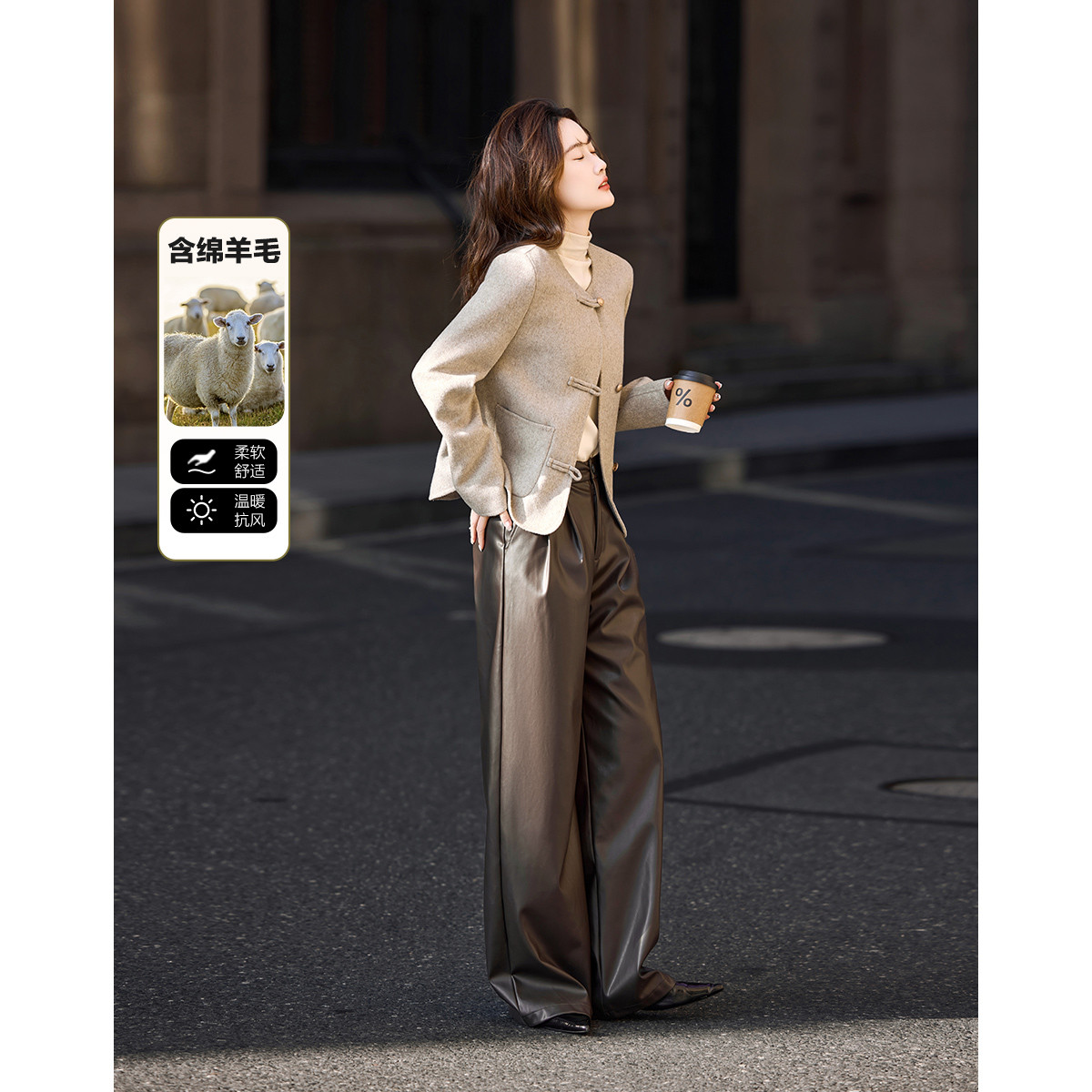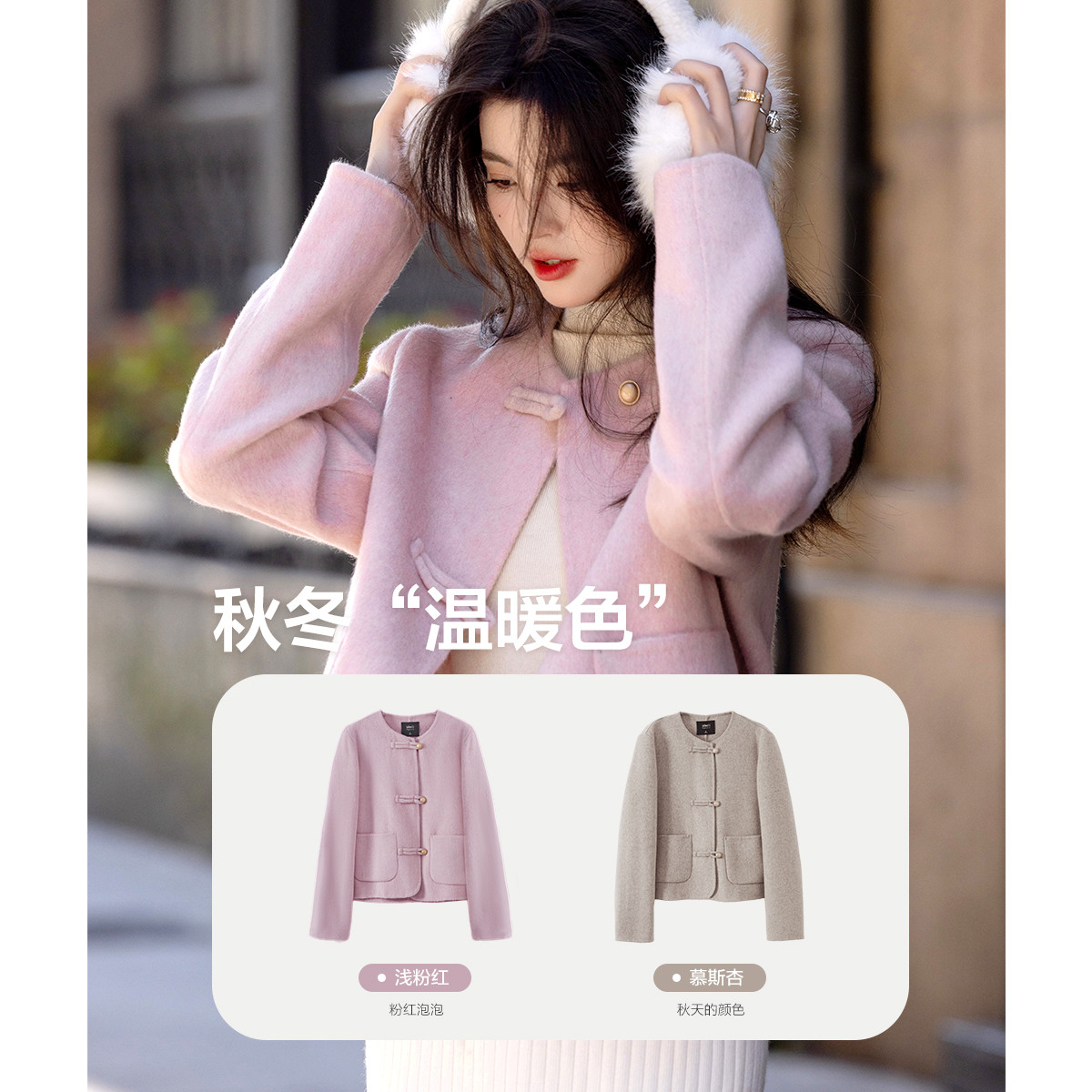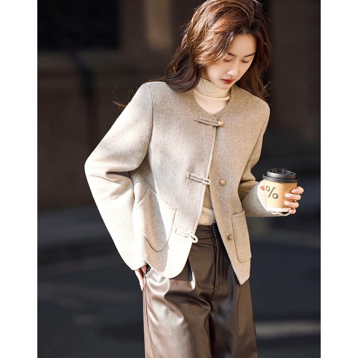【雪野一梦】冬季国风新中式氧感绵羊毛双面呢盘扣大衣女外套短款