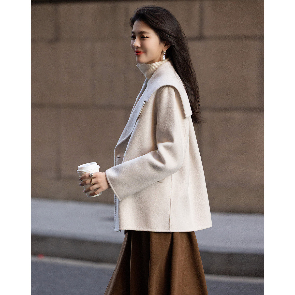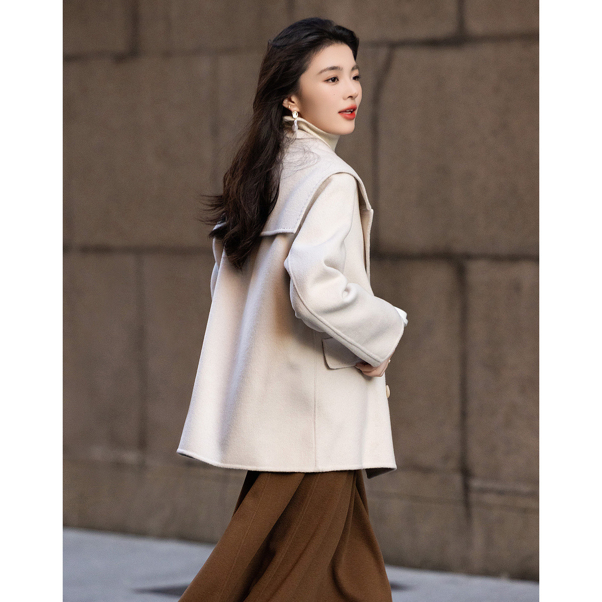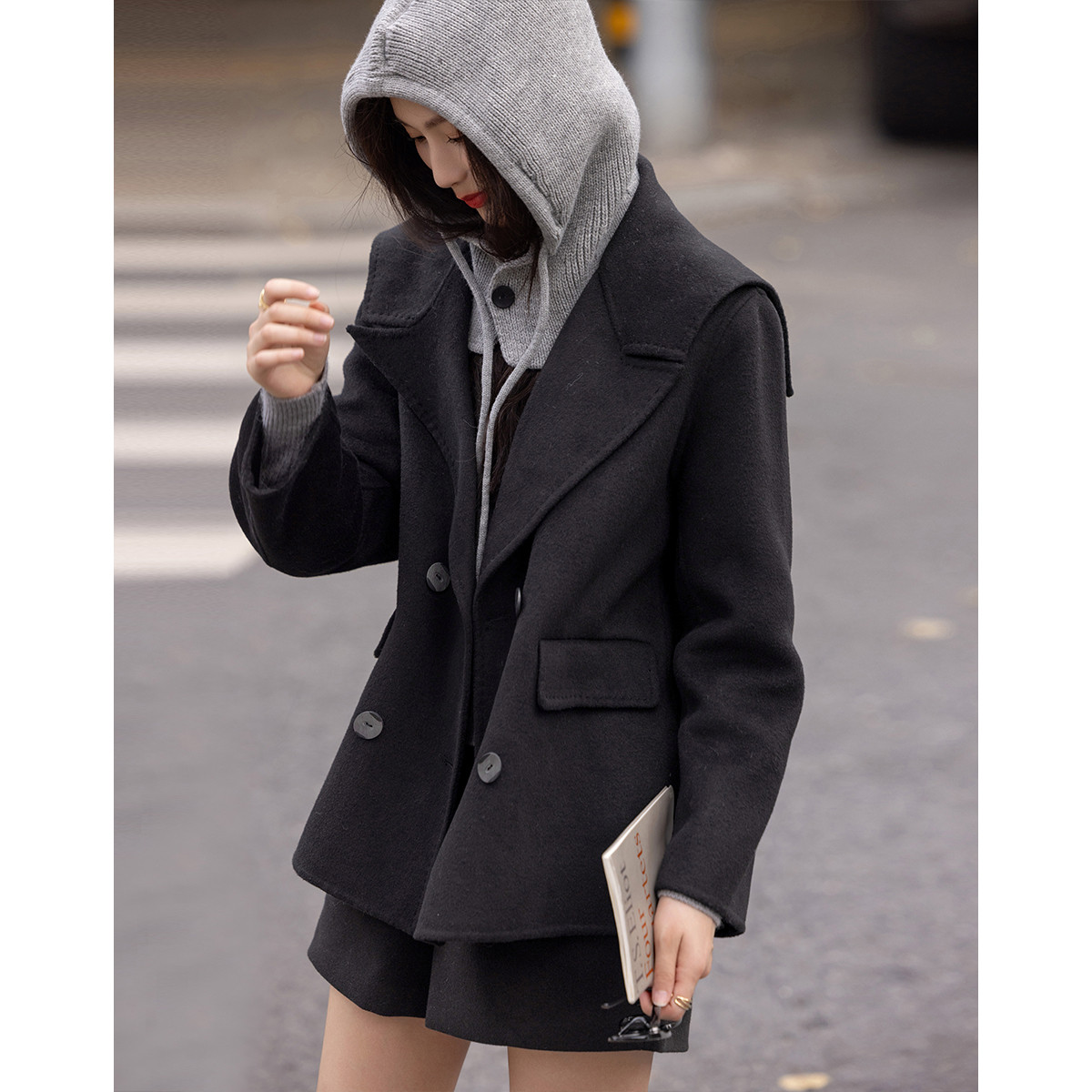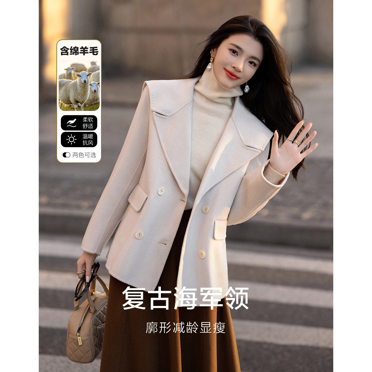 【千金玛德琳】冬季轻龄感绵羊毛顺毛呢舒适遮肉大廓形大衣女外套